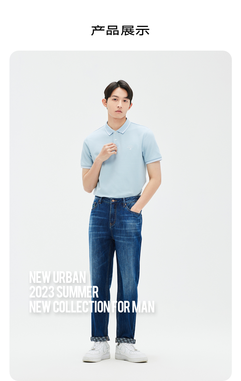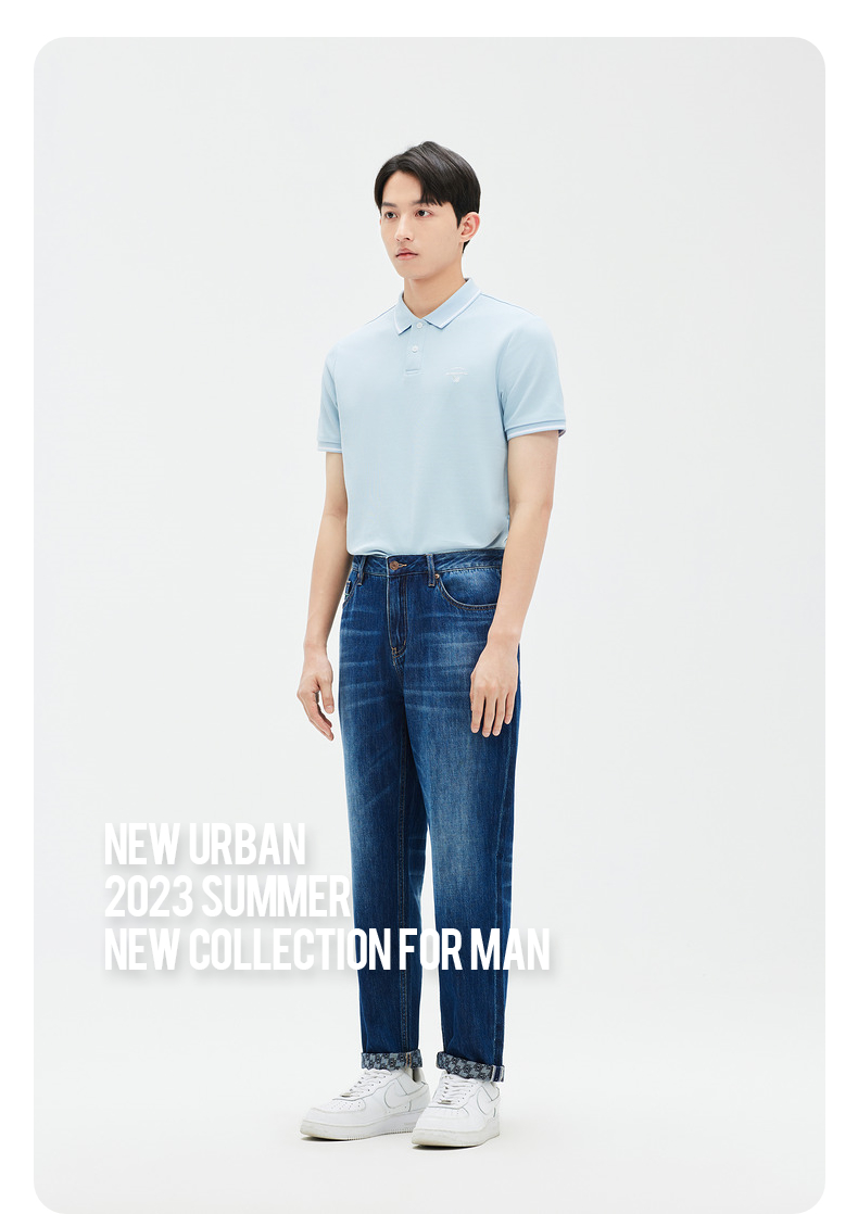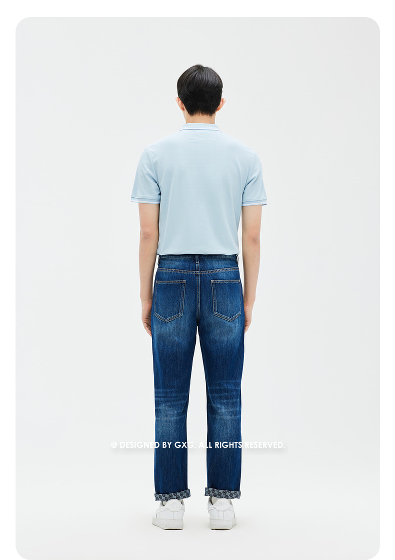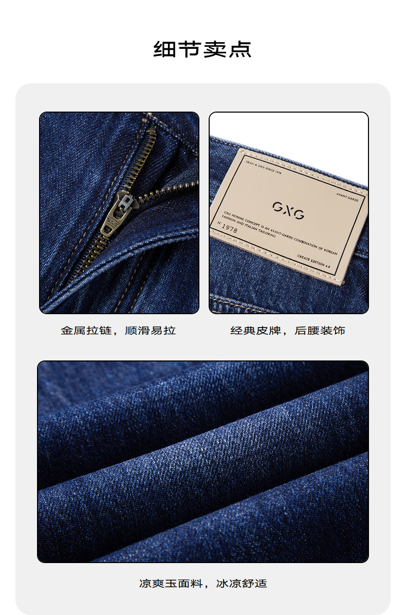 GXG男装 牛仔裤长裤宽松直筒蓝色凉感薄款 夏季热卖牛仔裤