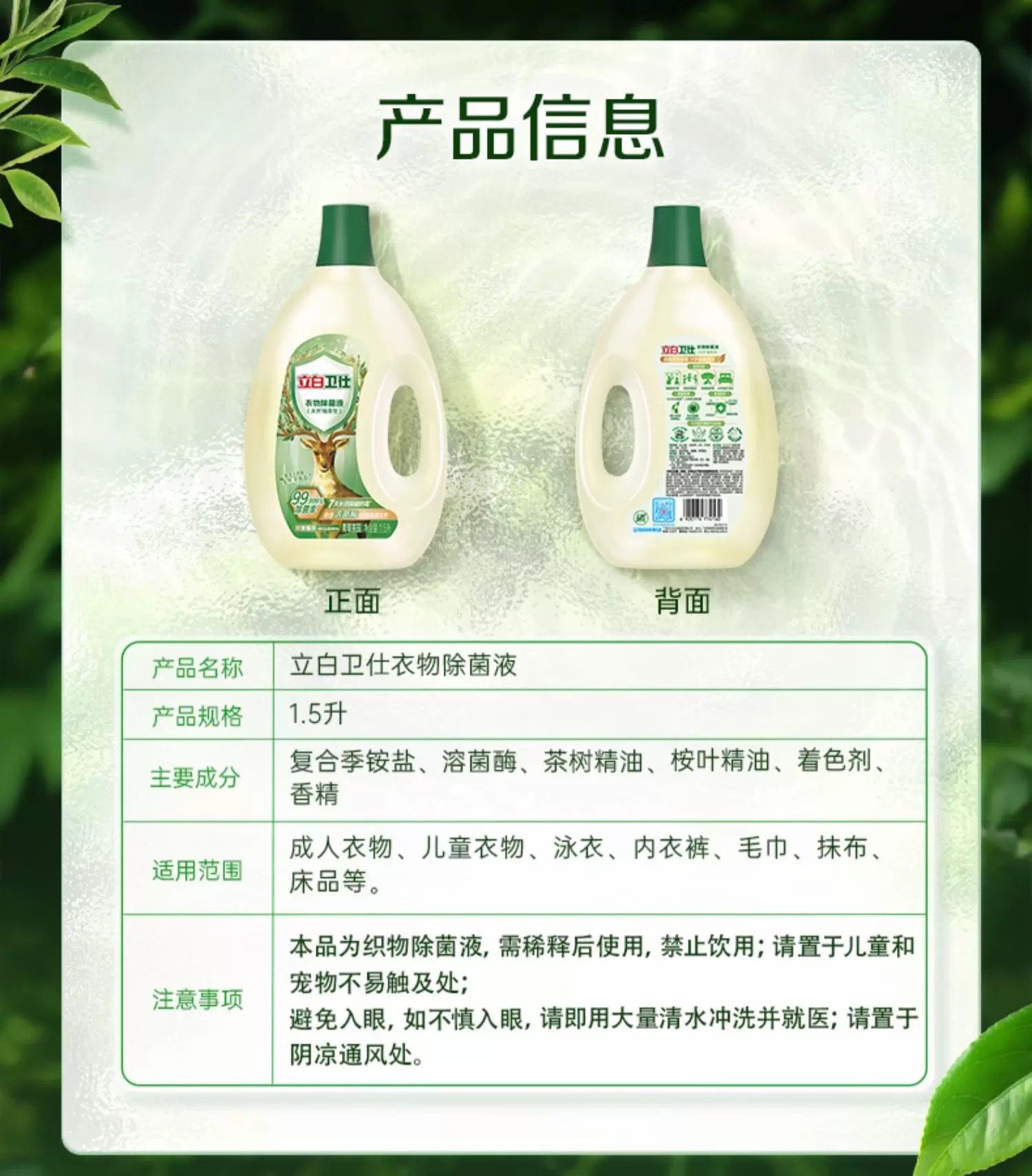 立白除菌液1.5L*2瓶+内衣专护洗衣液280g*1瓶 +卫仕洗衣液100g*3袋