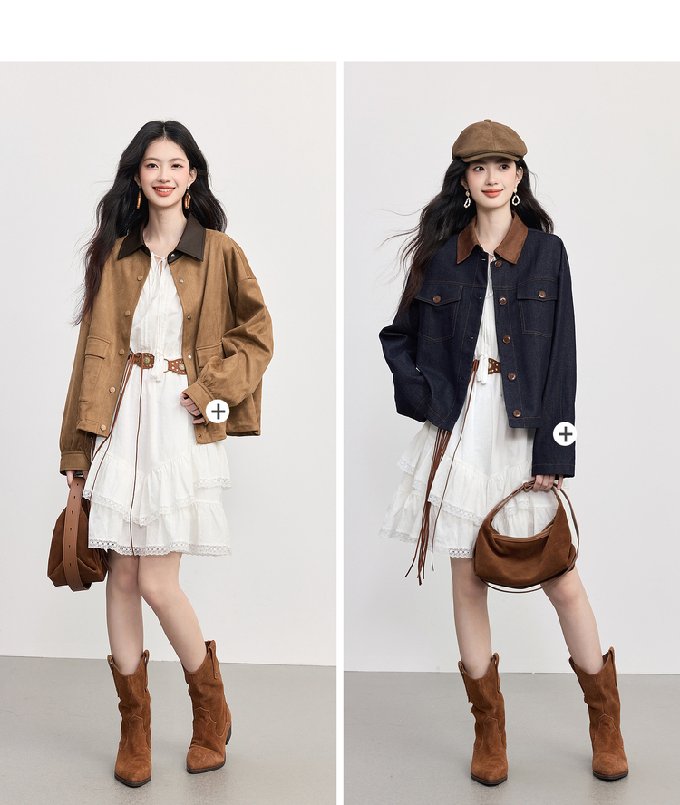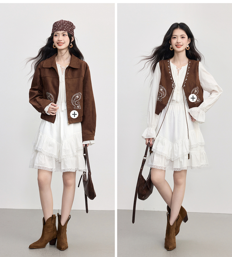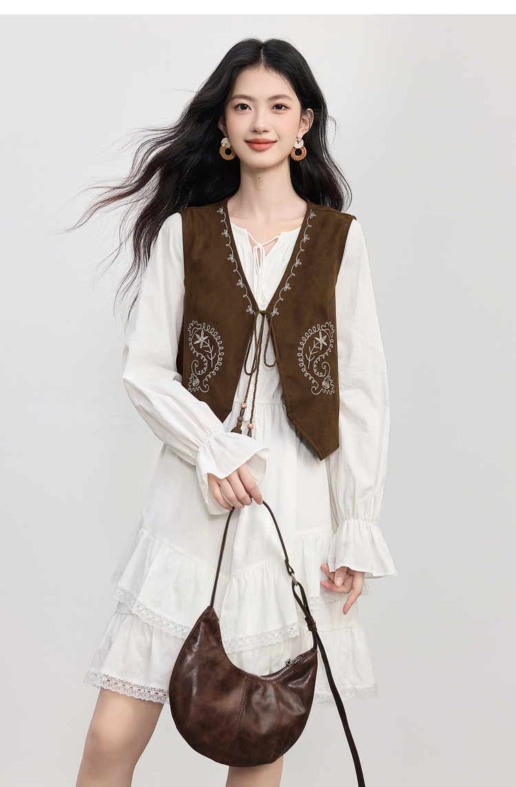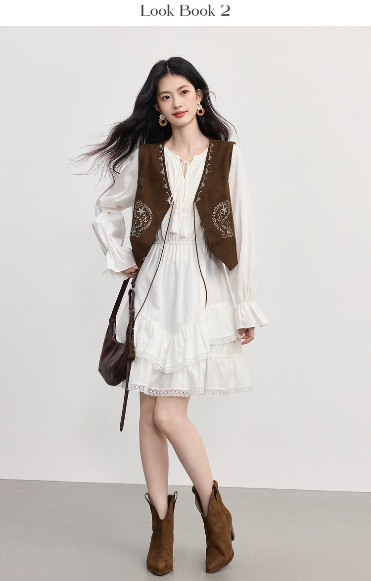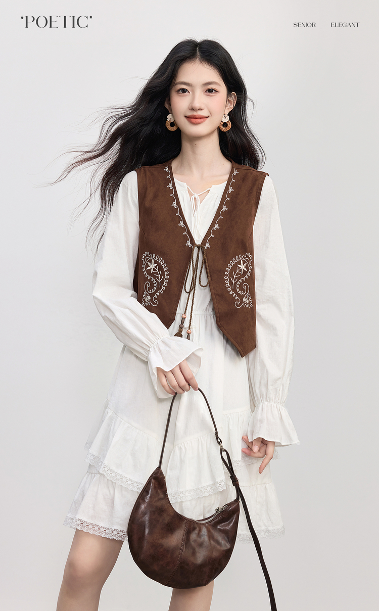 【09/26新品】熙世界法式度假风白色连衣裙女25年秋季气质收腰波西米亚蛋糕裙子