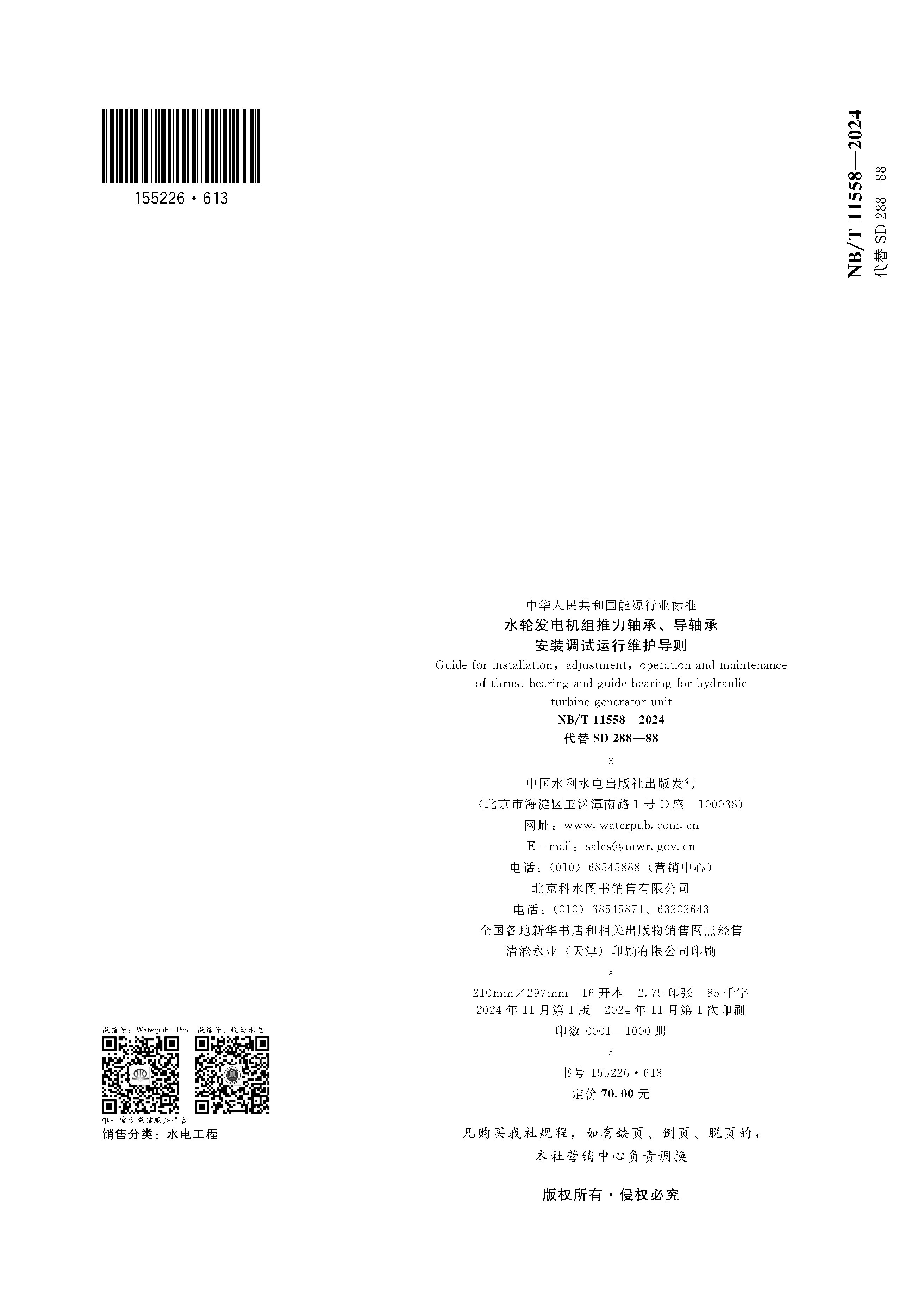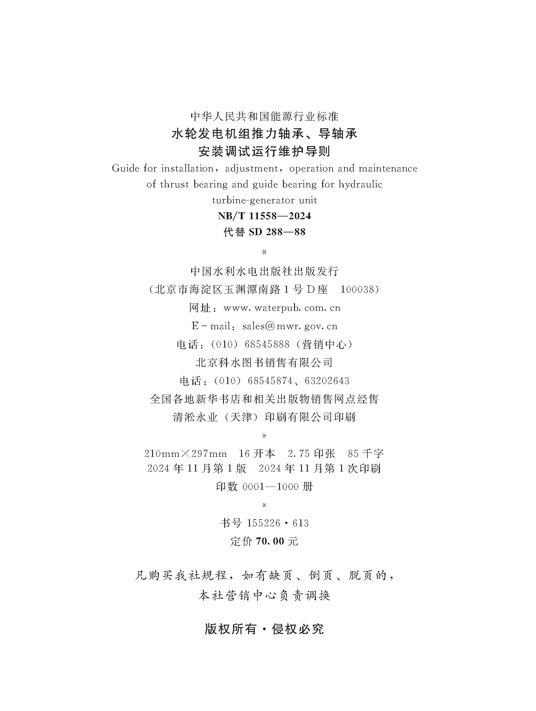 水轮发电机组推力轴承、导轴承安装调试运行维护导则(NB/T 11558—2024 代替SD 288—88) &155226·613
