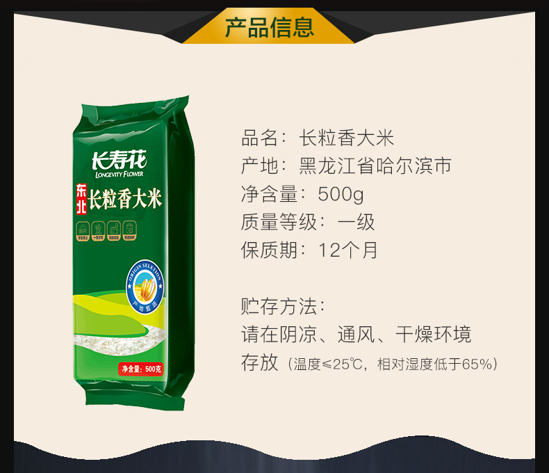 【星耀会员群打卡专属】长寿花长粒香大米500g小包装试吃体验装东北大米粳米小袋米