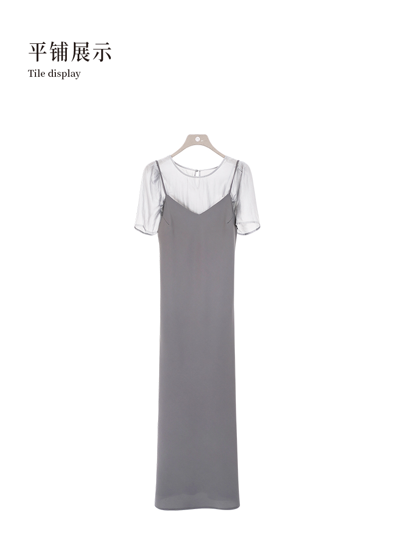 NUTS商场同款夏季灰色简约气质宽松短袖连衣裙两件套423101050