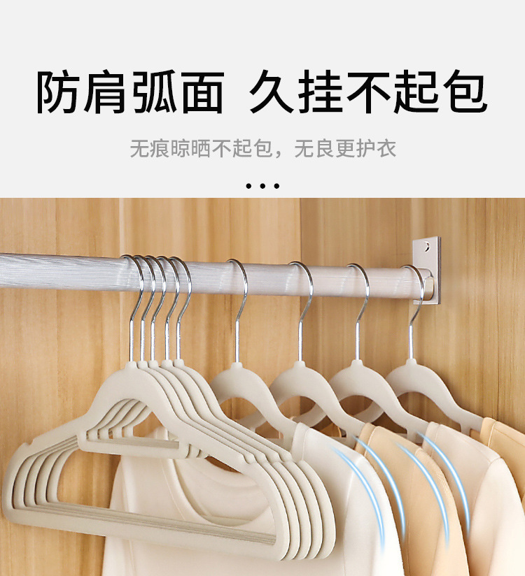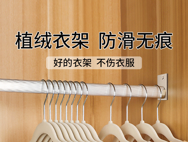 【25积分+19.9得】超值10个装!【植绒防滑,呵护衣物!】植绒衣架防滑 无痕不起肩家用衣柜挂衣 加厚收纳衣撑 酒店宿舍晾衣架