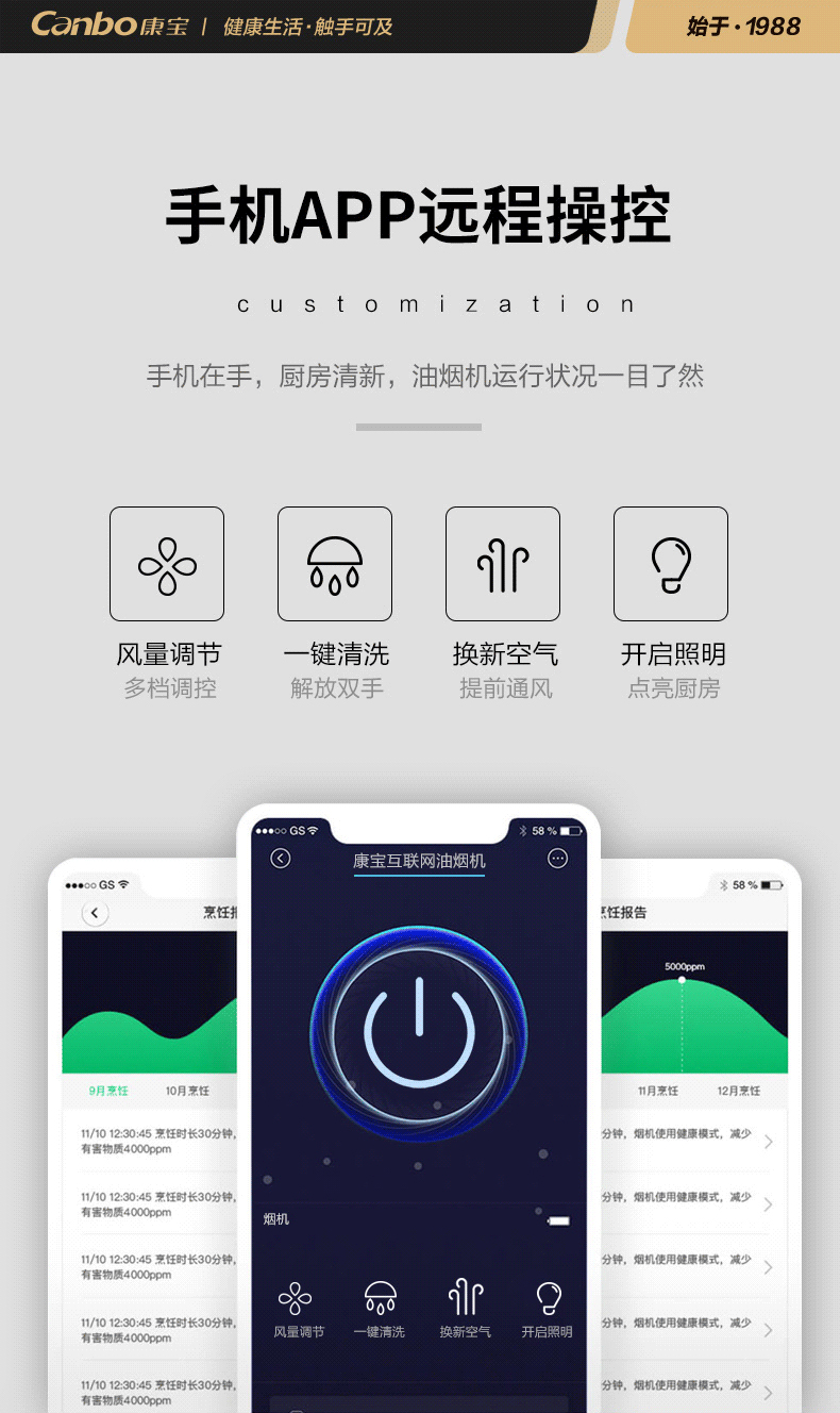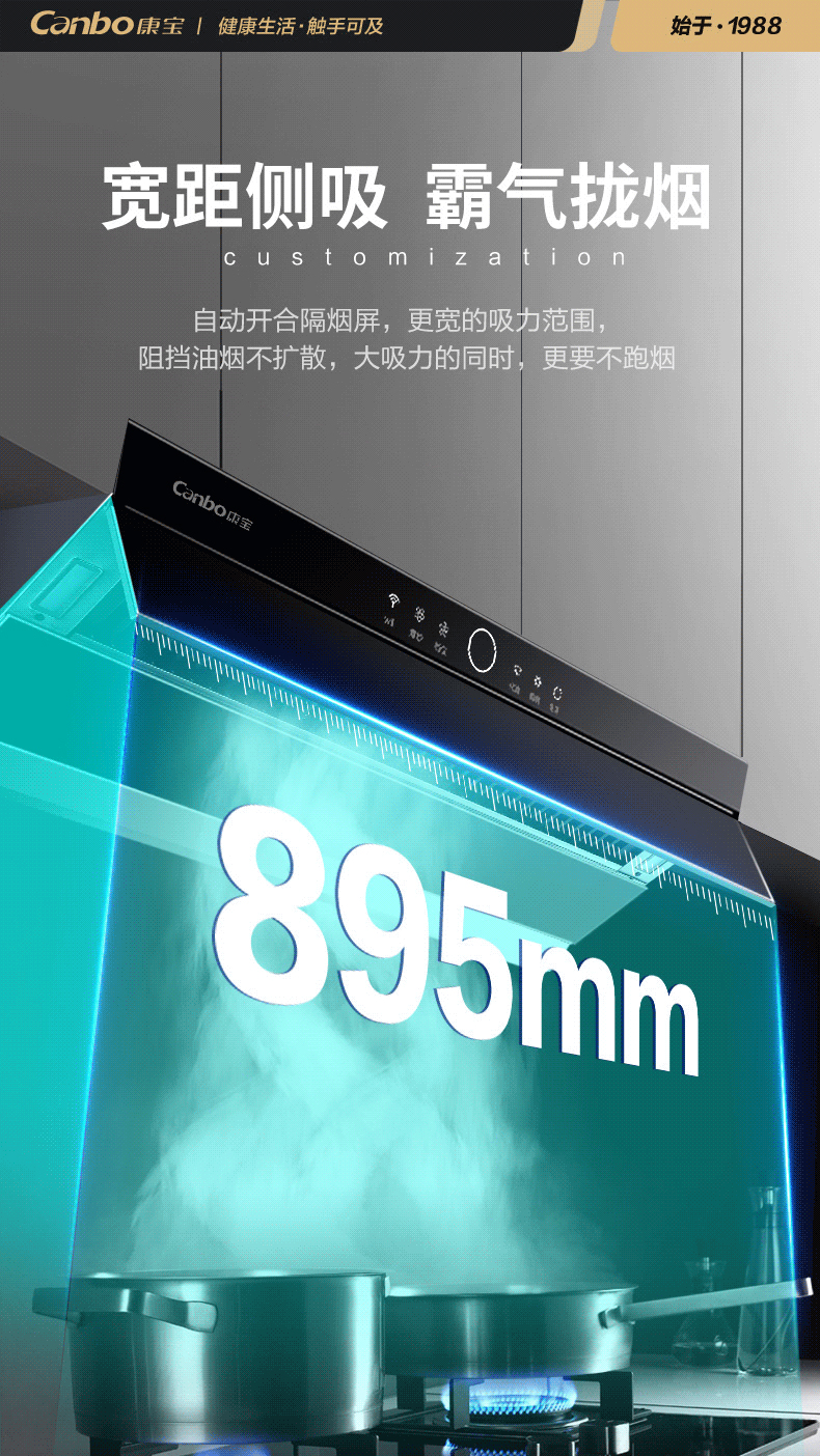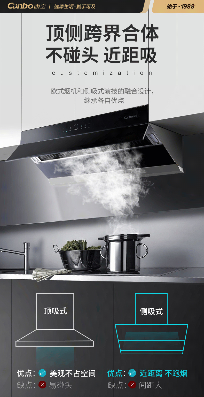 康宝(Canbo)欧式油烟 顶侧双吸 家用 厨房抽油烟 大吸力 WiFi手远程控制 自动清洗 CXW-280-AE9016(手APP控制)