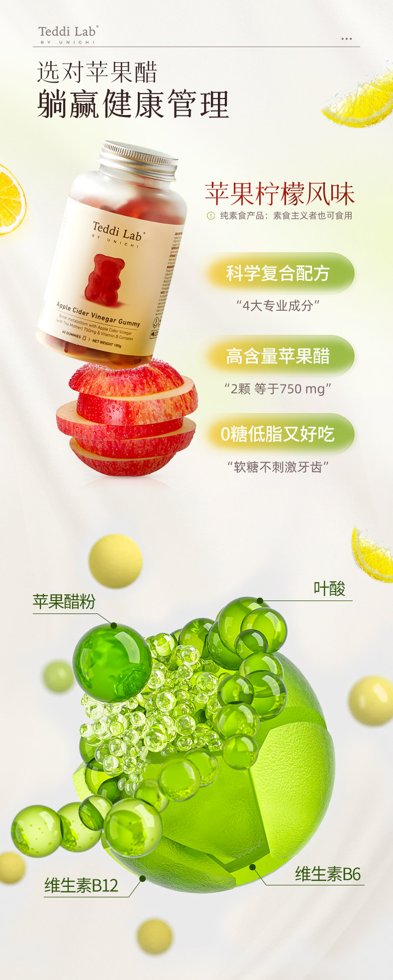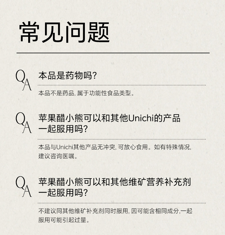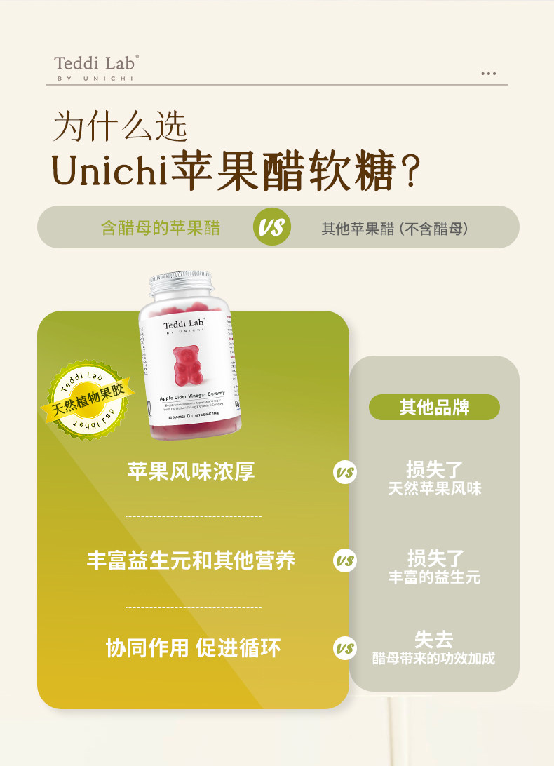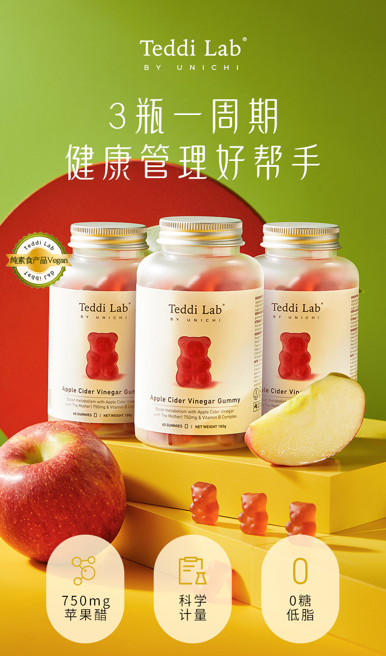 【跨境】UNICHI苹果醋小熊软糖60粒/瓶(效期:2028.07)