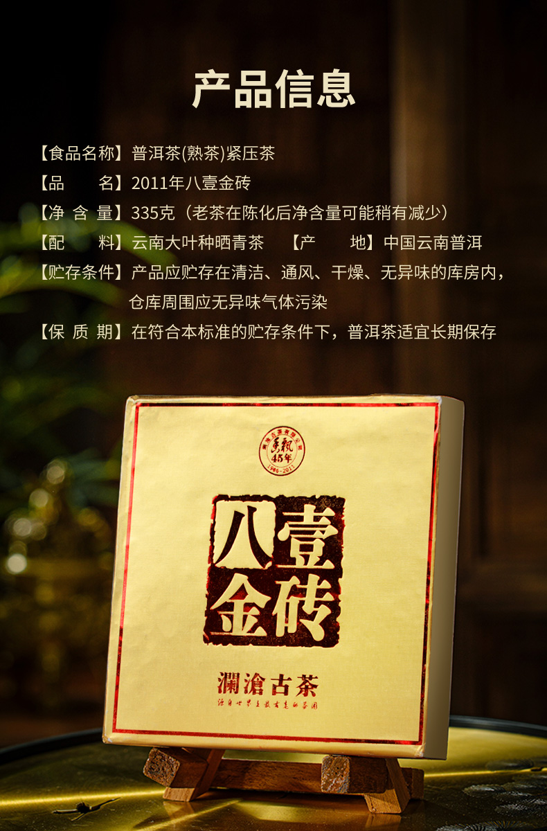 【老茶开仓】澜沧古茶2011年八壹金砖云南普洱熟茶【14年陈】老熟茶335g