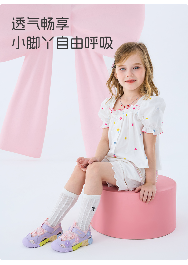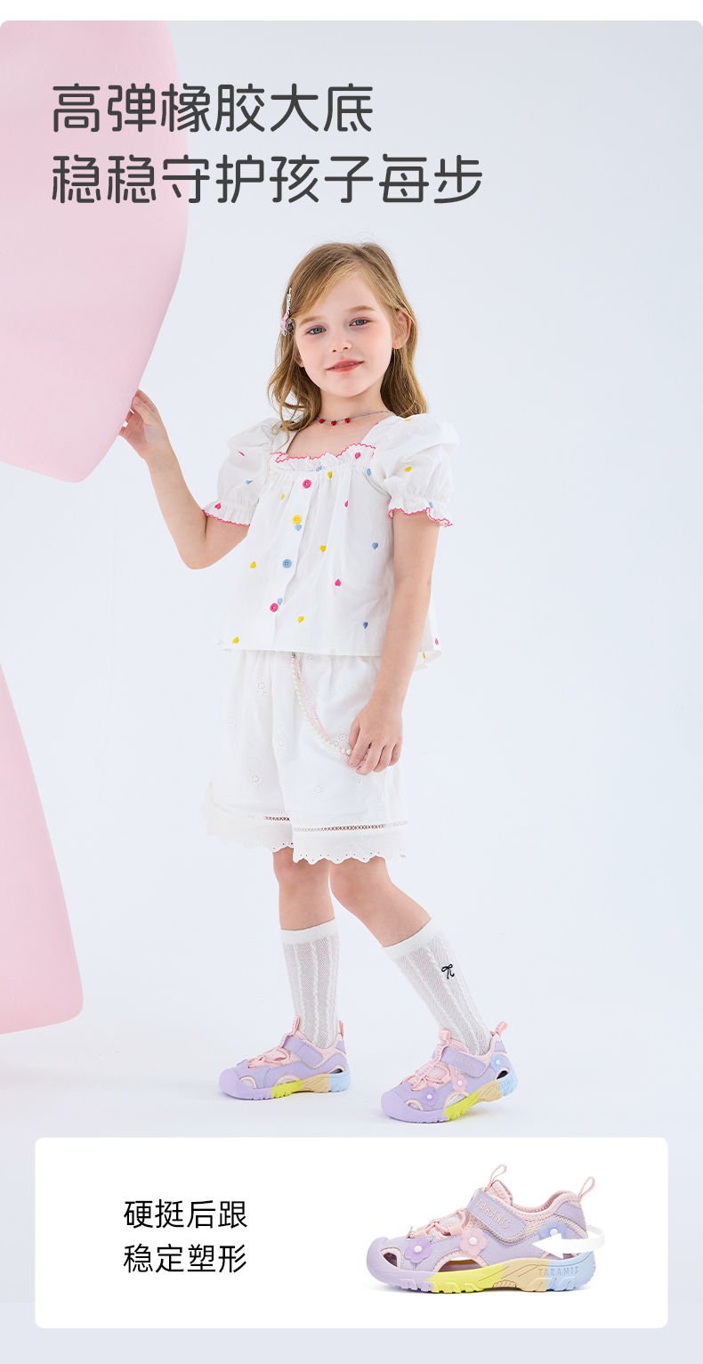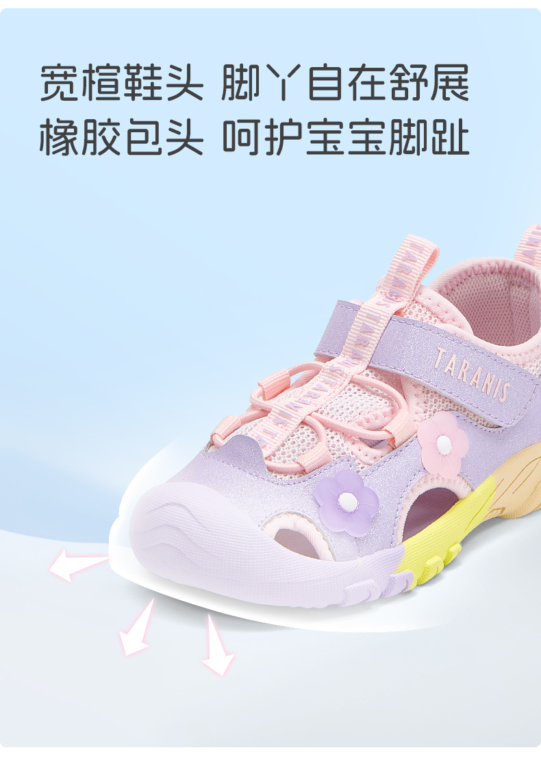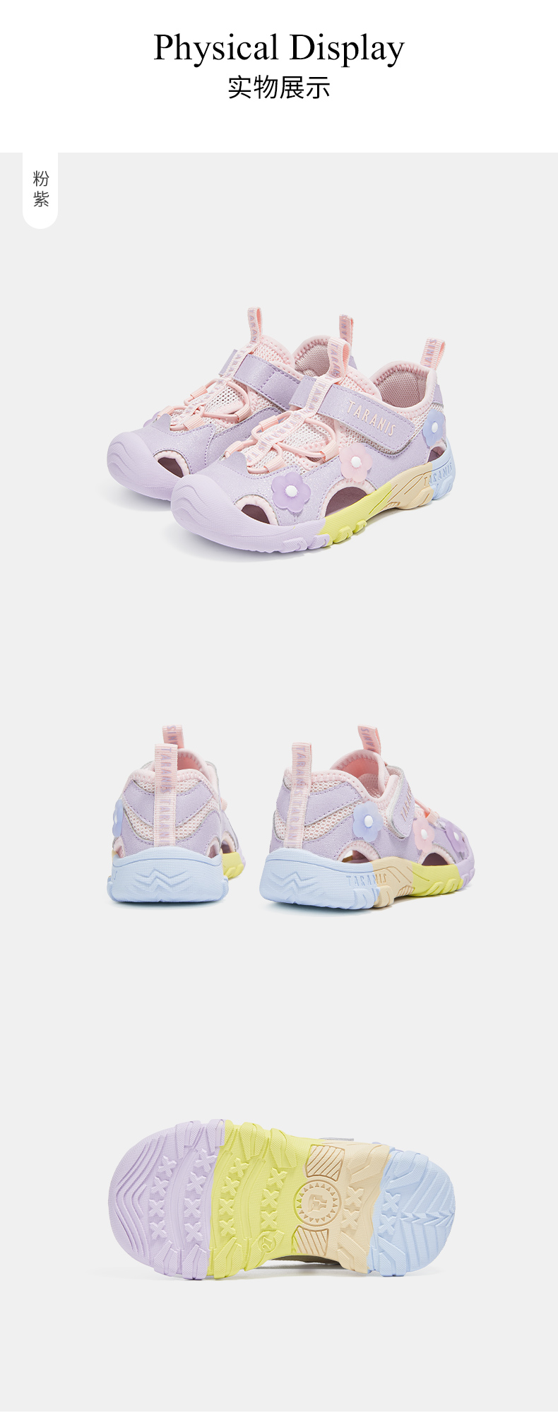 泰兰尼斯儿童凉鞋夏季新款女童运动户外沙滩鞋防踢软底包头溯溪鞋 T07X5B6383