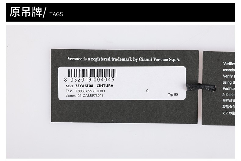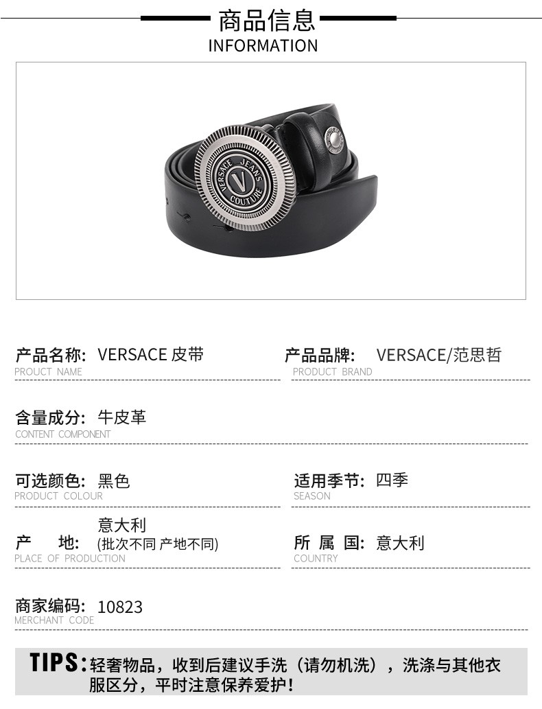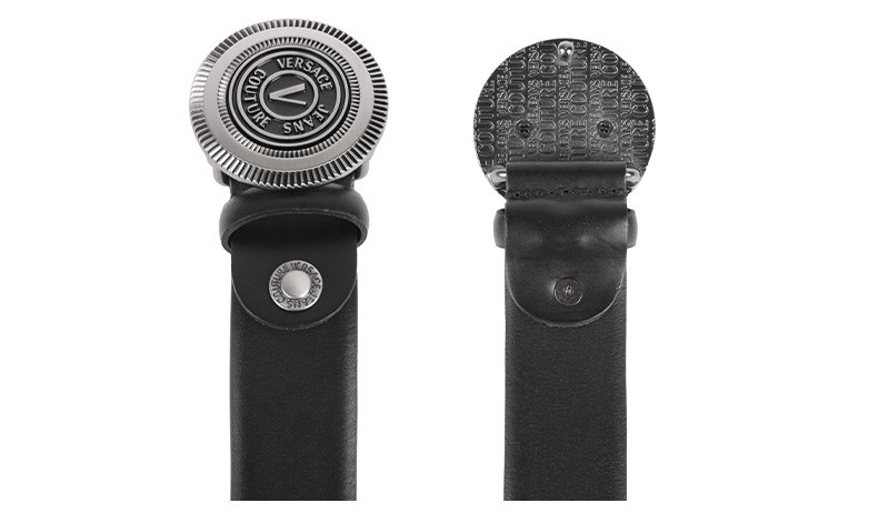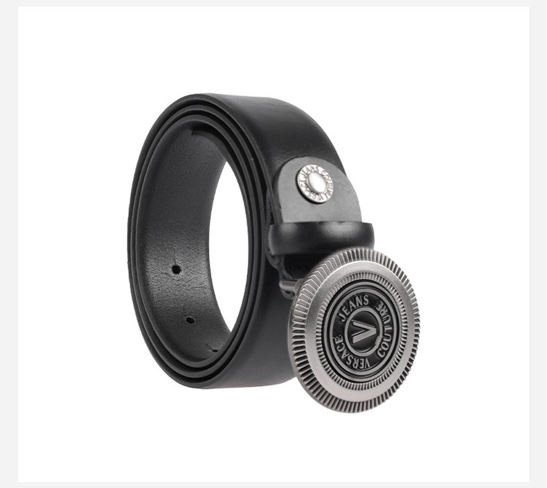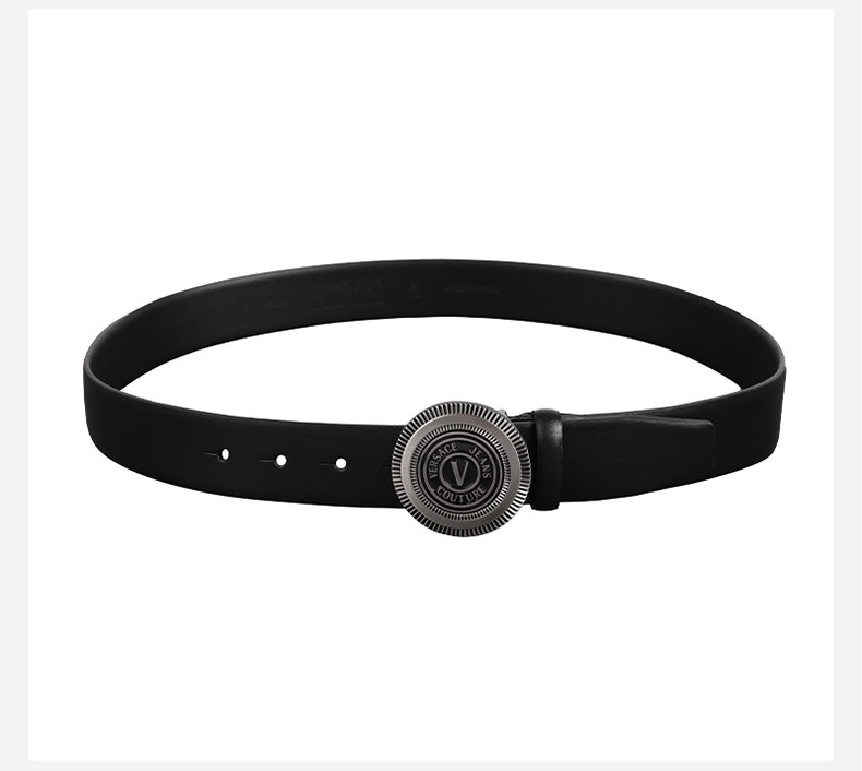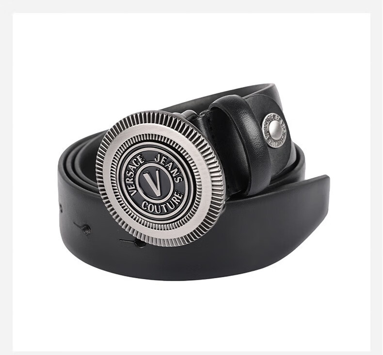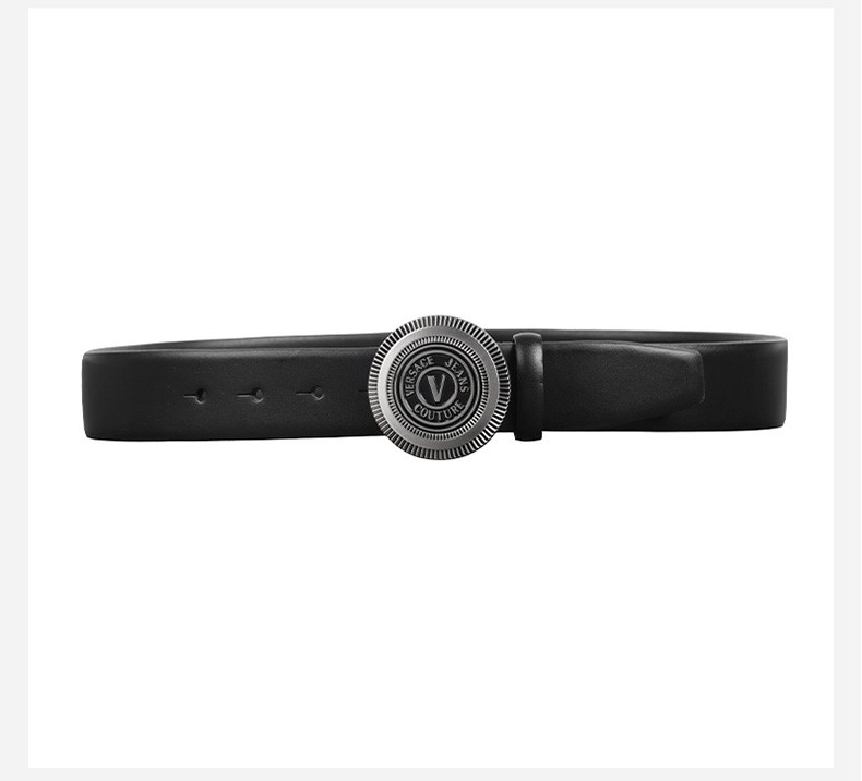 【超惠秒】Versace 范思哲 男士简约金属圆形字母logo板扣真皮腰带 10823