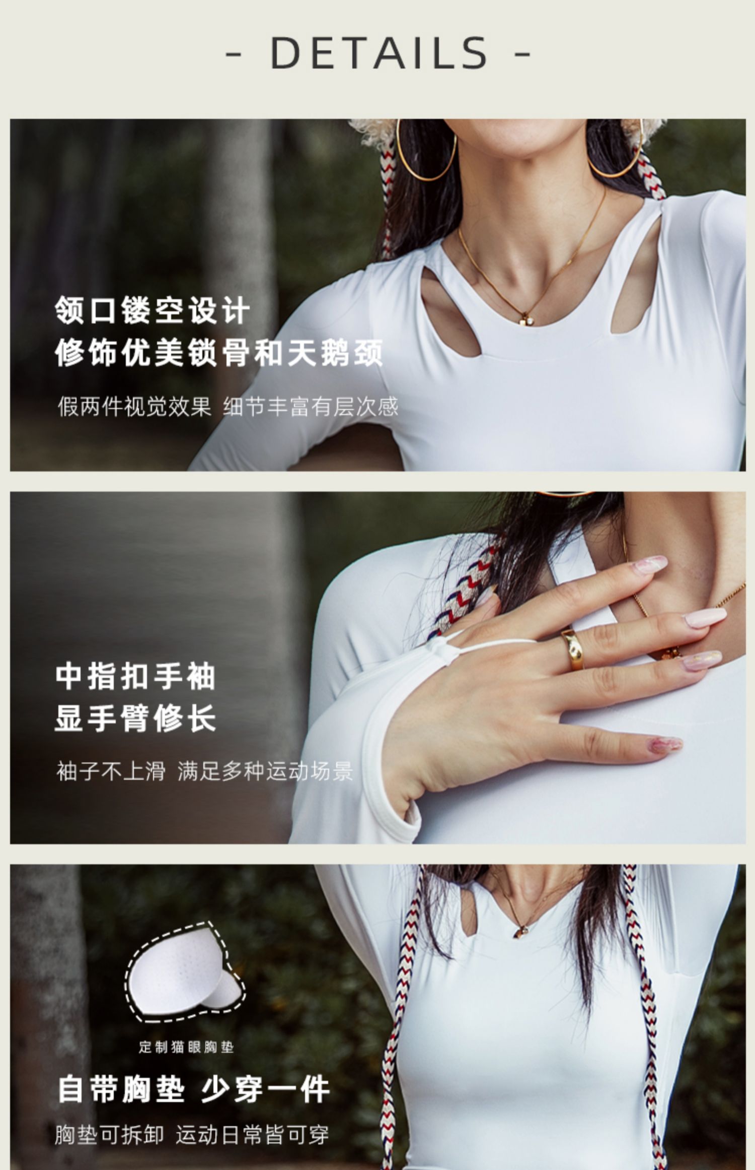 【裸感】弹力修身健身瑜伽服女长袖带胸垫长恤