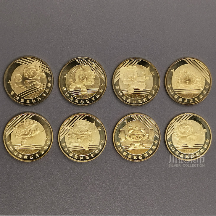 8枚规格:直径25mm,发行量1000万枚,面额1元,发行单位:中国人民银行。