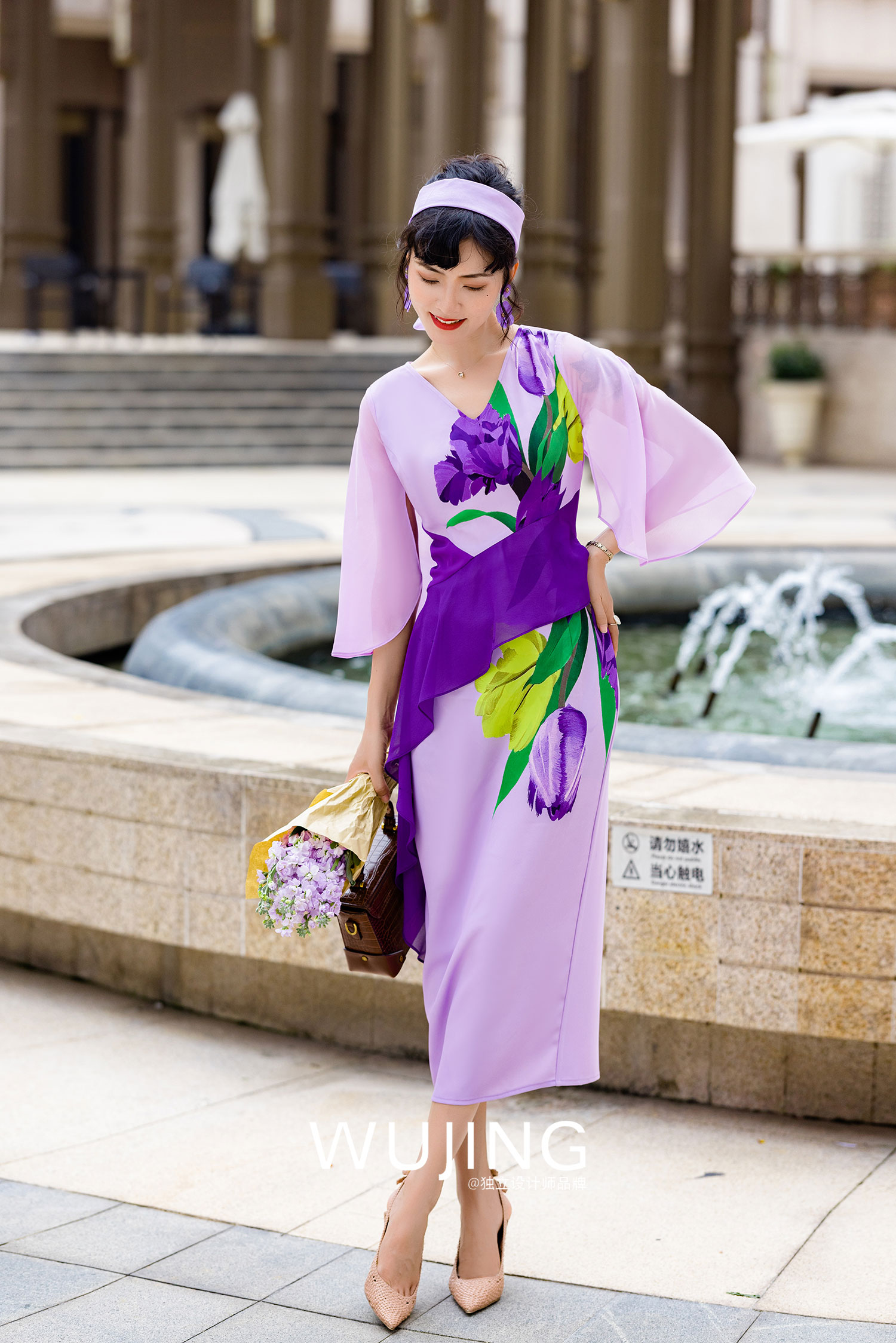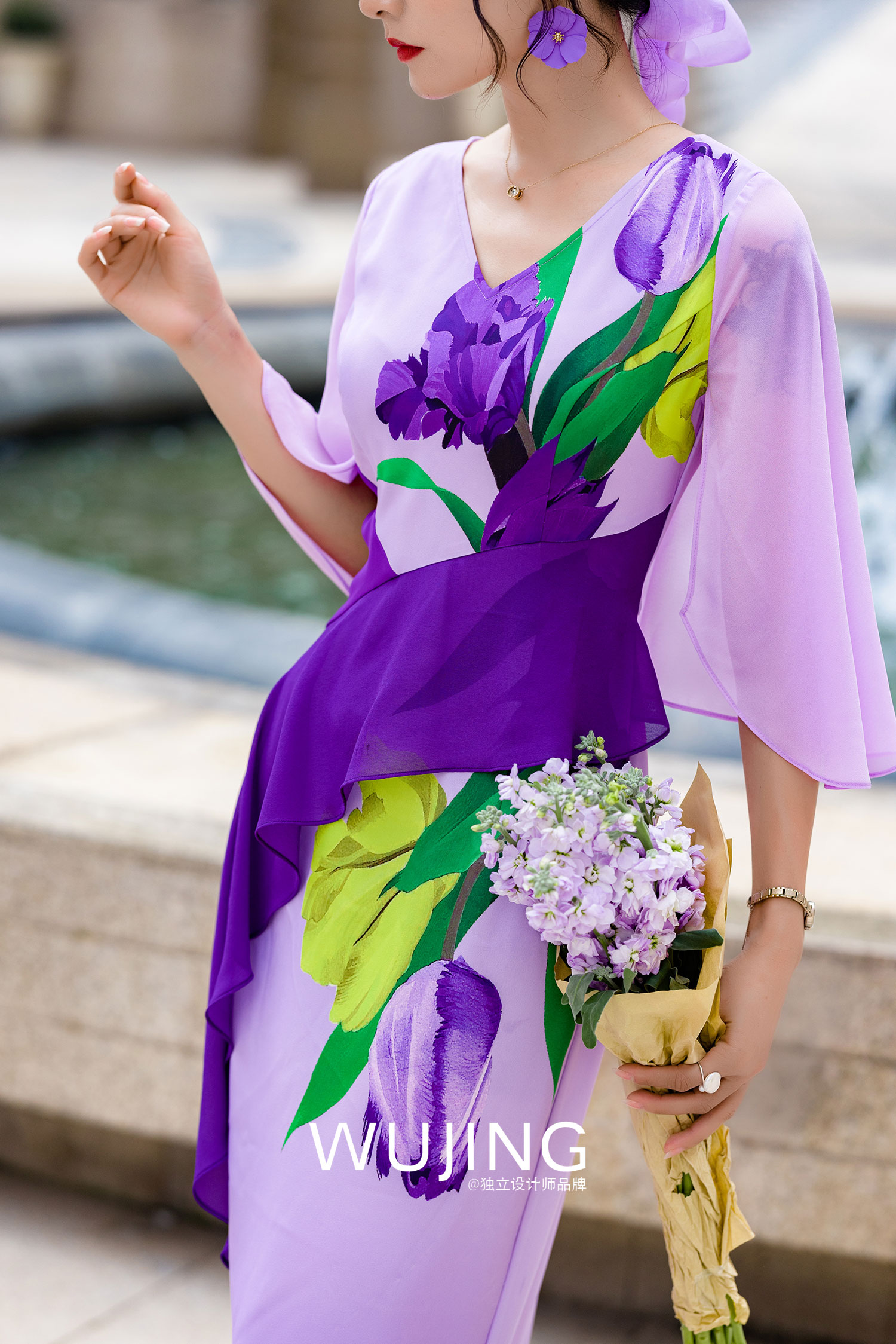 3022030 紫露幽香 郁金香紫连衣裙 雾境