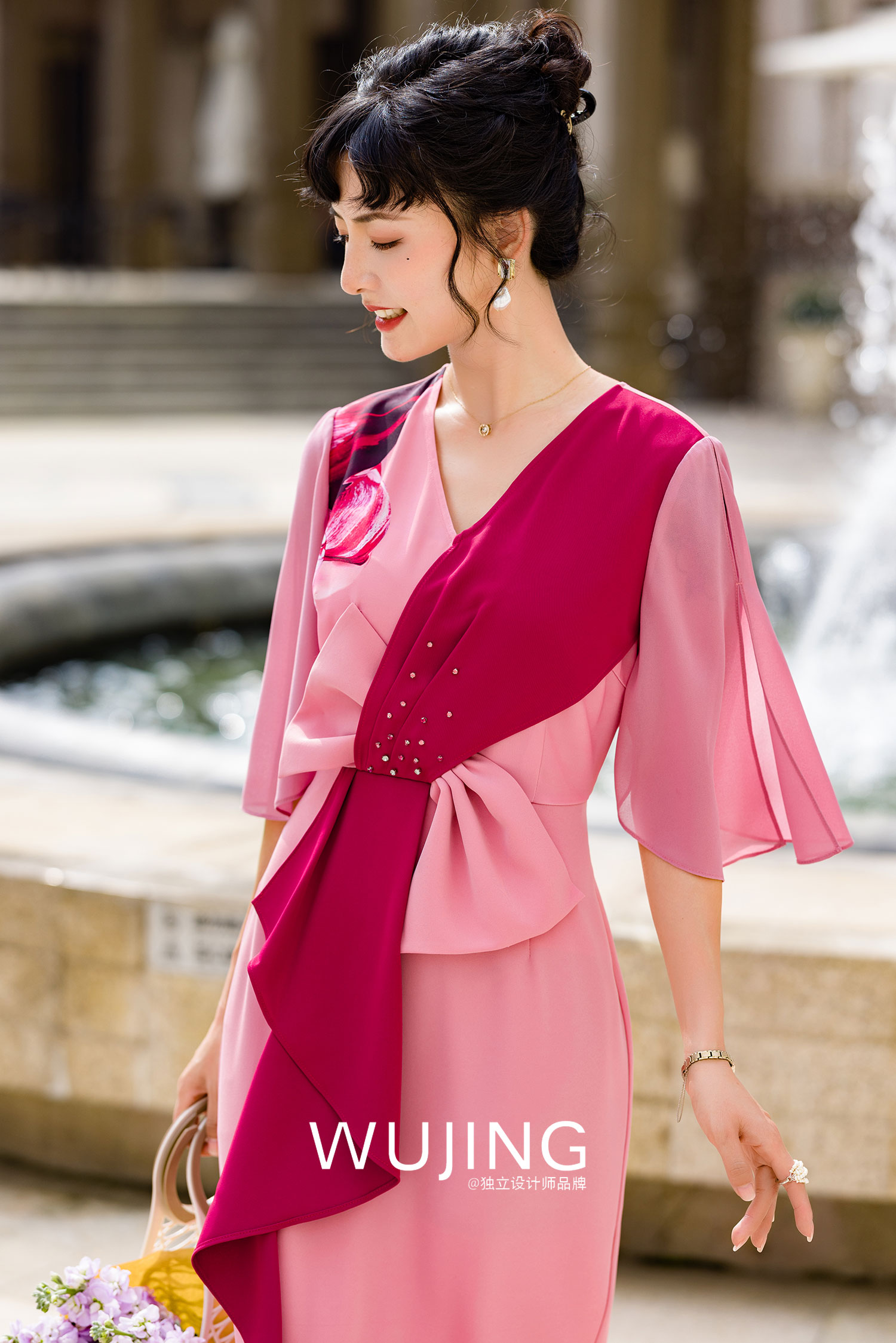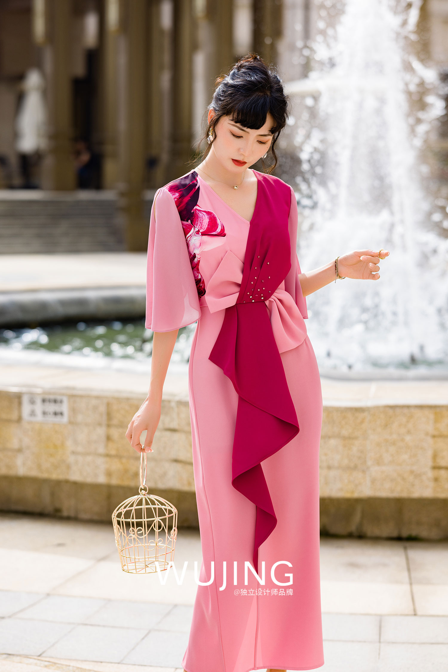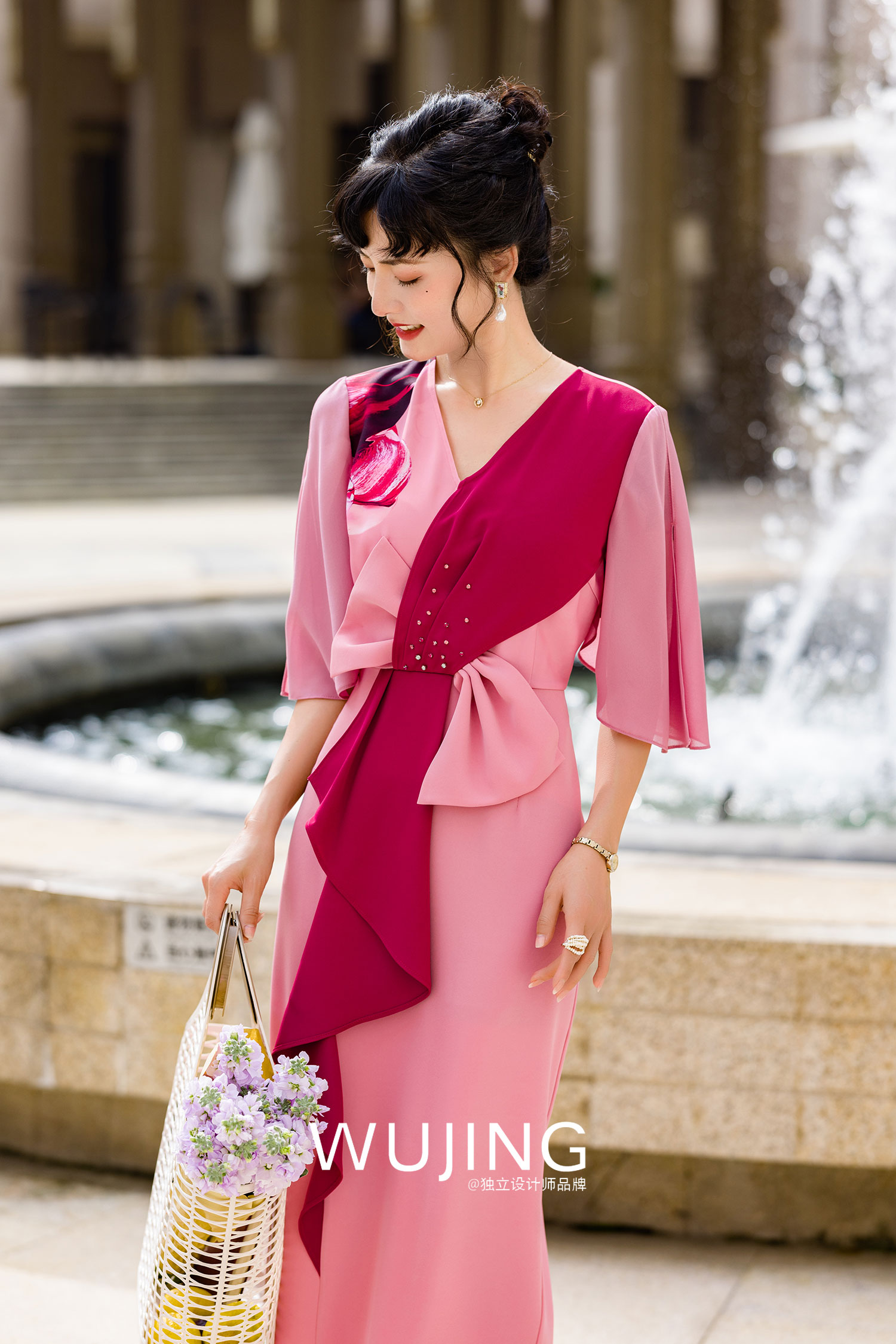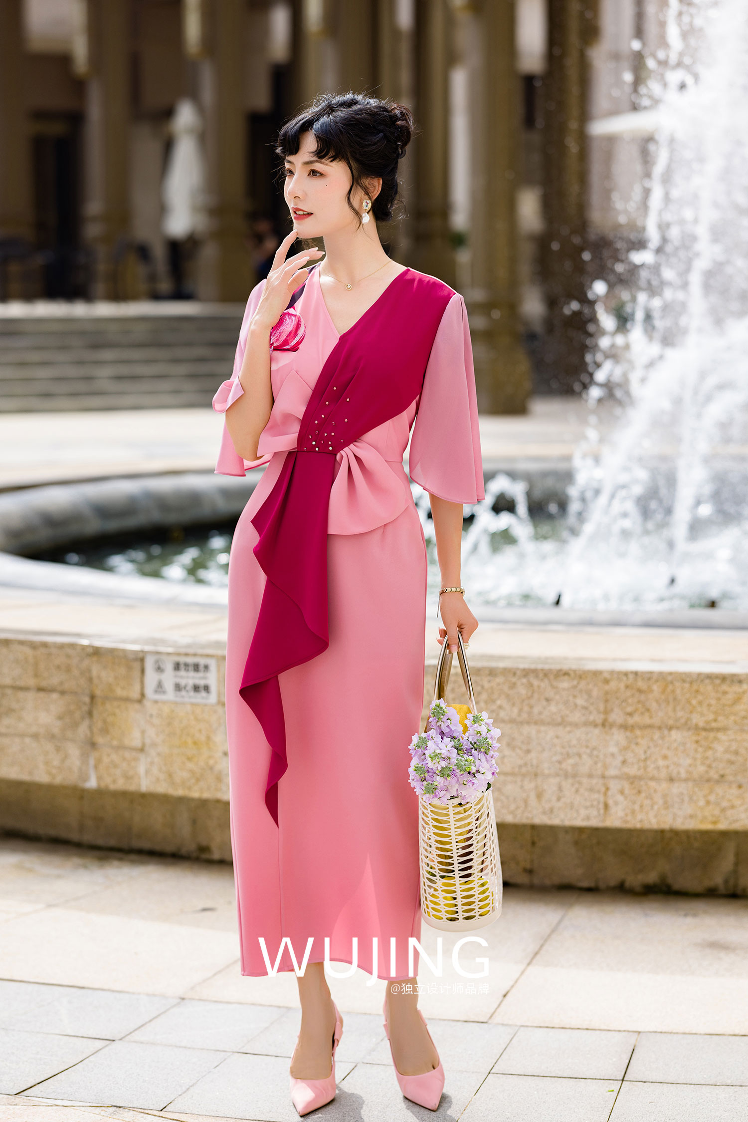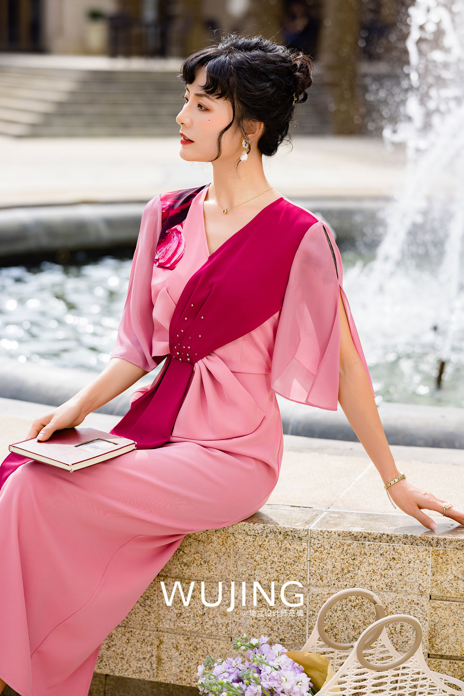 3022038 粉黛胭脂 藕粉色连衣裙 雾境