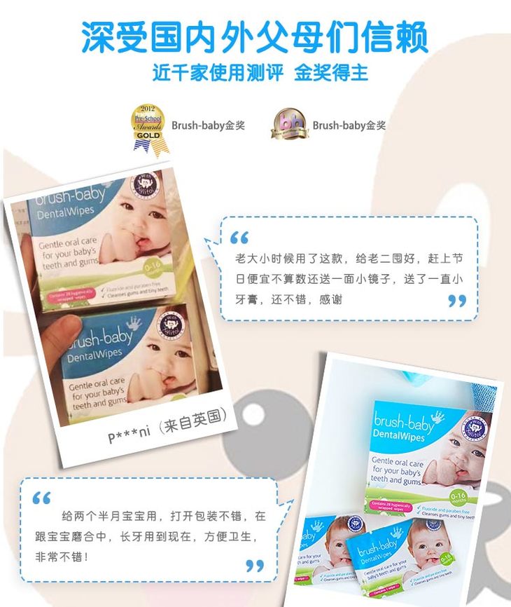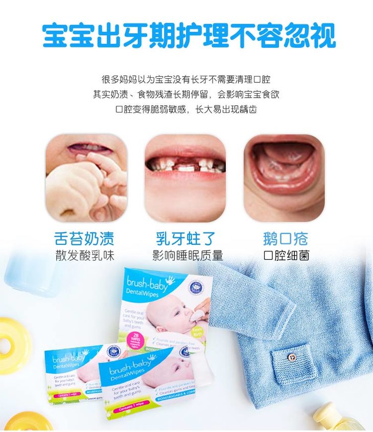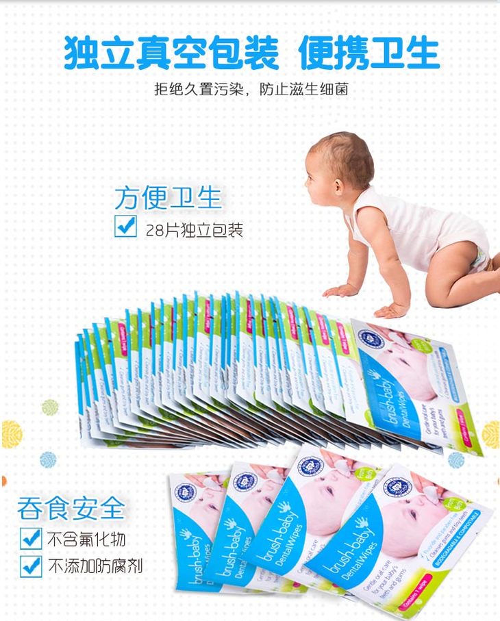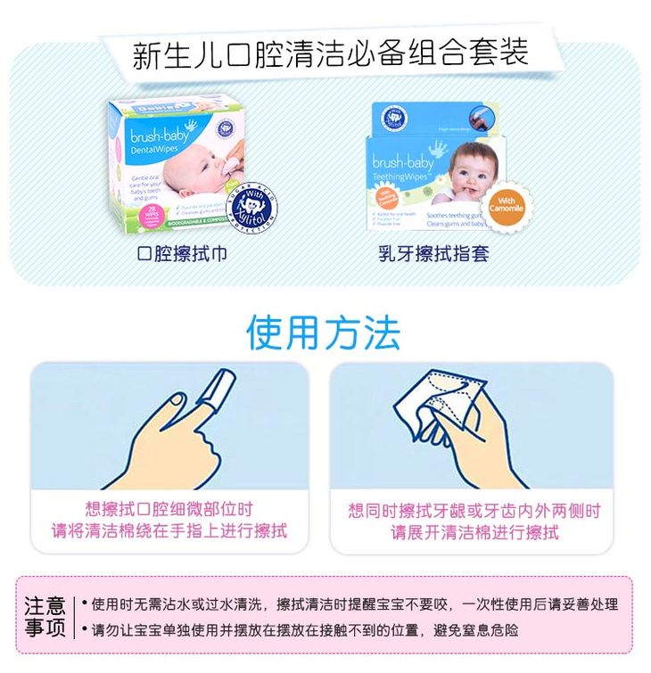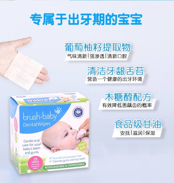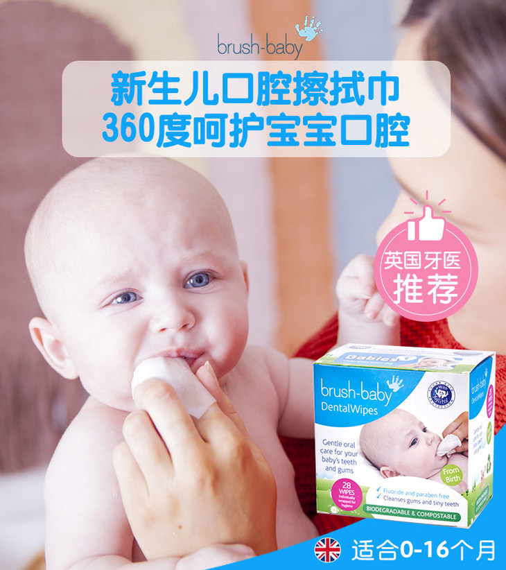 brush-baby百刷宝贝英国婴儿口腔擦拭巾宝宝舌苔牙龈乳牙洁齿清洁湿巾28片