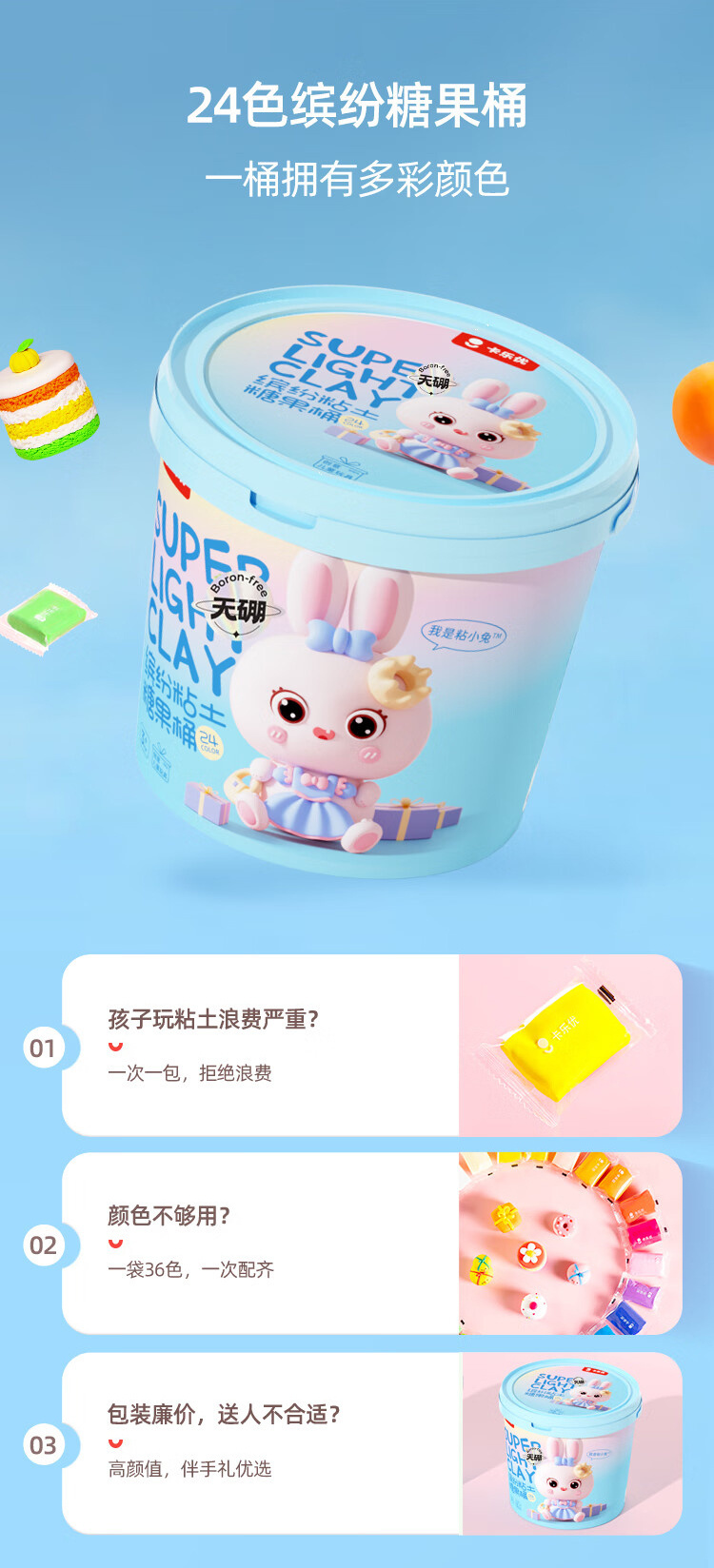 ✨但是市面上的粘土千千万万种,材料也都各不一致,有的黏土不安全,化学超标,宝宝稚嫩的皮肤接触就会过敏,有的粘手严重,洗都洗不掉,还有的没法塑形,根本做不出来宝宝想要的样子