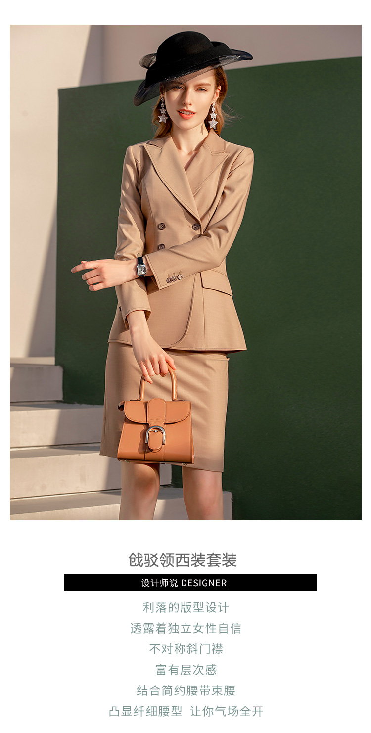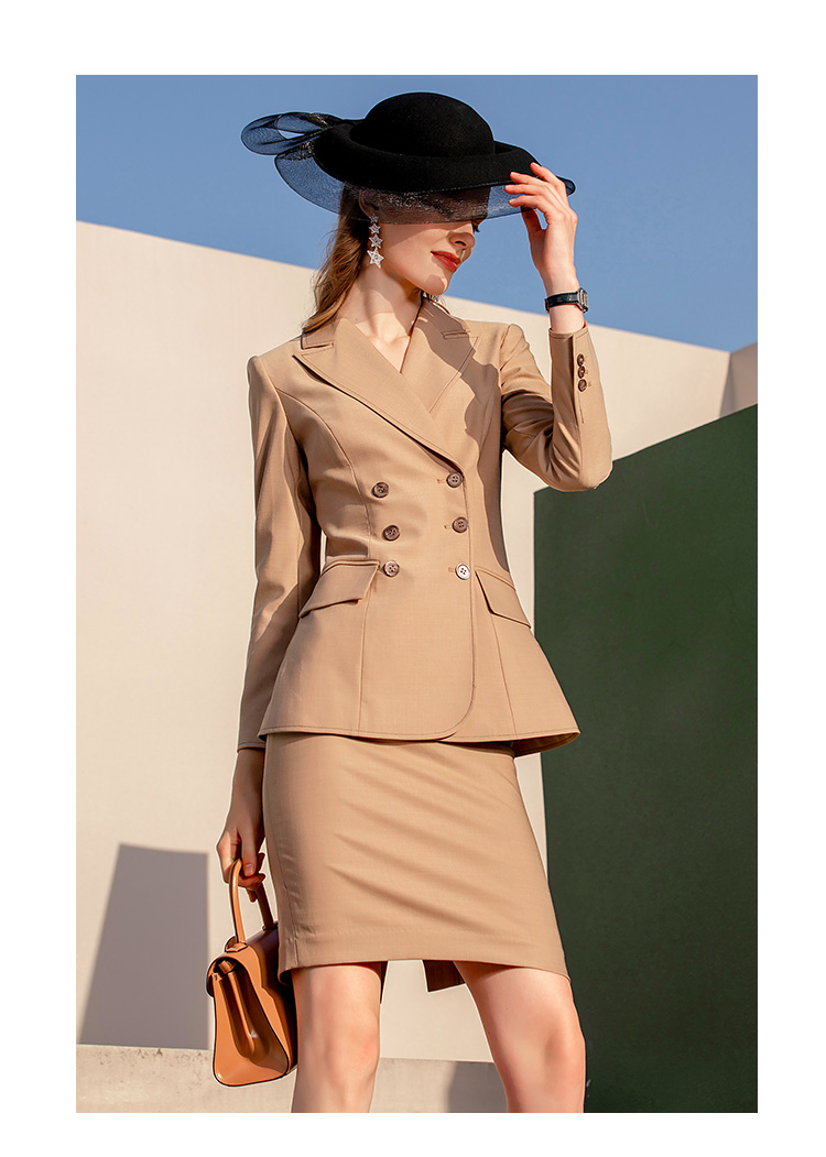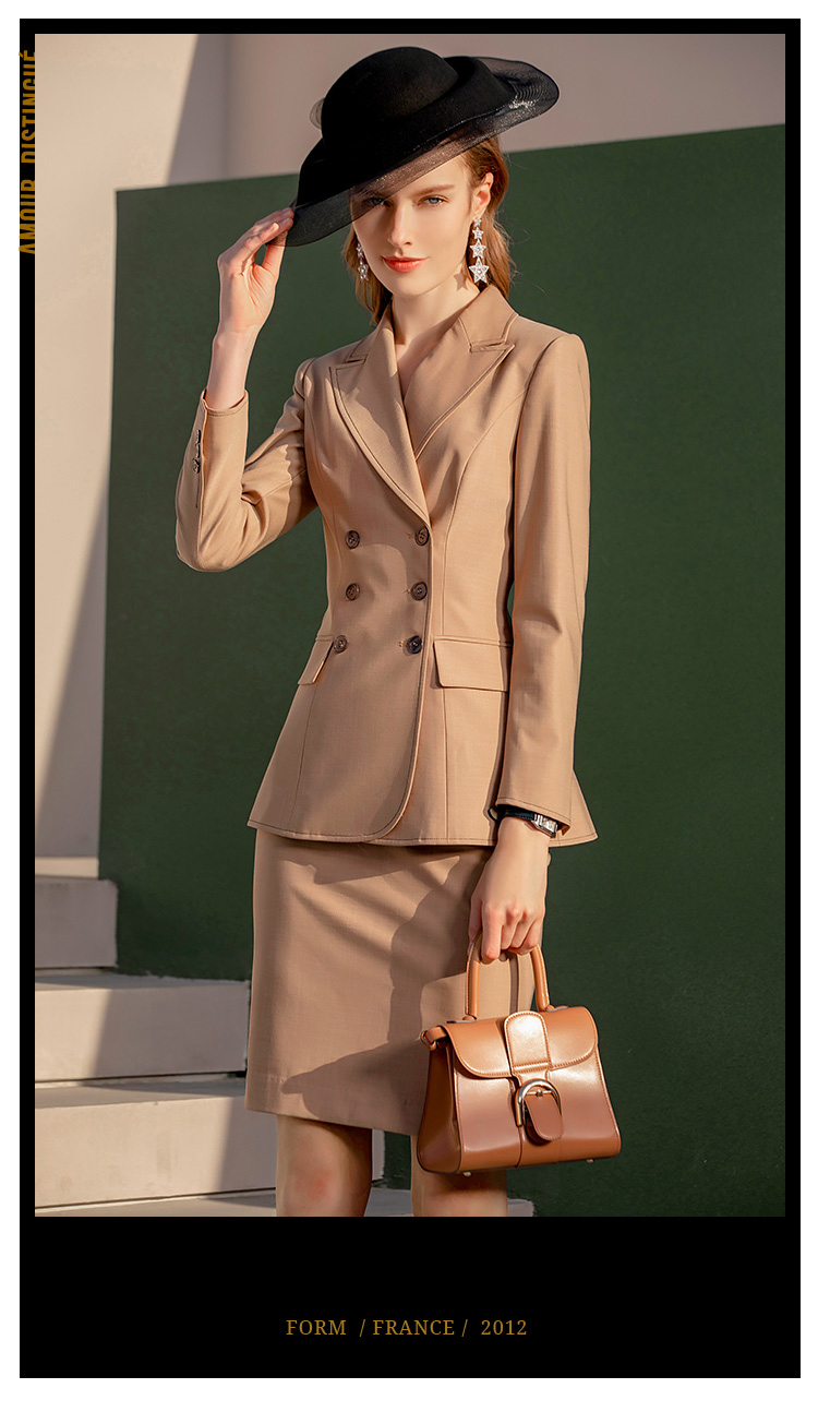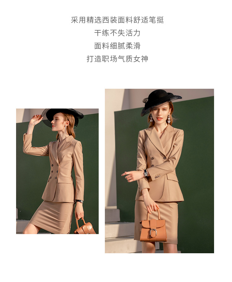 IWY/英伦风双排扣卡其色西装套装女时尚正装OL职业装套裙气质工服C1128+S982