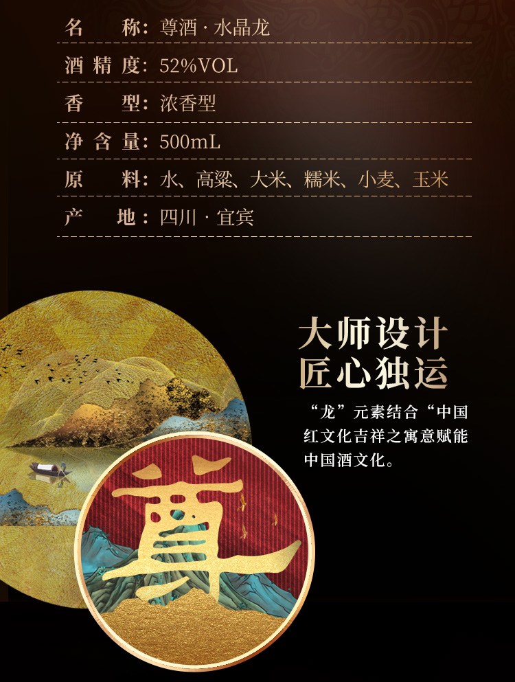52度五粮液股份 尊酒·尊龙系列(水晶龙) 500ml 单瓶(仅供线上销售)