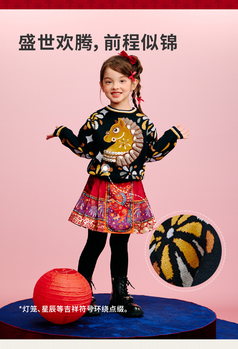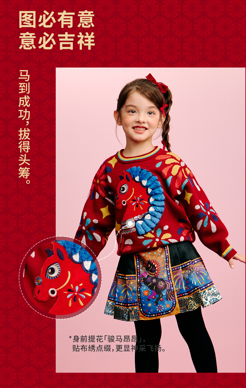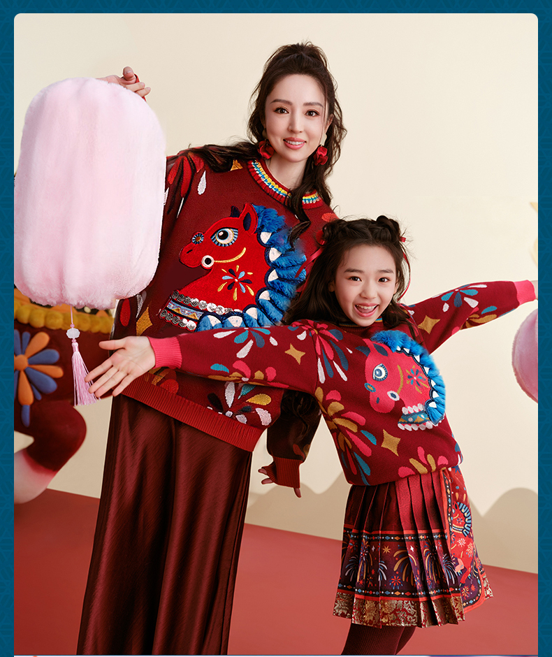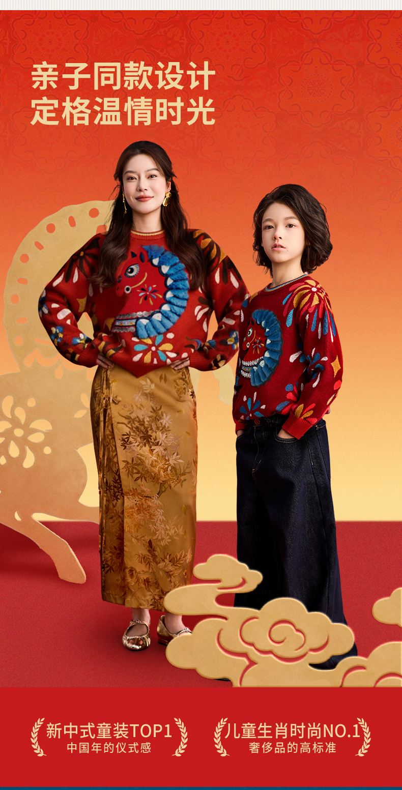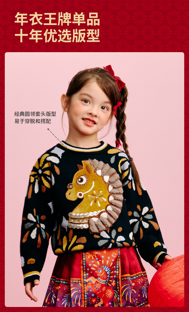 年衣童装儿童毛衣亲子装冬新品男女童针织盛世乐马毛衣