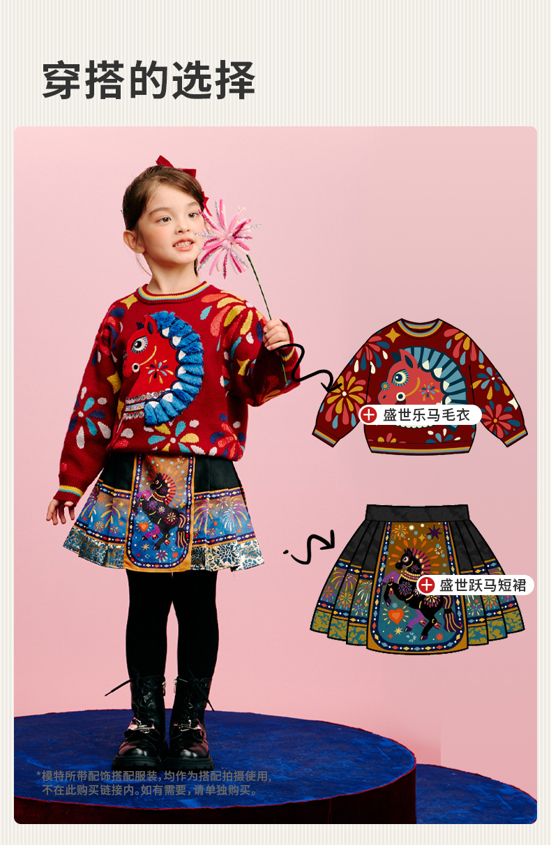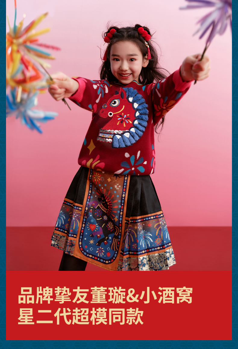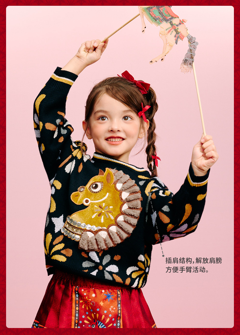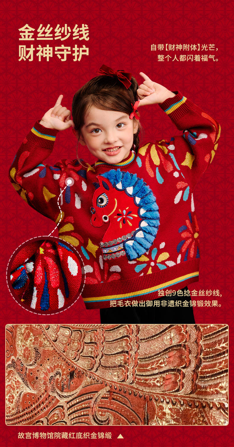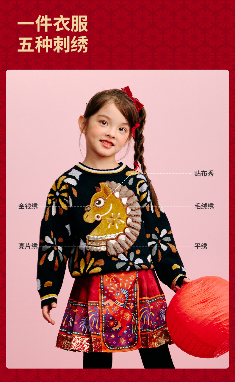 年衣童装儿童毛衣亲子装冬新品男女童针织盛世乐马毛衣