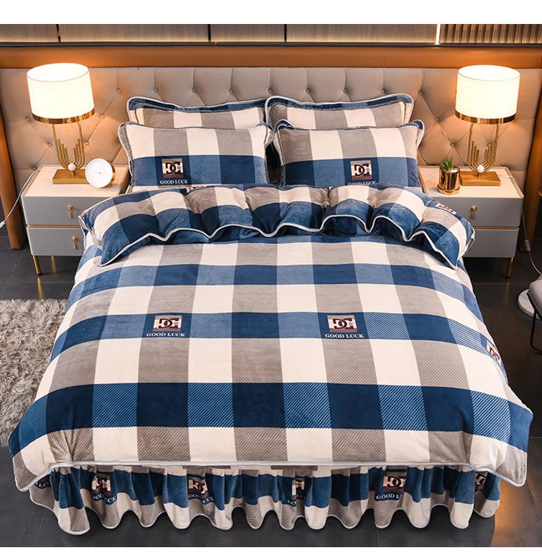 秋冬牛奶绒四件套珊瑚绒纯色法兰绒三件套床单双人被套礼品批发