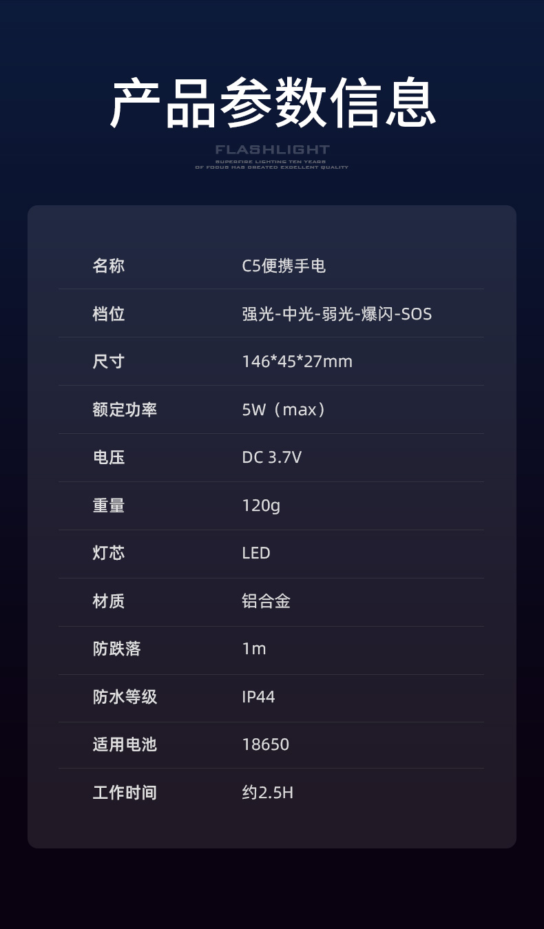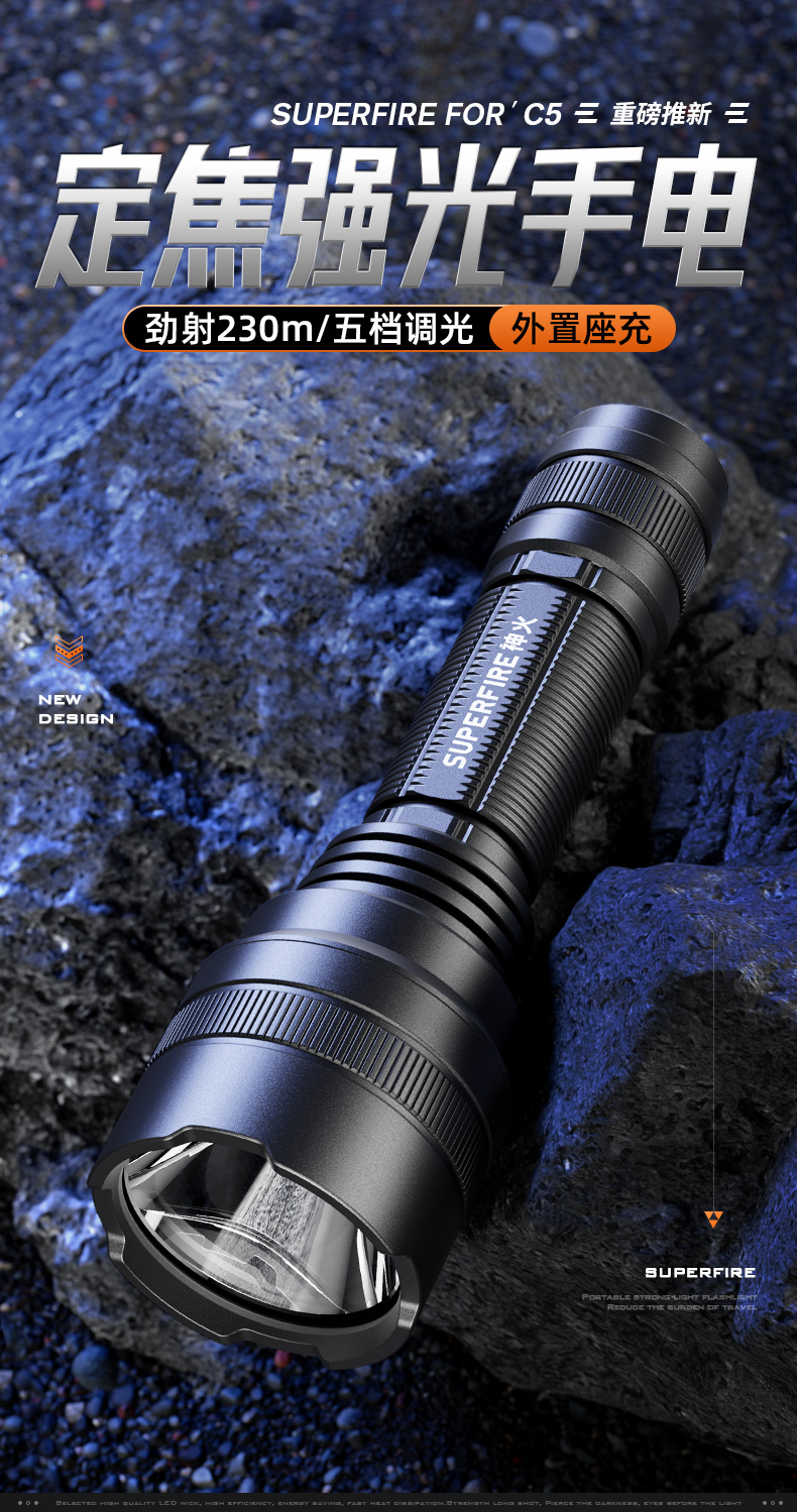 神火C5强光手电充电续航小巧便携防水高亮户外照明