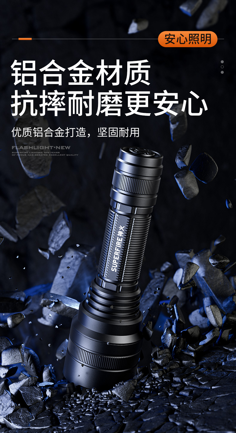 SUPERFIRE神火L6手电筒强光远射可充电超亮户外防水便携防身led手电