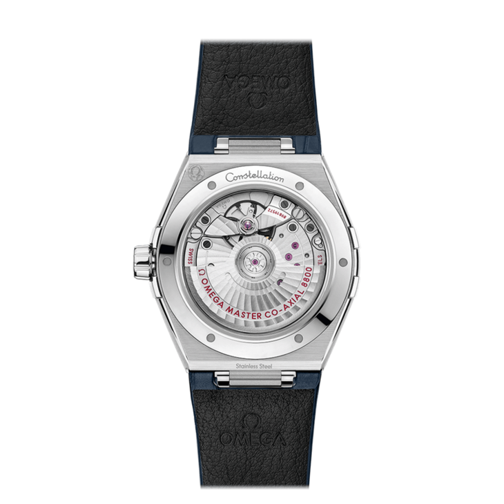 镜面材质 | 蓝宝石水晶玻璃 | 表盘 | 精钢表身精钢,表圈饰以蓝色罗马数字刻度,星座系列特有的“托爪”设计。 水平拉丝深钌灰色表盘 6点钟位置设有日历窗口。指针、欧米茄品牌标识、星座徽标以及钻石托槽均涂覆蓝色 日期显示 透底 |