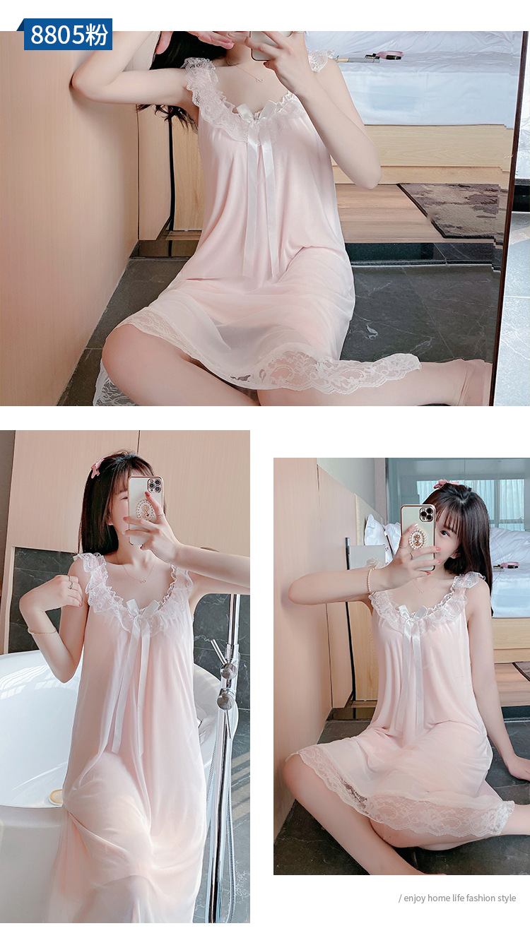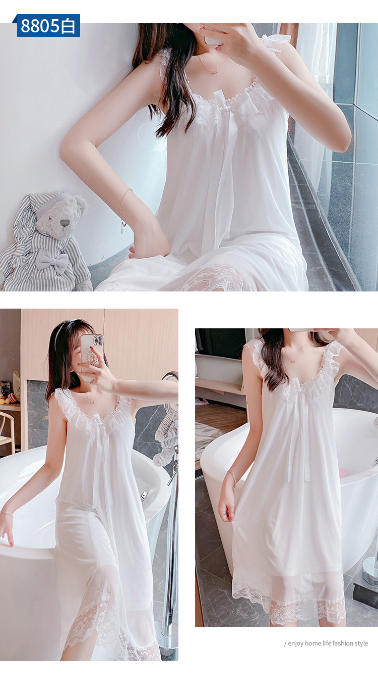 【自带胸垫!可拆卸设计】吊带睡裙女夏季薄款性感公主宫廷风带胸垫大码孕妇宽松冰丝睡衣家居服女。ry