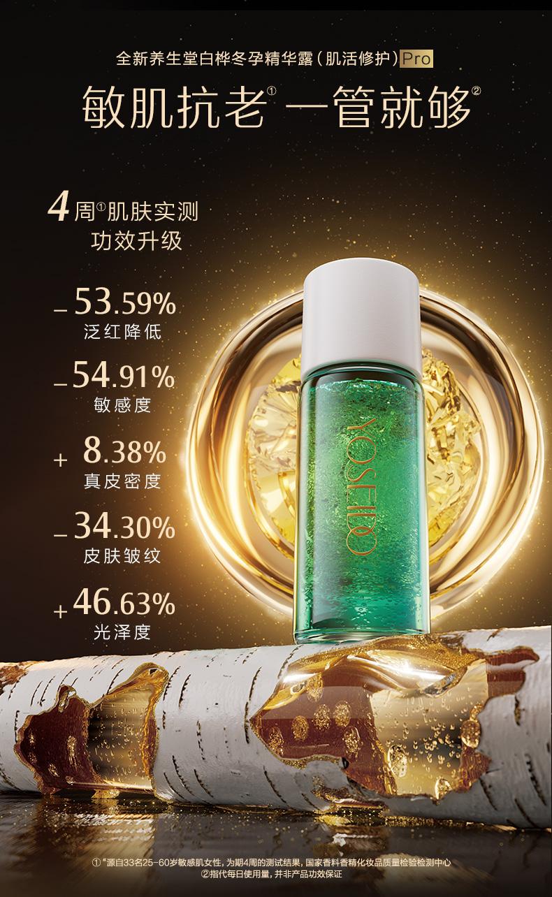 - 养生堂YOSEIDO,高端护肤品牌。专研白桦原液•来自北纬45° 的细胞抗老成分,源自1772年《丹麦药典》。不额外添加一滴水,让青春永续。