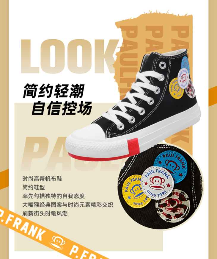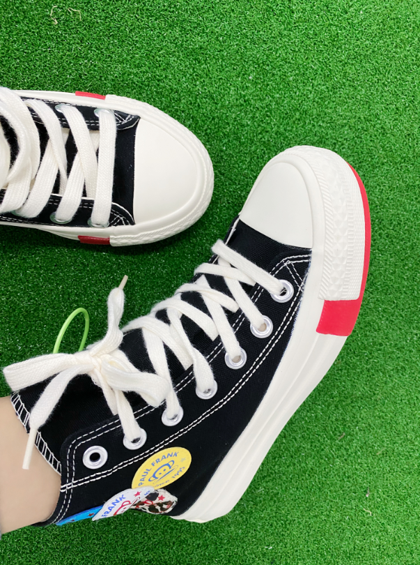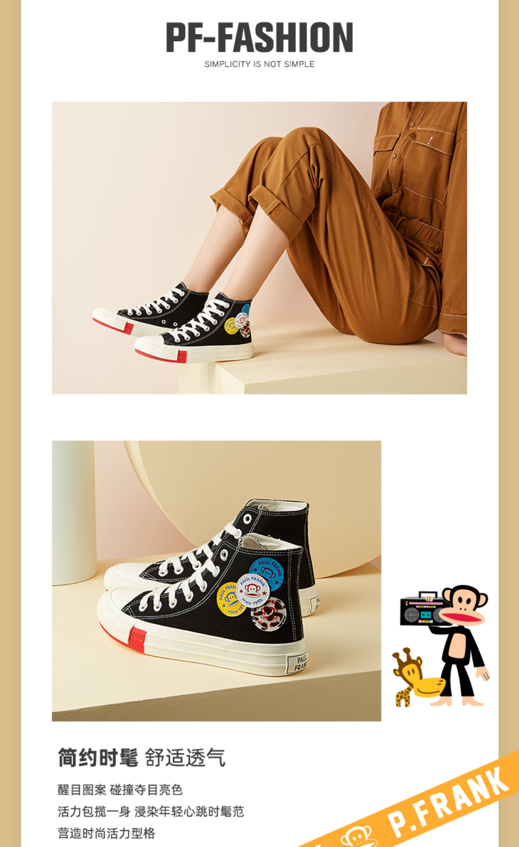 【品名】大嘴猴泫雅风高邦帆布鞋情侣款