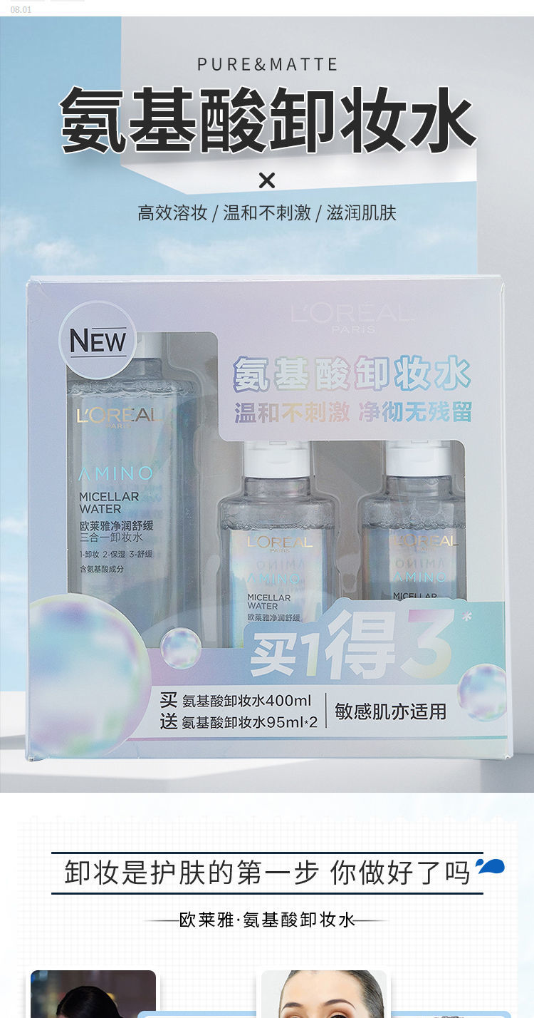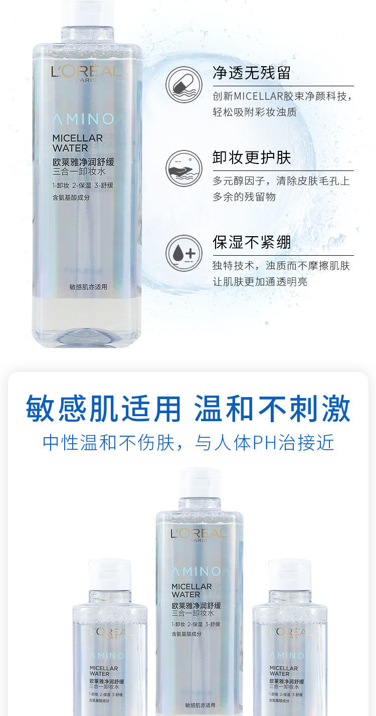 【爆款超低价预售 急单慎拍】欧莱雅氨基酸卸妆水套装590ML大瓶温和不刺激深层清洁卸妆液油