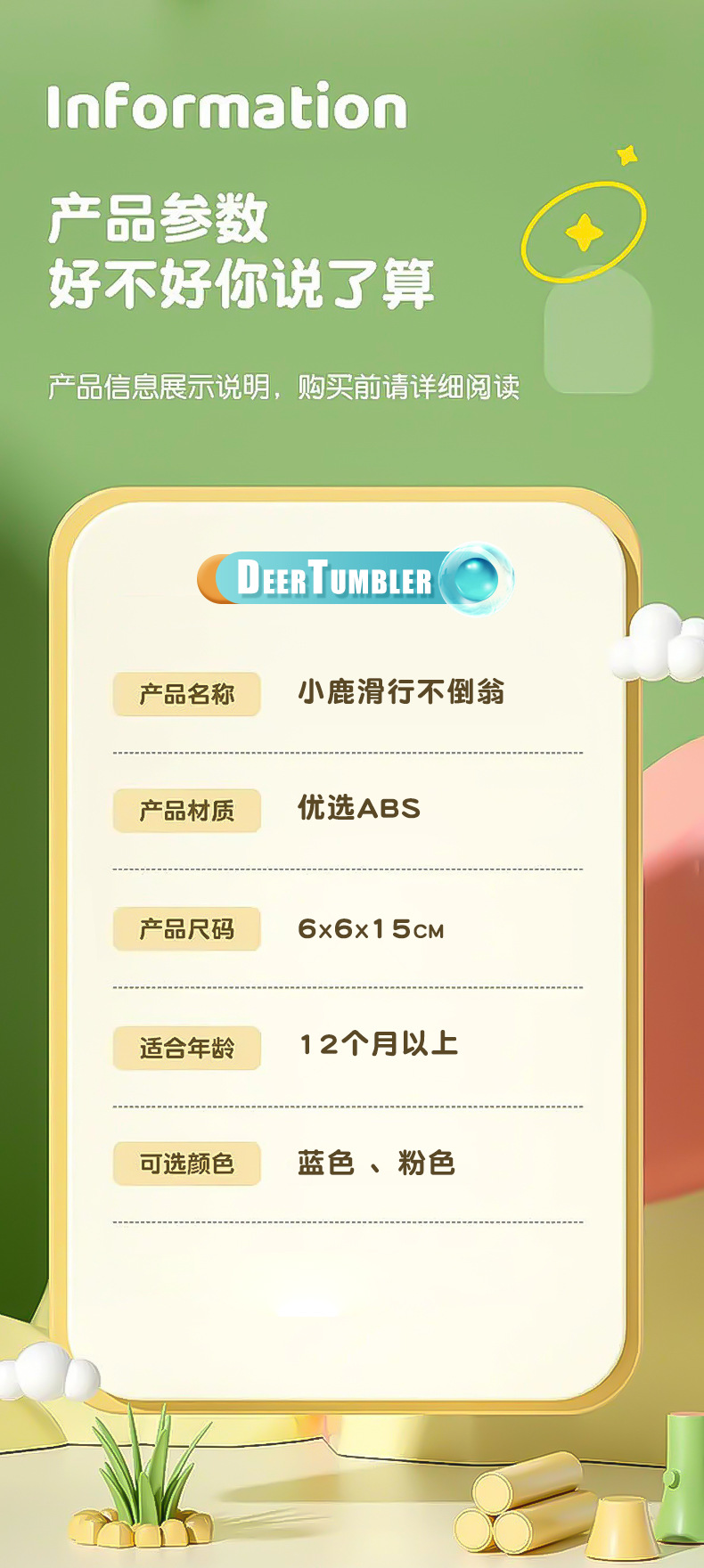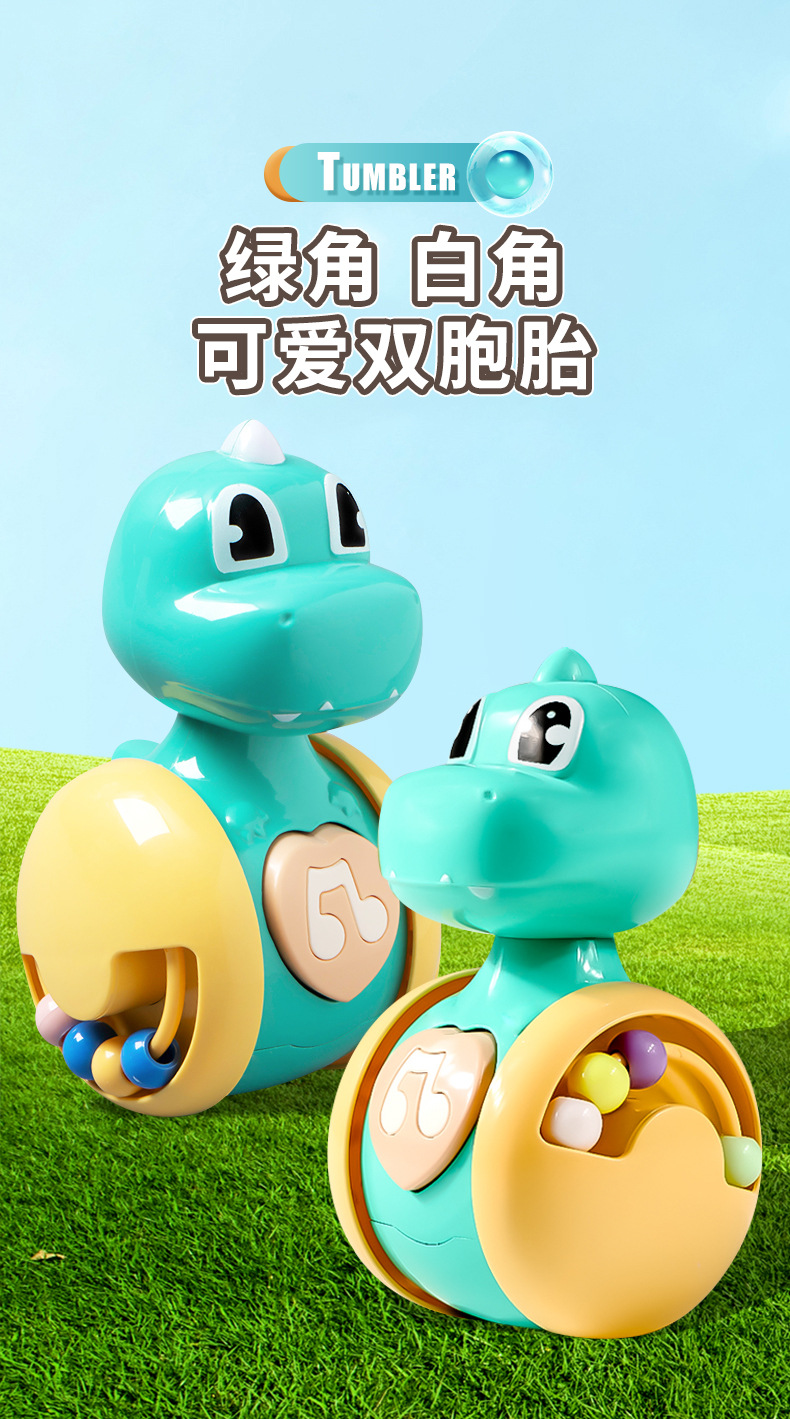 【萌趣新奇卡通形象❗️安全坚硬抗摔耐撞】小鹿不倒翁儿童益智早教玩具婴儿安抚哄娃卡通吱吱叫小恐龙。jb