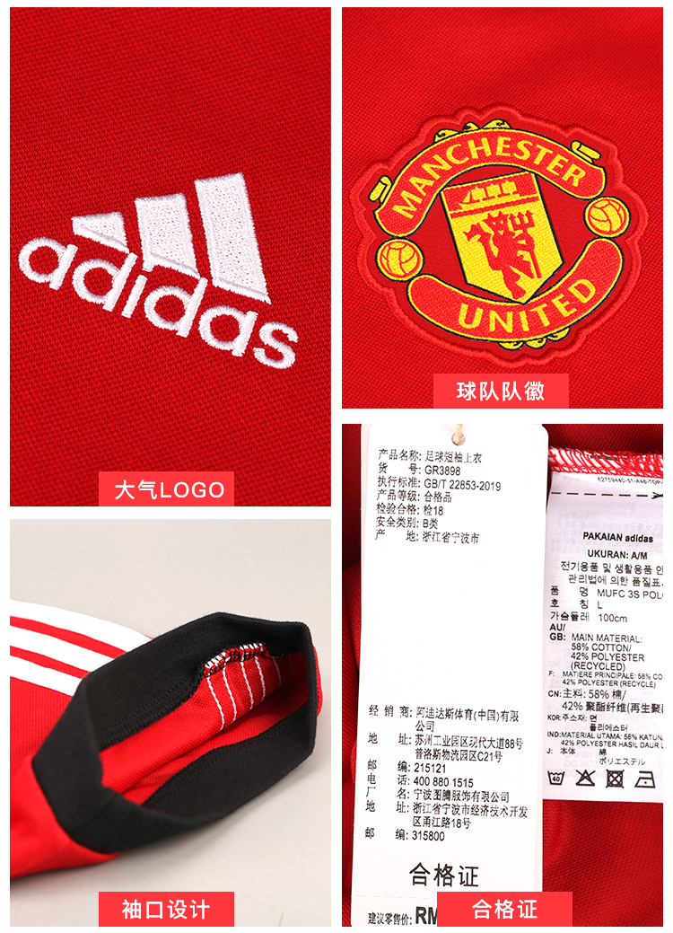 ADIDAS/阿迪达斯 MUFC 3S POLO 曼联3客配色poloGR3898