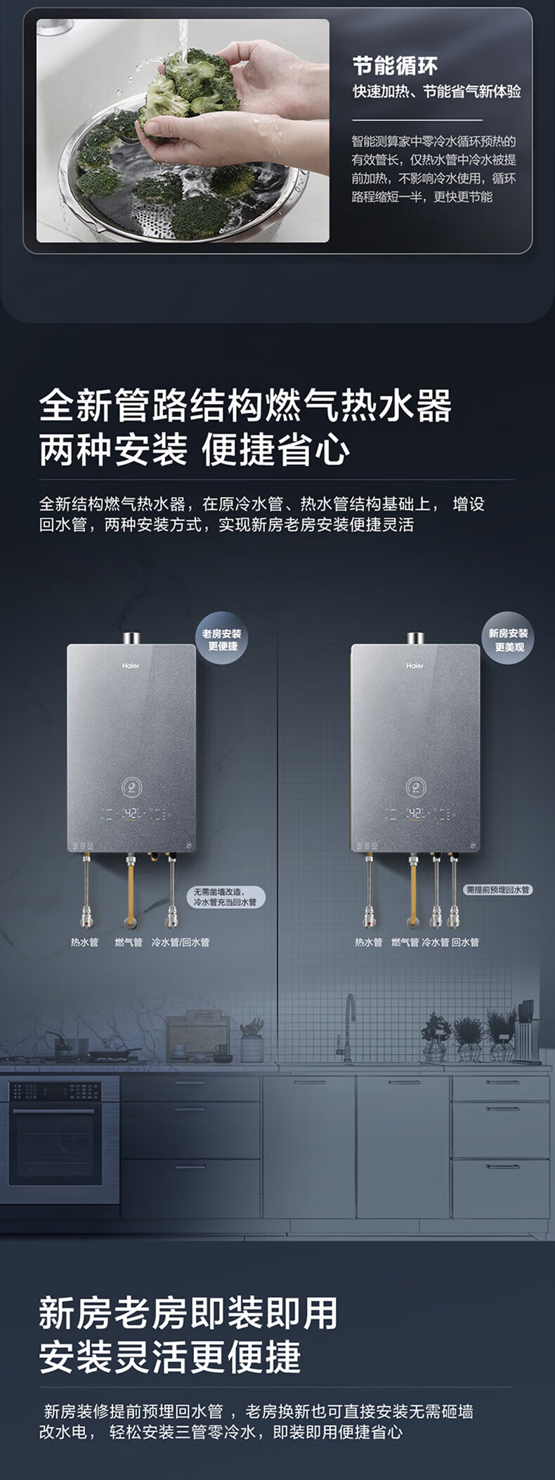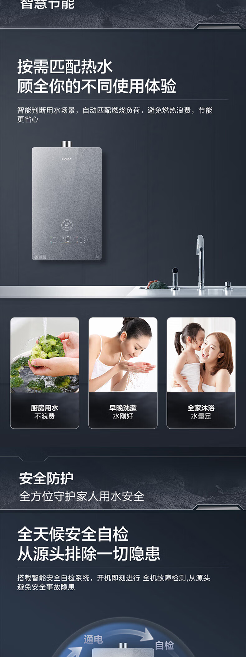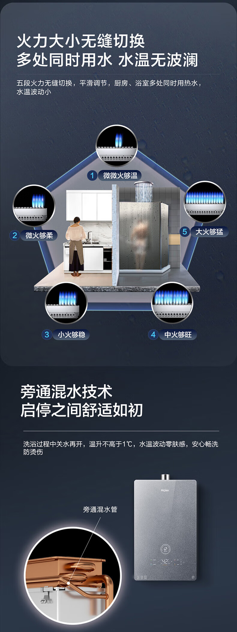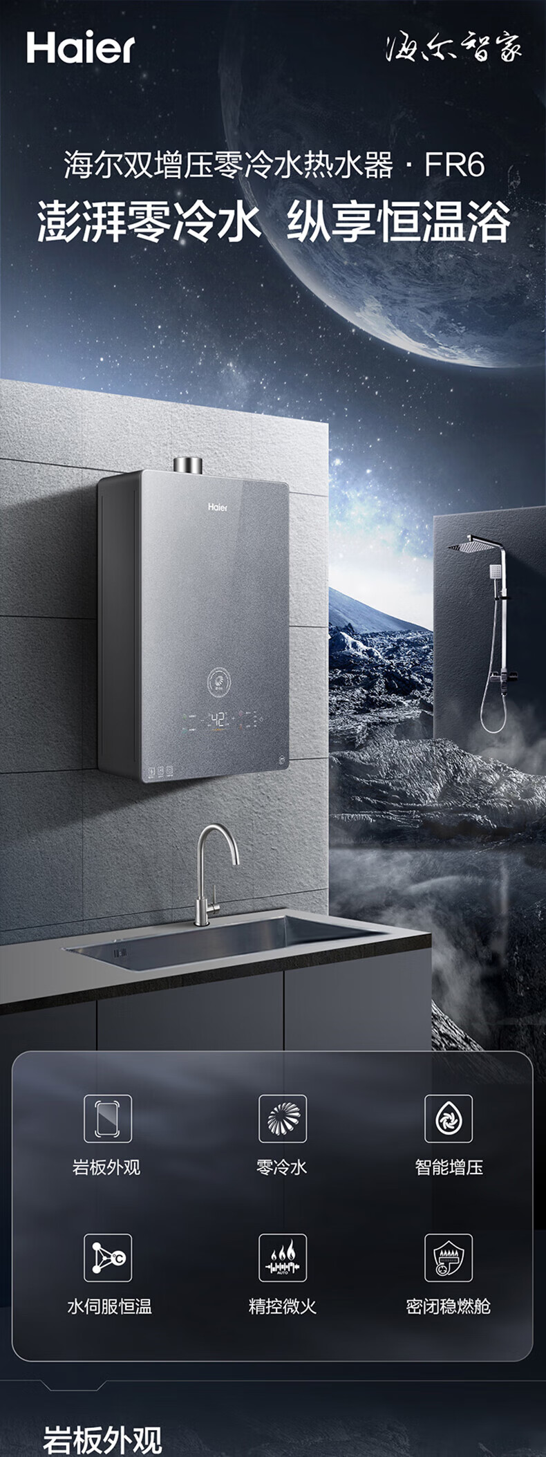 海尔(Haier)【2023水量伺服三管零冷水新品】海尔热水器下置风双增压密闭稳燃舱水量伺服精准控温热水器 零冷水JSQ31-16FR6BPU1