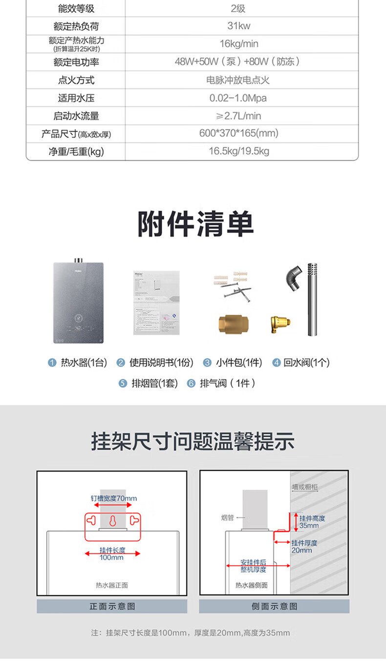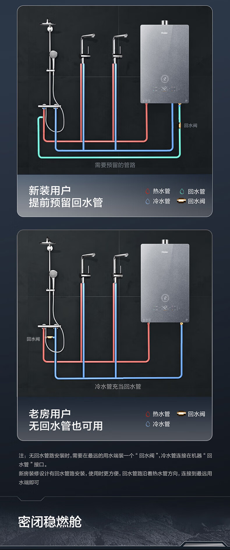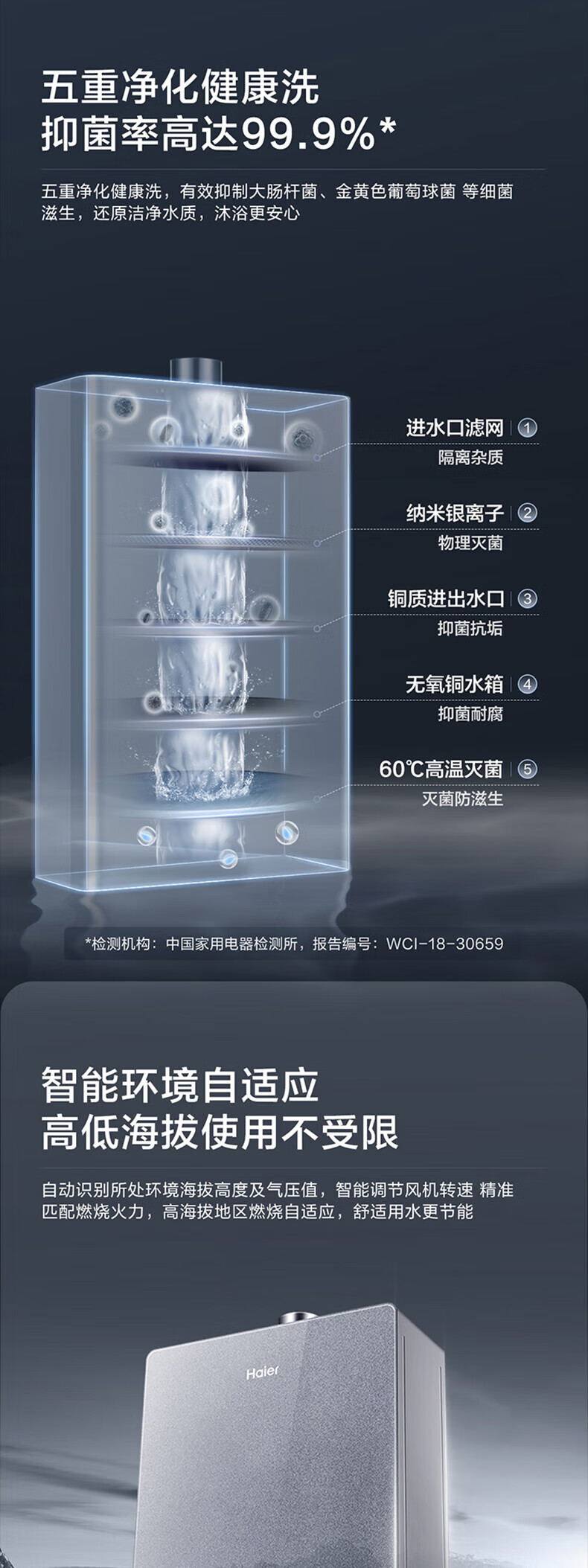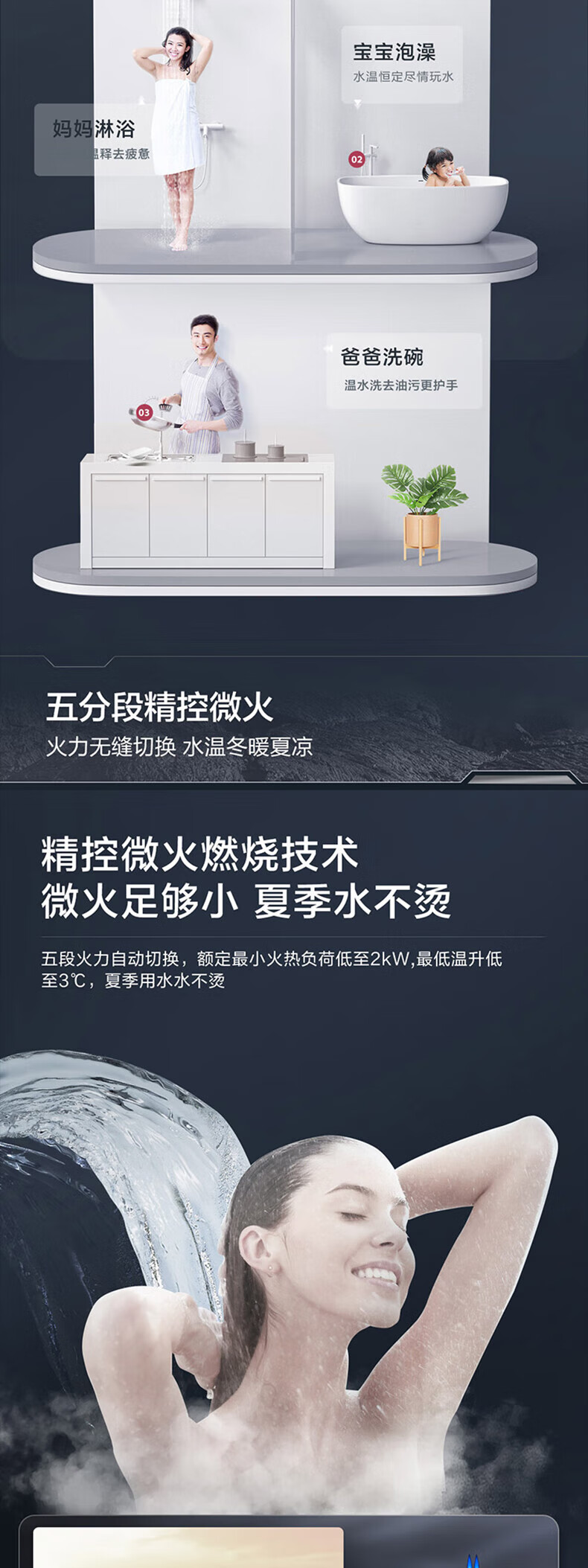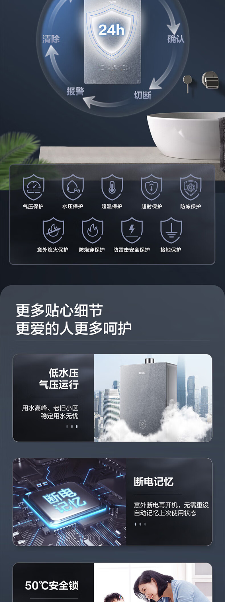 海尔(Haier)【2023水量伺服三管零冷水新品】海尔热水器下置风双增压密闭稳燃舱水量伺服精准控温热水器 零冷水JSQ31-16FR6BPU1