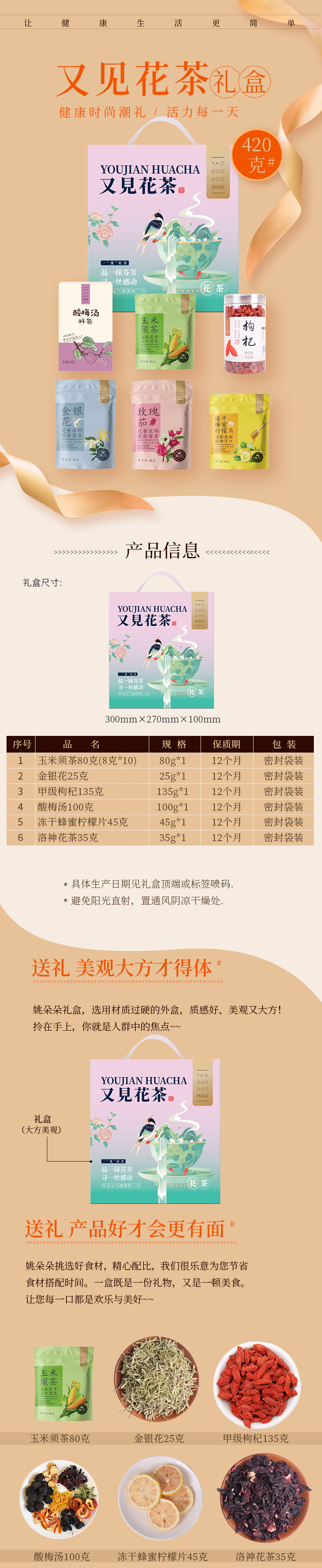 姚朵朵 又见花茶礼盒420克 玫瑰花茶柠檬片洛神花茶