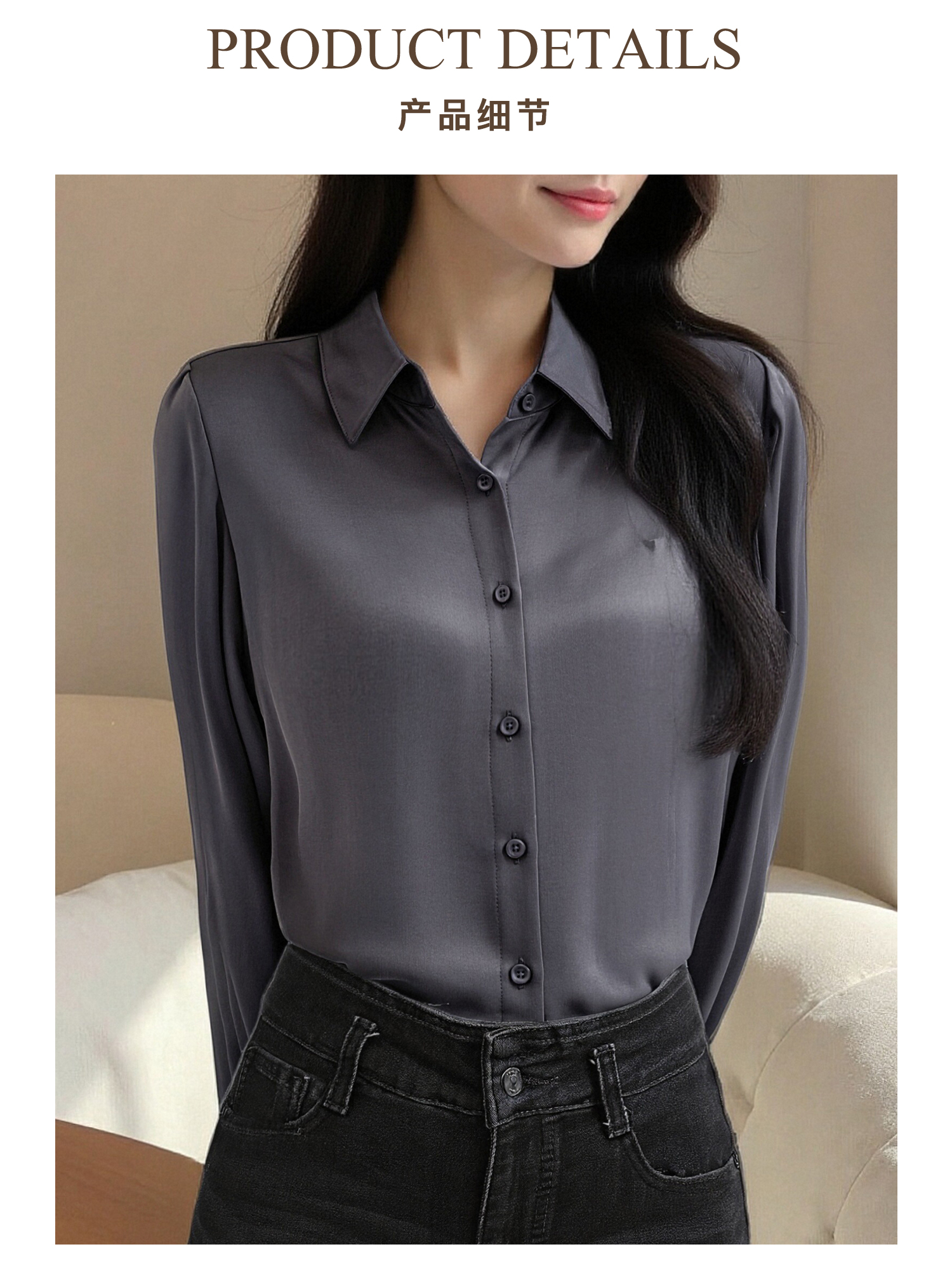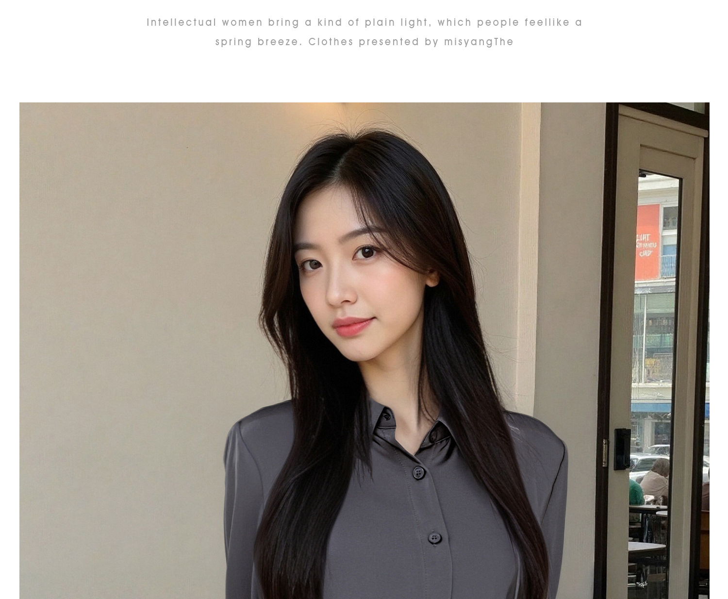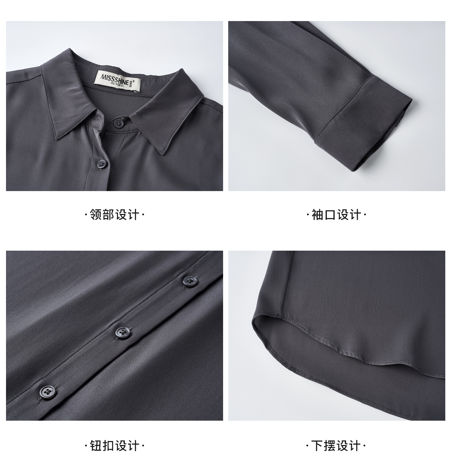 米思阳 知性优雅风 通勤OL单排扣百搭简约灰色衬衫女4927