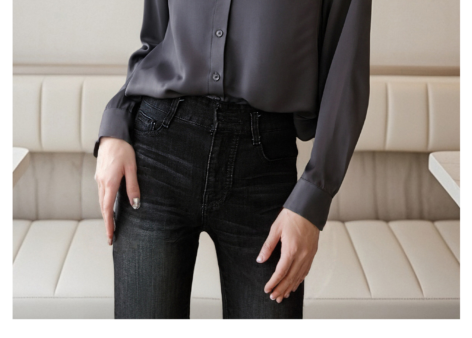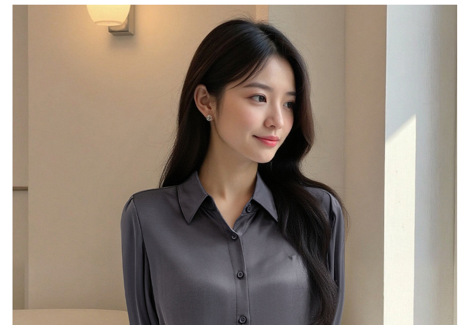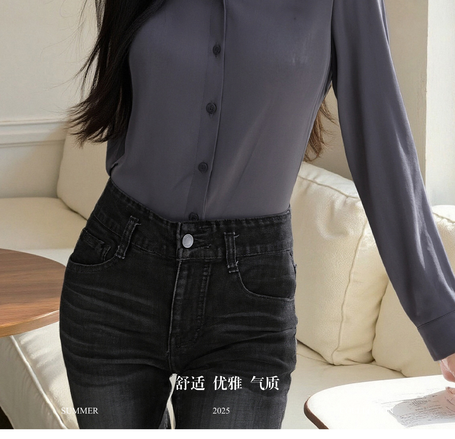 米思阳 知性优雅风 通勤OL单排扣百搭简约灰色衬衫女4927