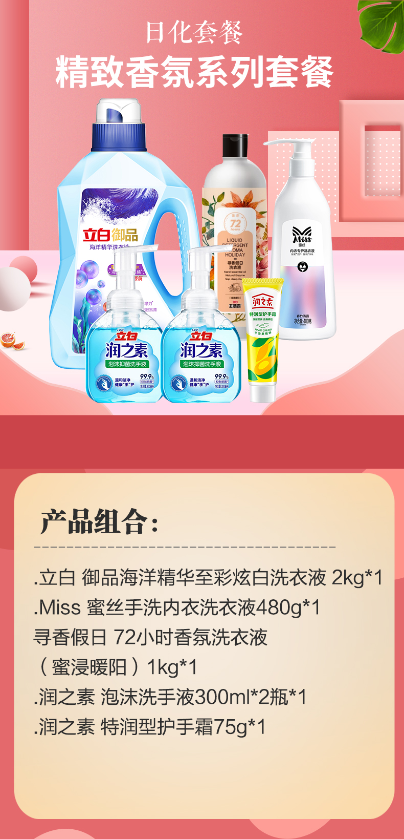 立白 精致香氛系列套餐(洗衣液+洗手液+护手霜)家庭装
