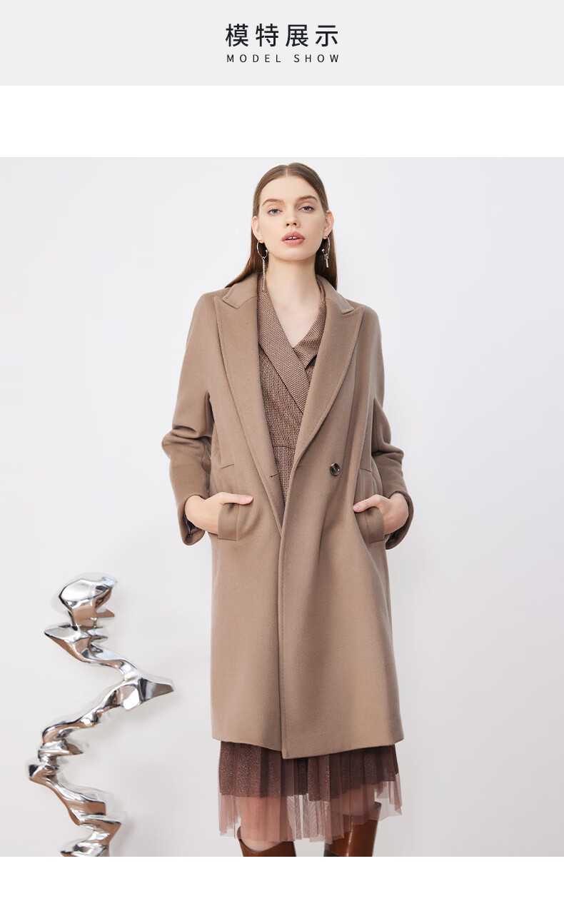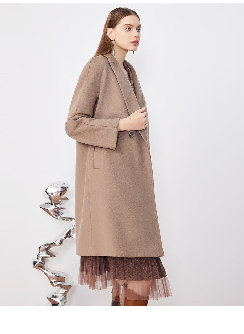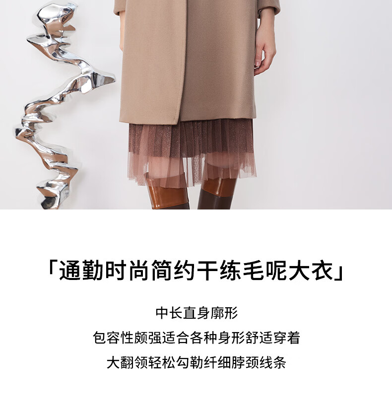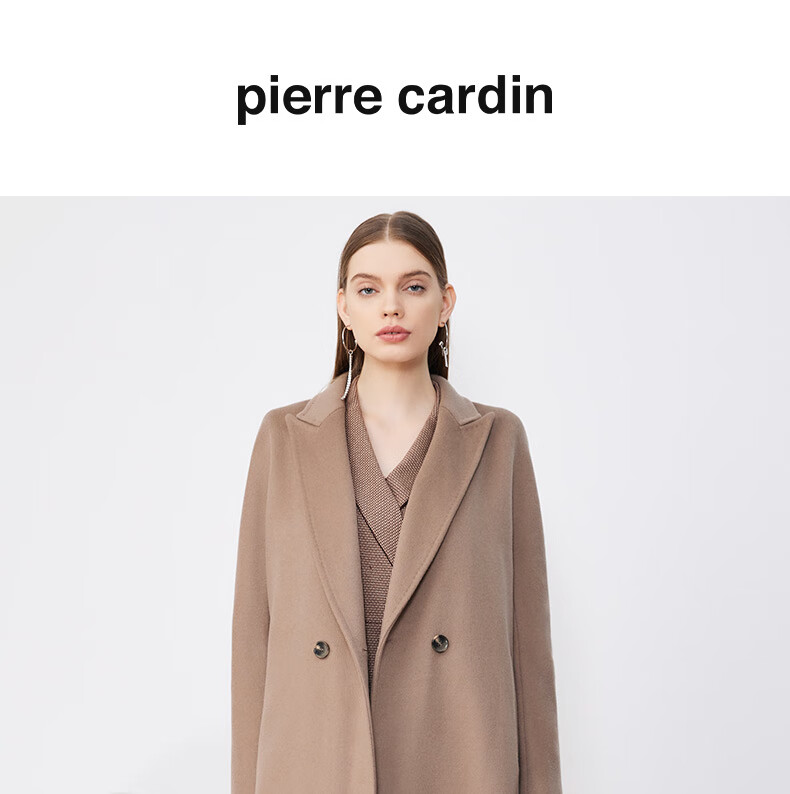 皮尔卡丹女装毛呢外套经典款正肩H版日常时尚女大衣P3422C3975M2