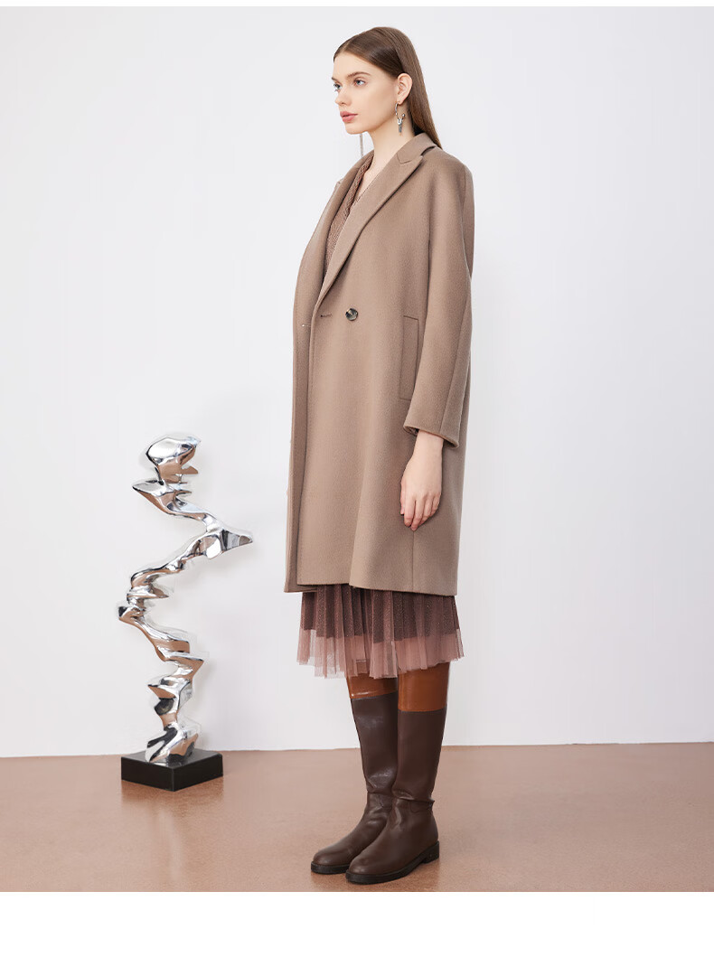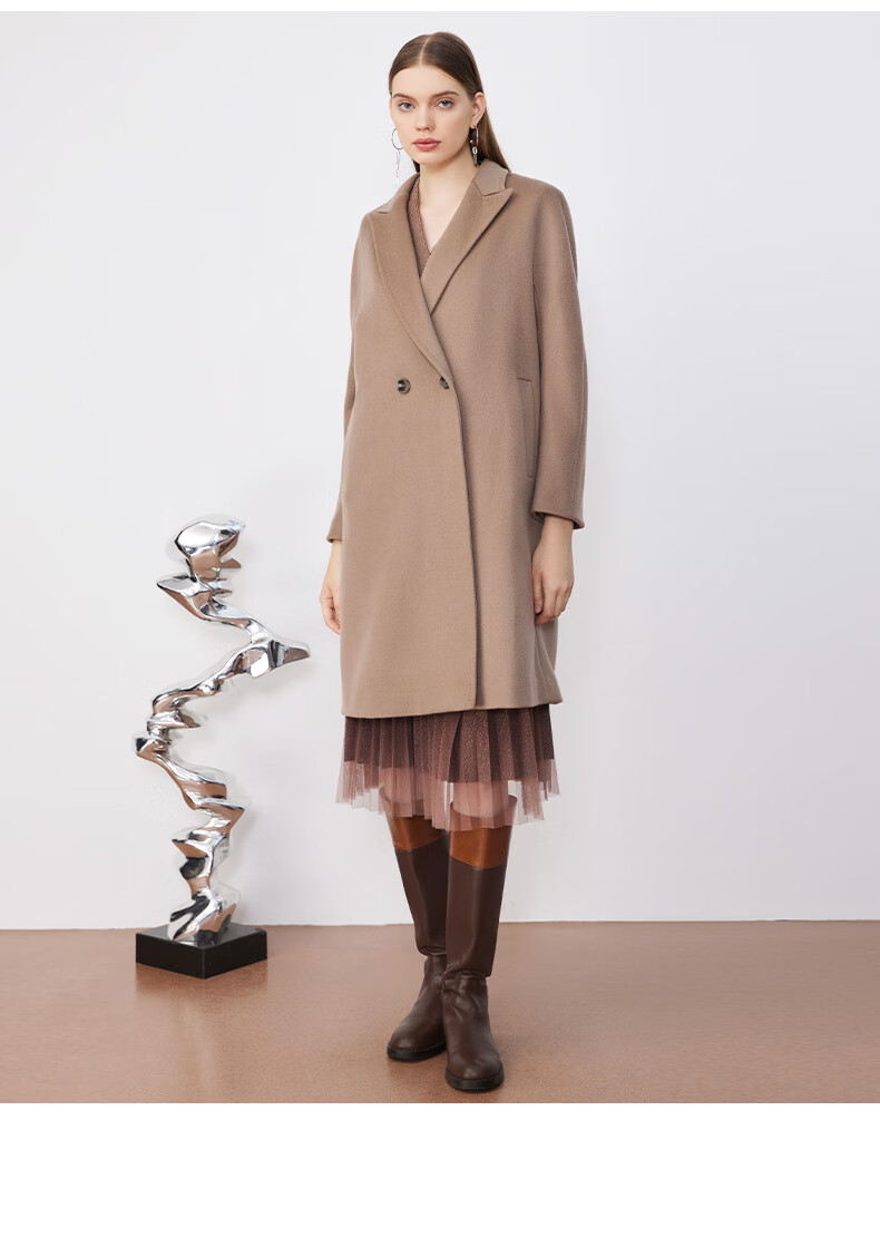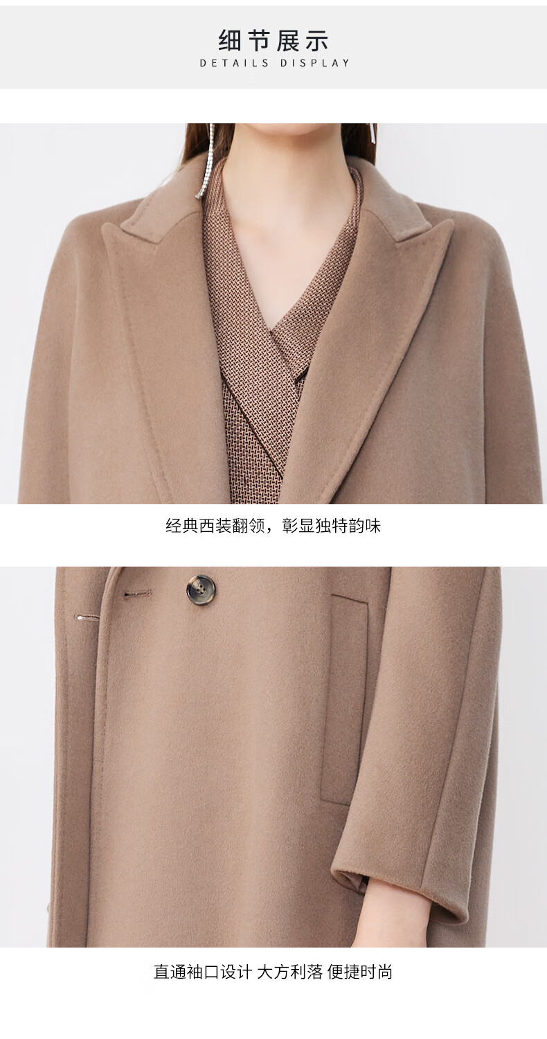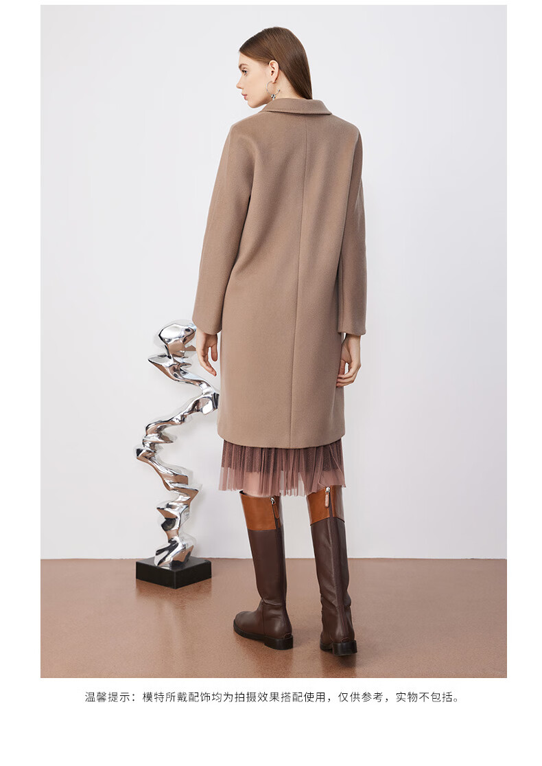 皮尔卡丹女装毛呢外套经典款正肩H版日常时尚女大衣P3422C3975M2