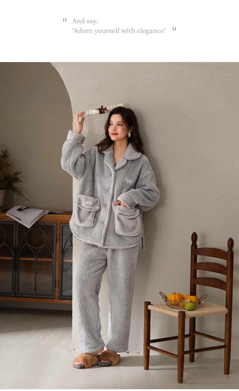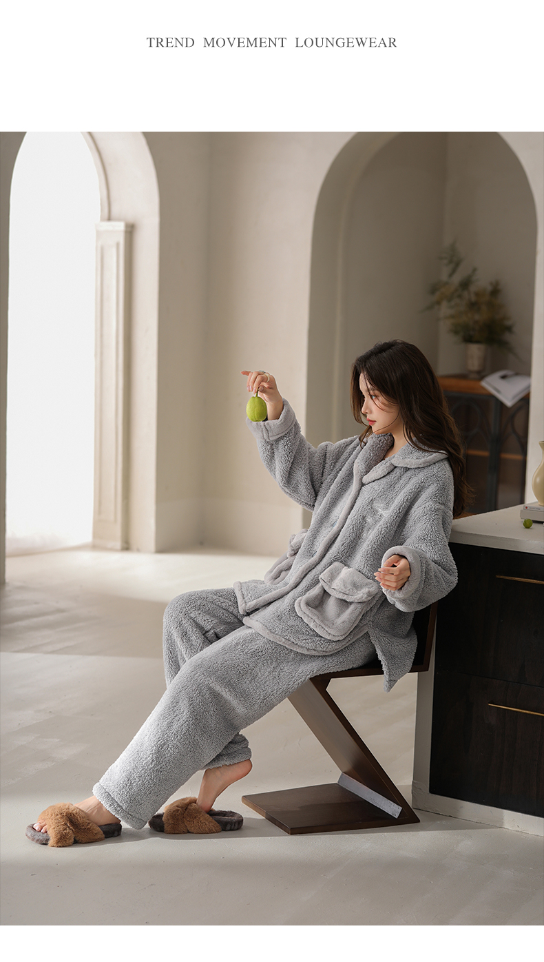 可人儿原创冬季舒棉绒女士睡衣韩系加厚保暖可外穿珊瑚绒家居服
