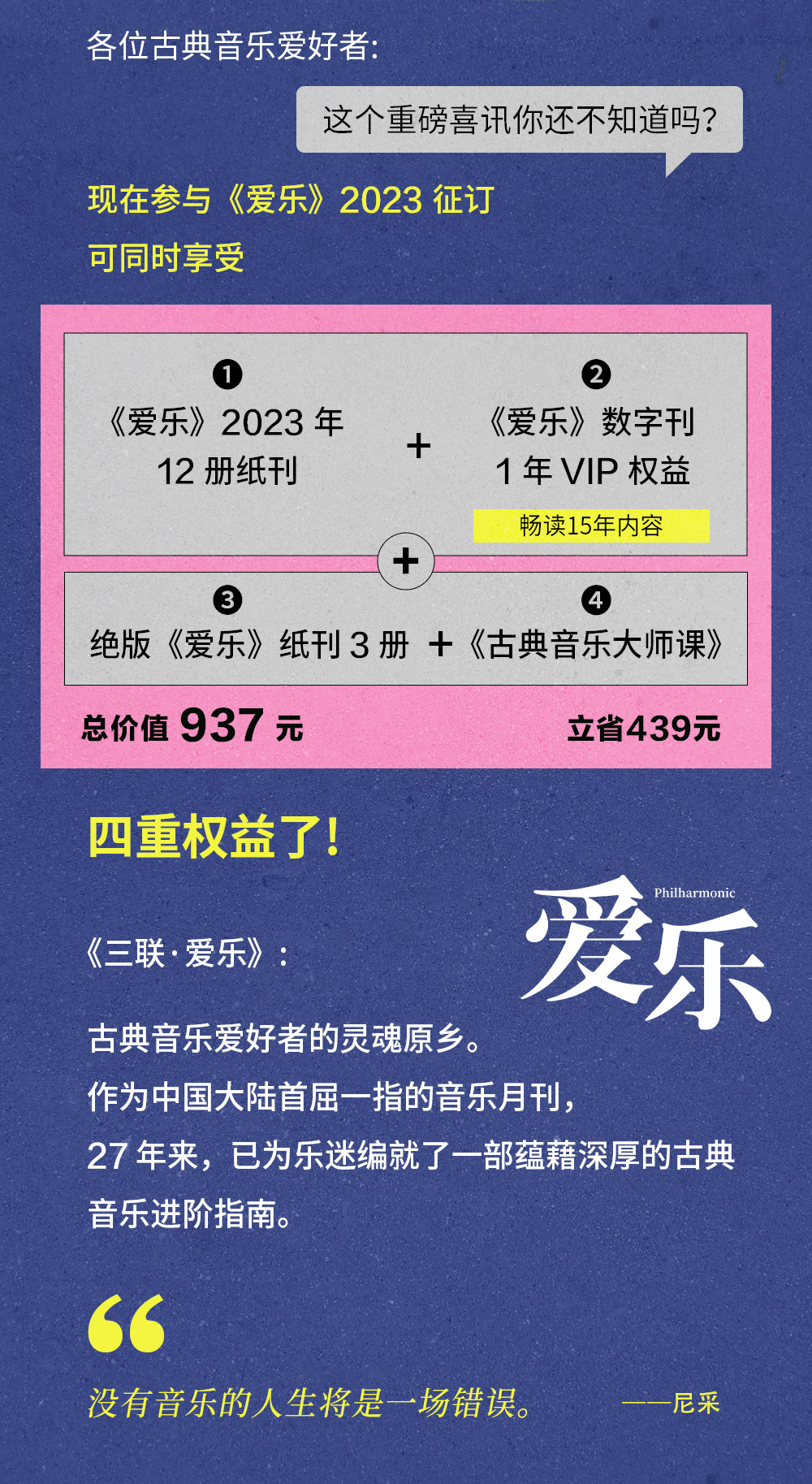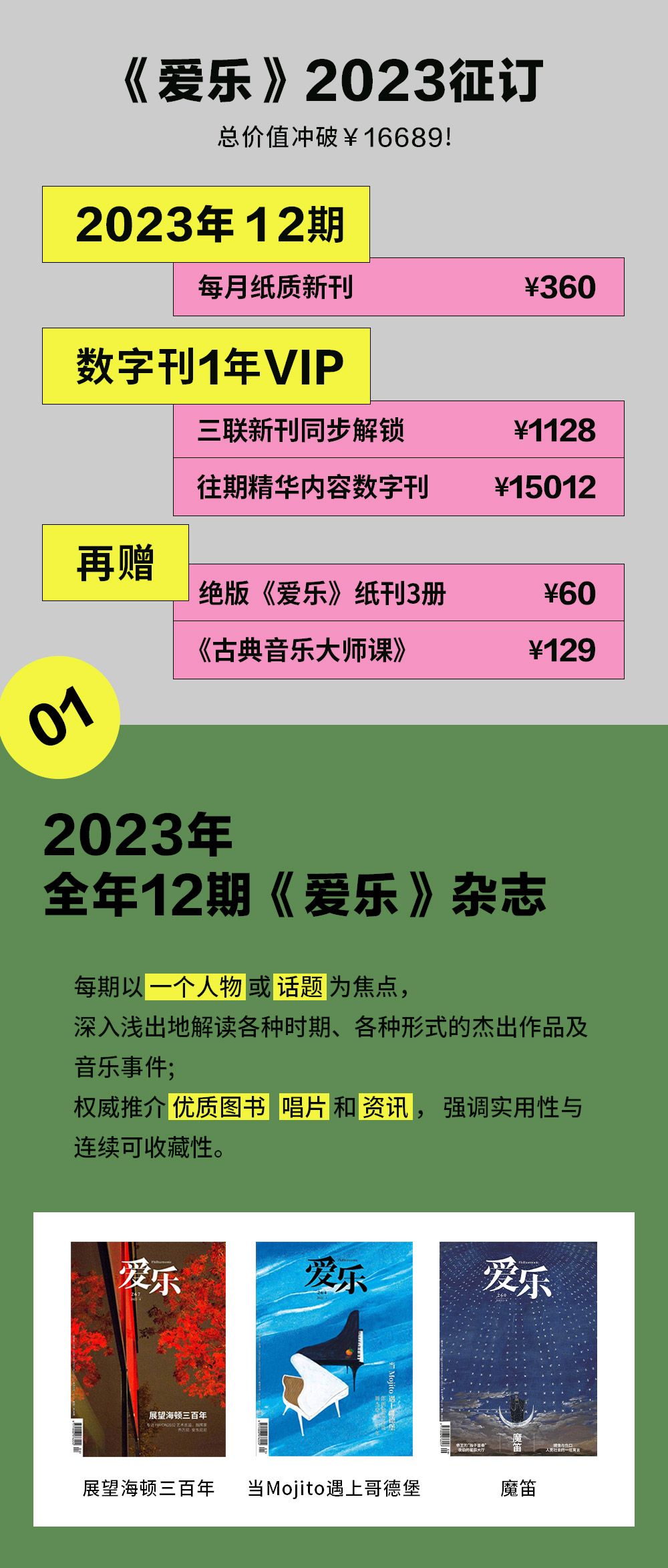 2.《爱乐》为月刊,全年12期,单本原价30元。