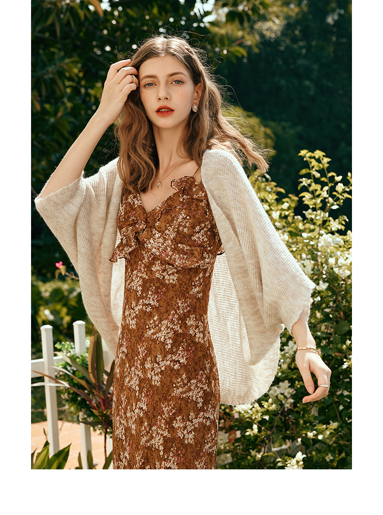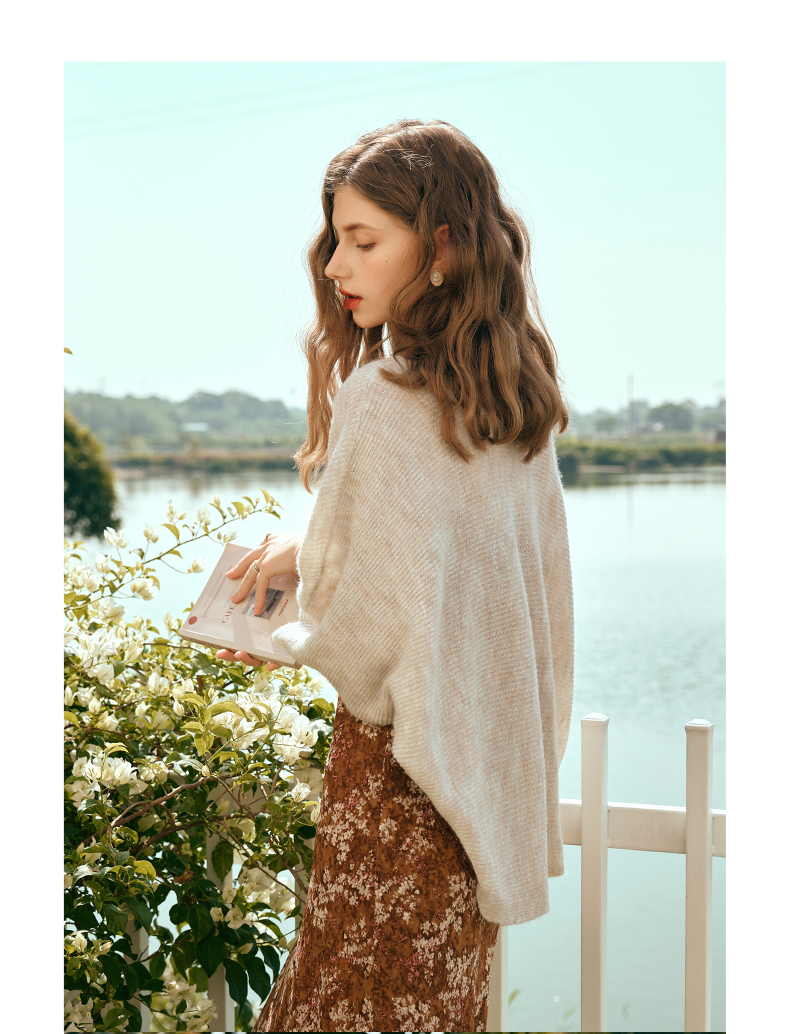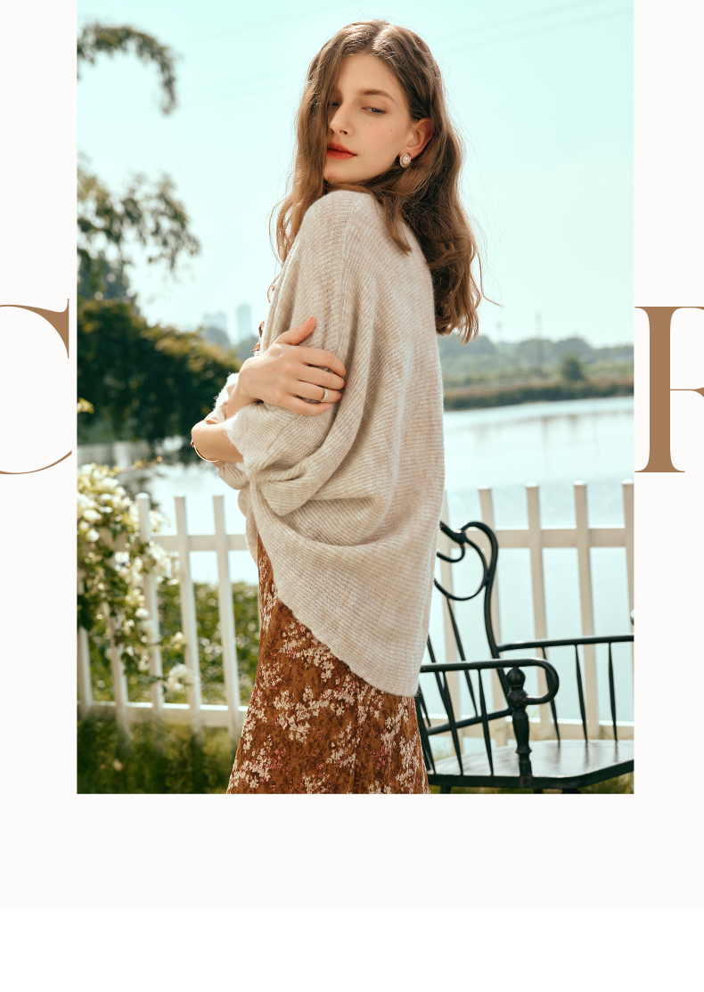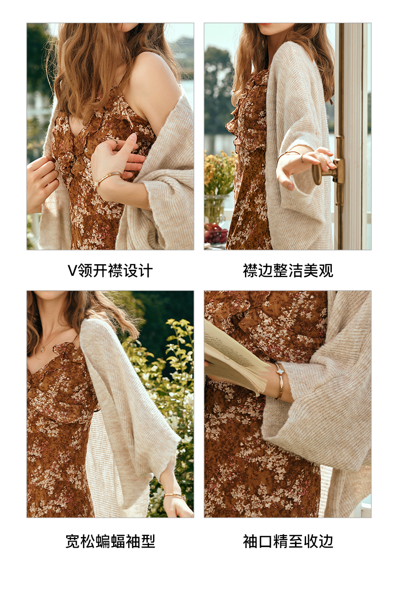 OLrain欧芮儿杏色开衫毛衣女早春2024新款宽松慵懒薄款针织披肩