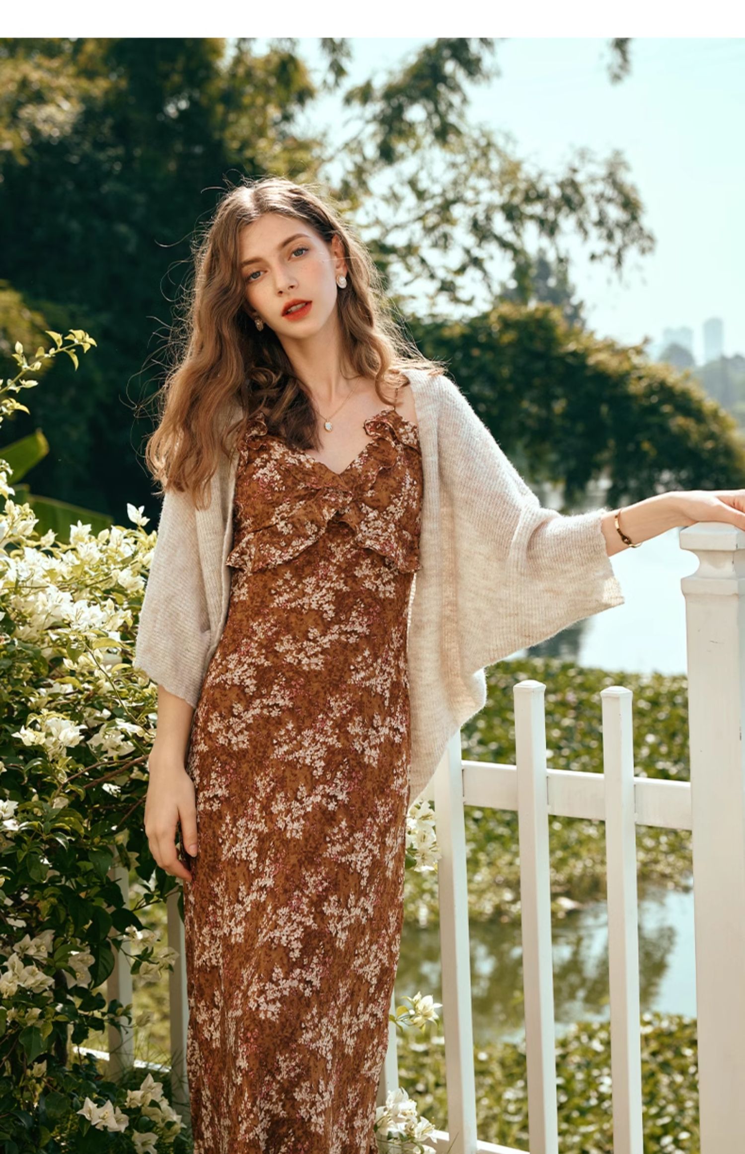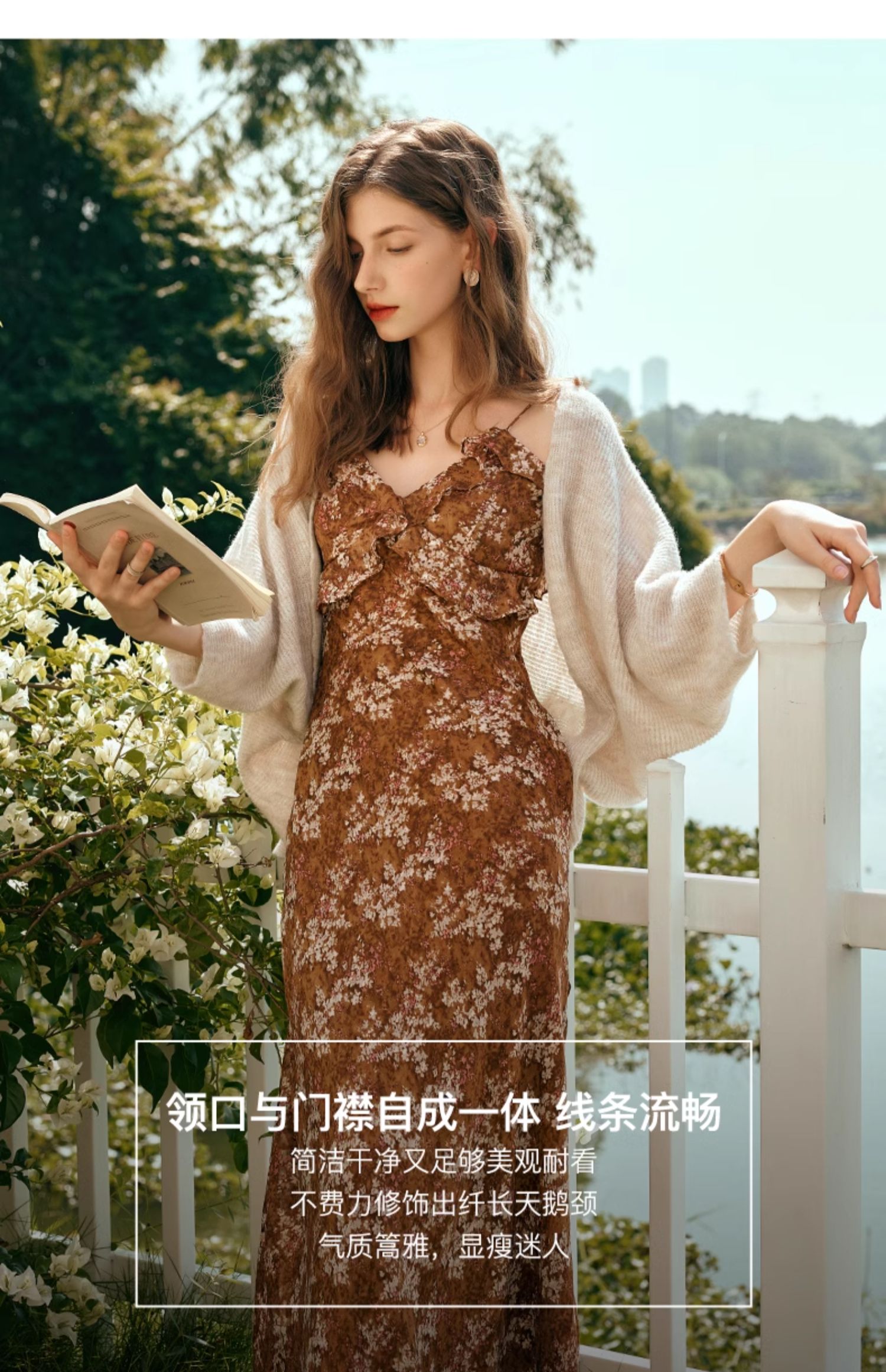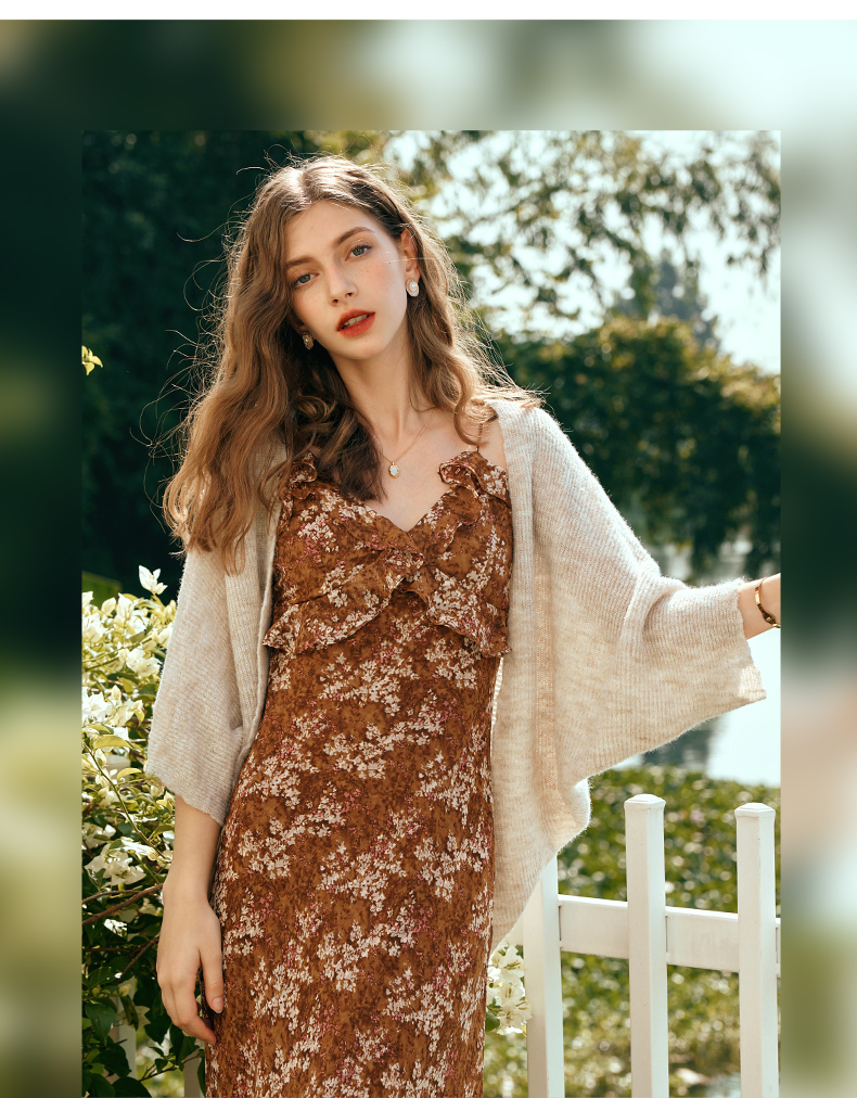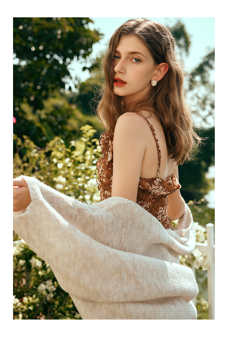 OLrain欧芮儿杏色开衫毛衣女早春2024新款宽松慵懒薄款针织披肩