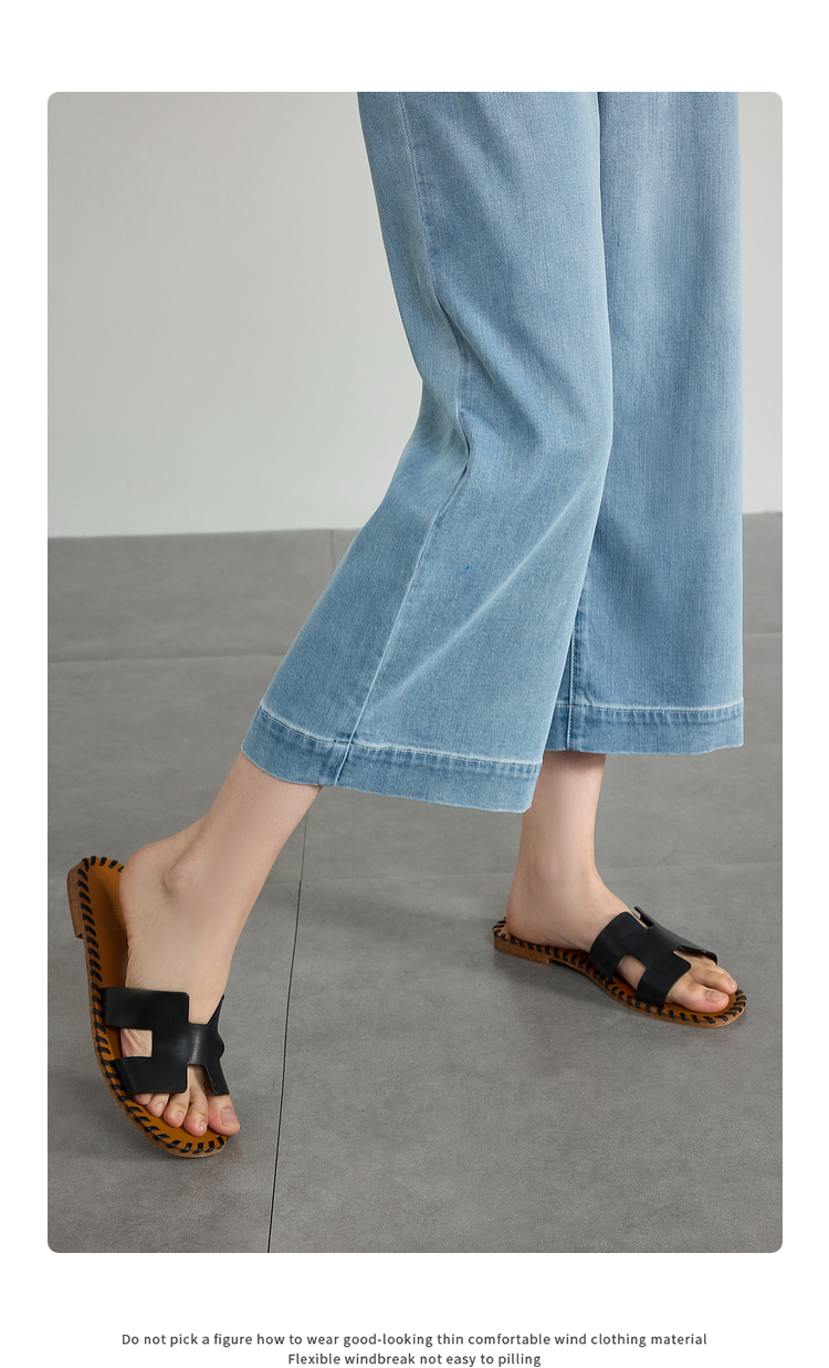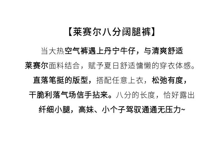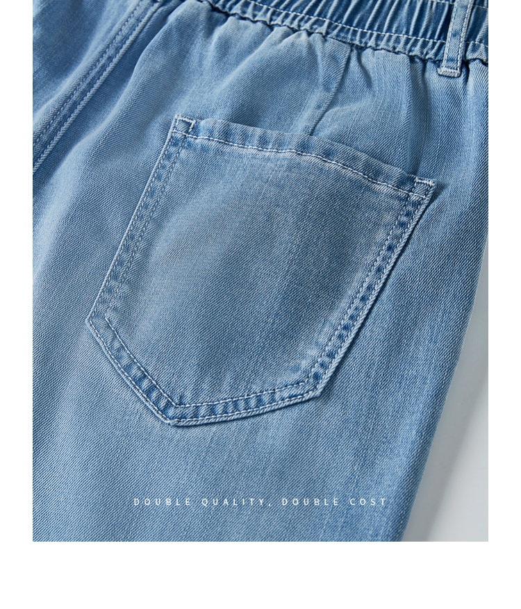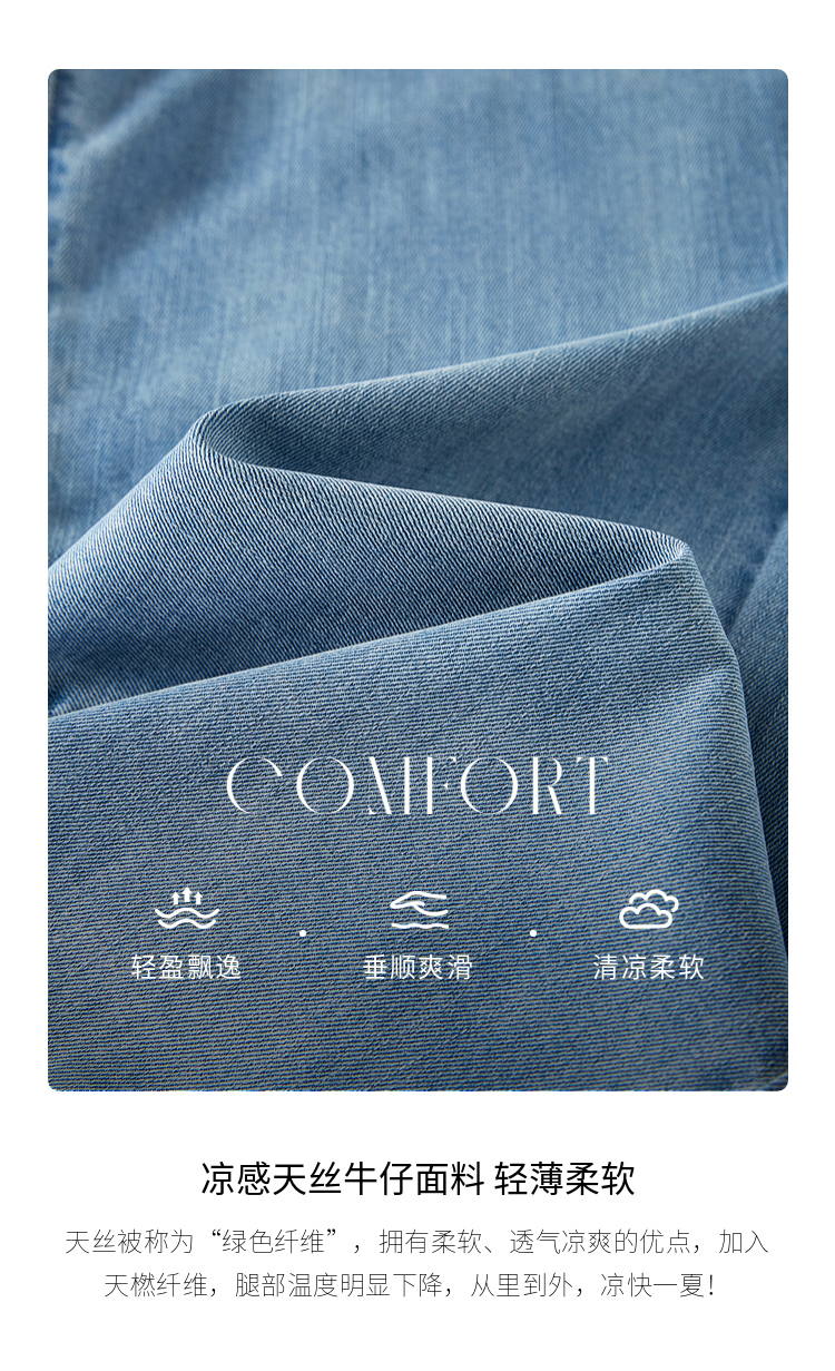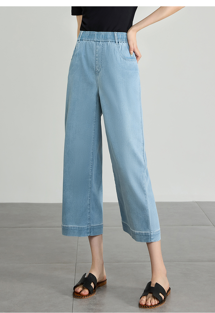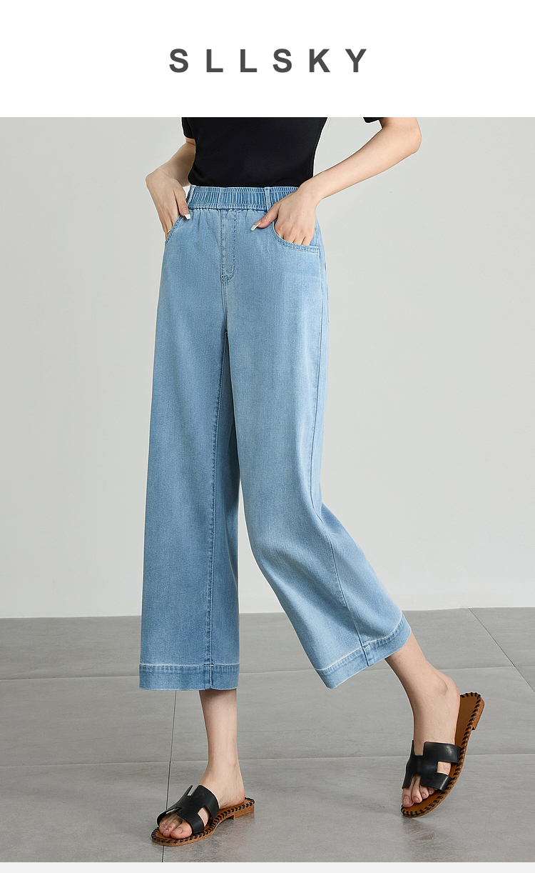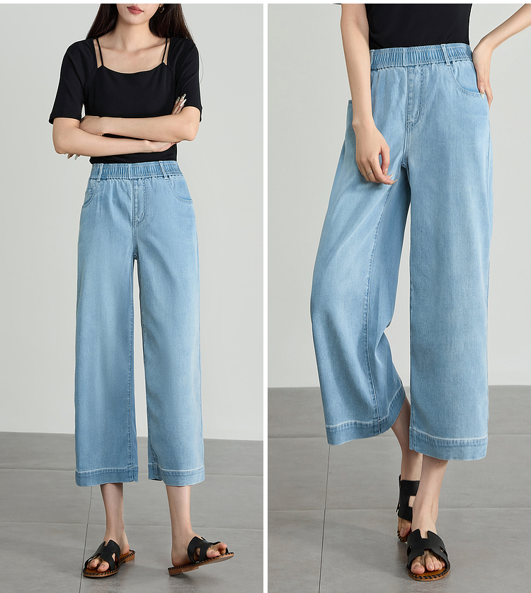 【专属特价】熙世界莱赛尔天丝八分牛仔裤宽松直筒裤夏季薄款垂感松紧腰裤子