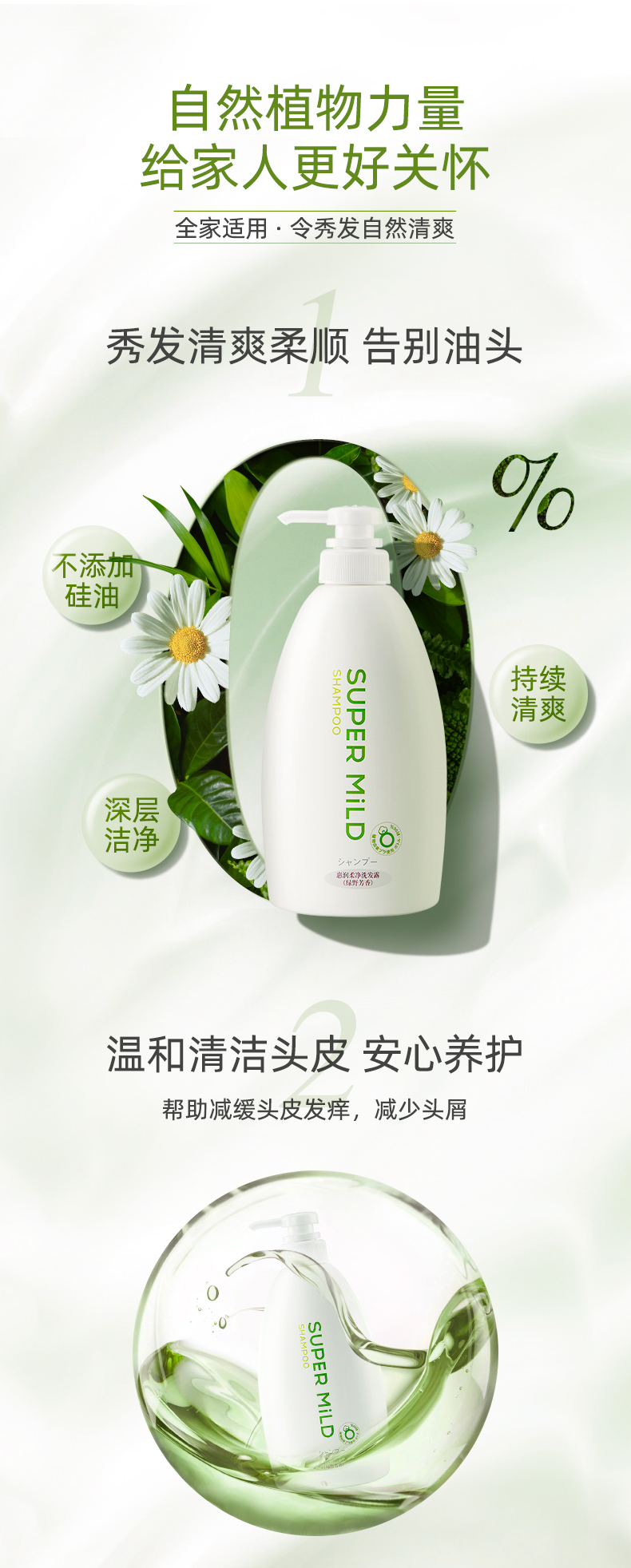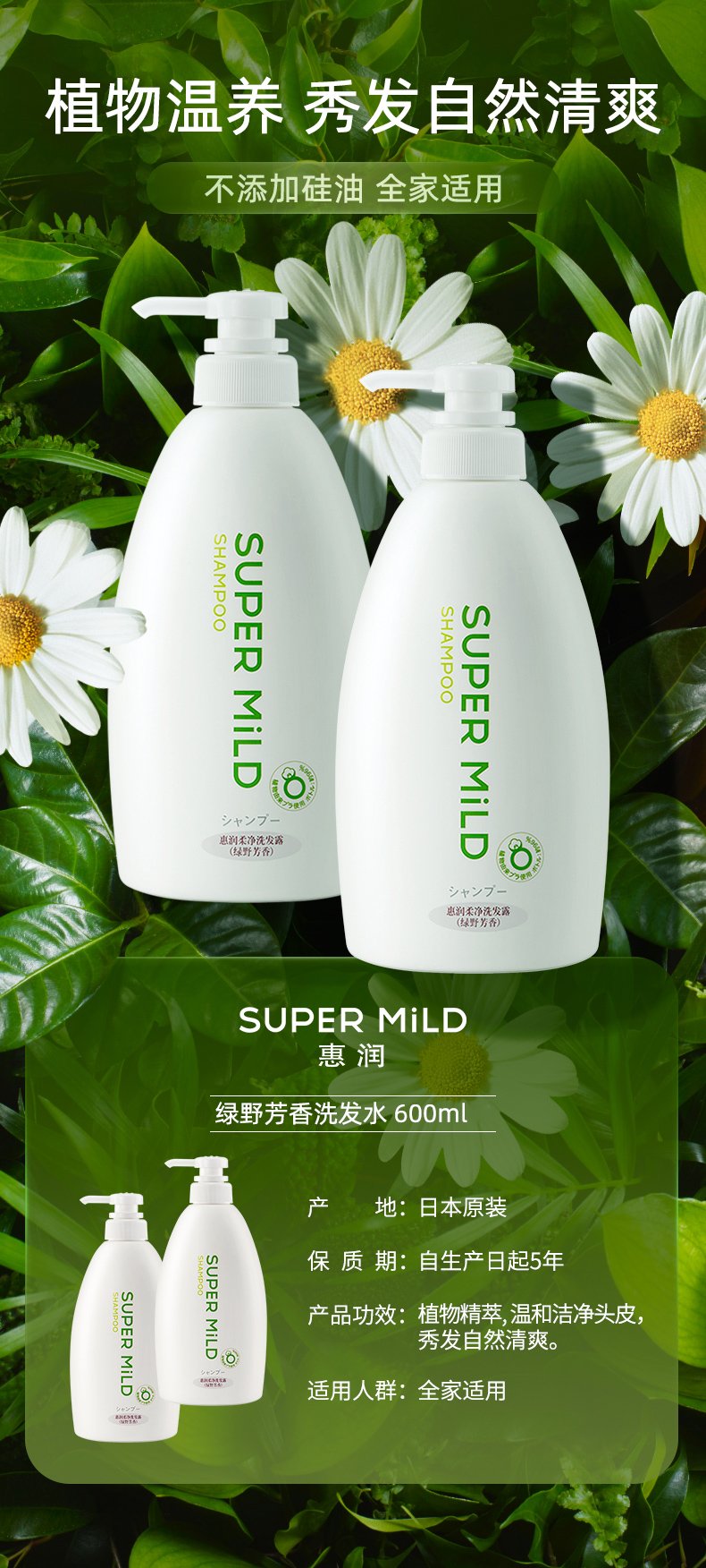资生堂惠润(SUPER MiLD)柔净(绿野芳香)洗发露600ml(日本进口无硅油洗发水 蓬松柔顺 持续保湿)
