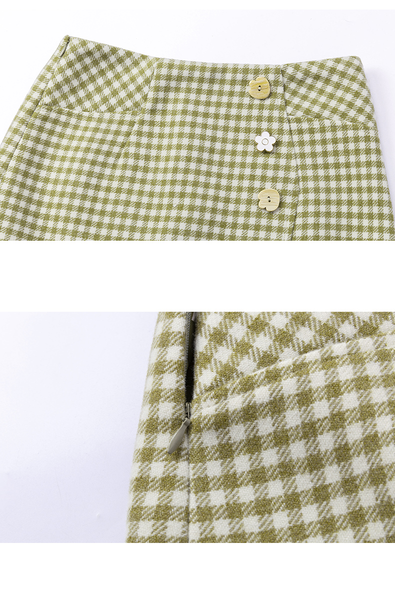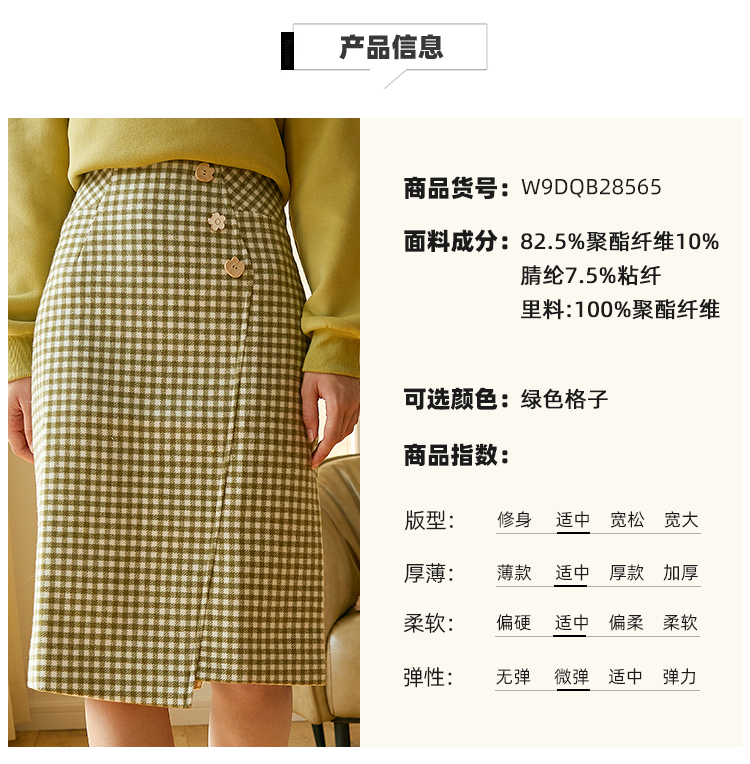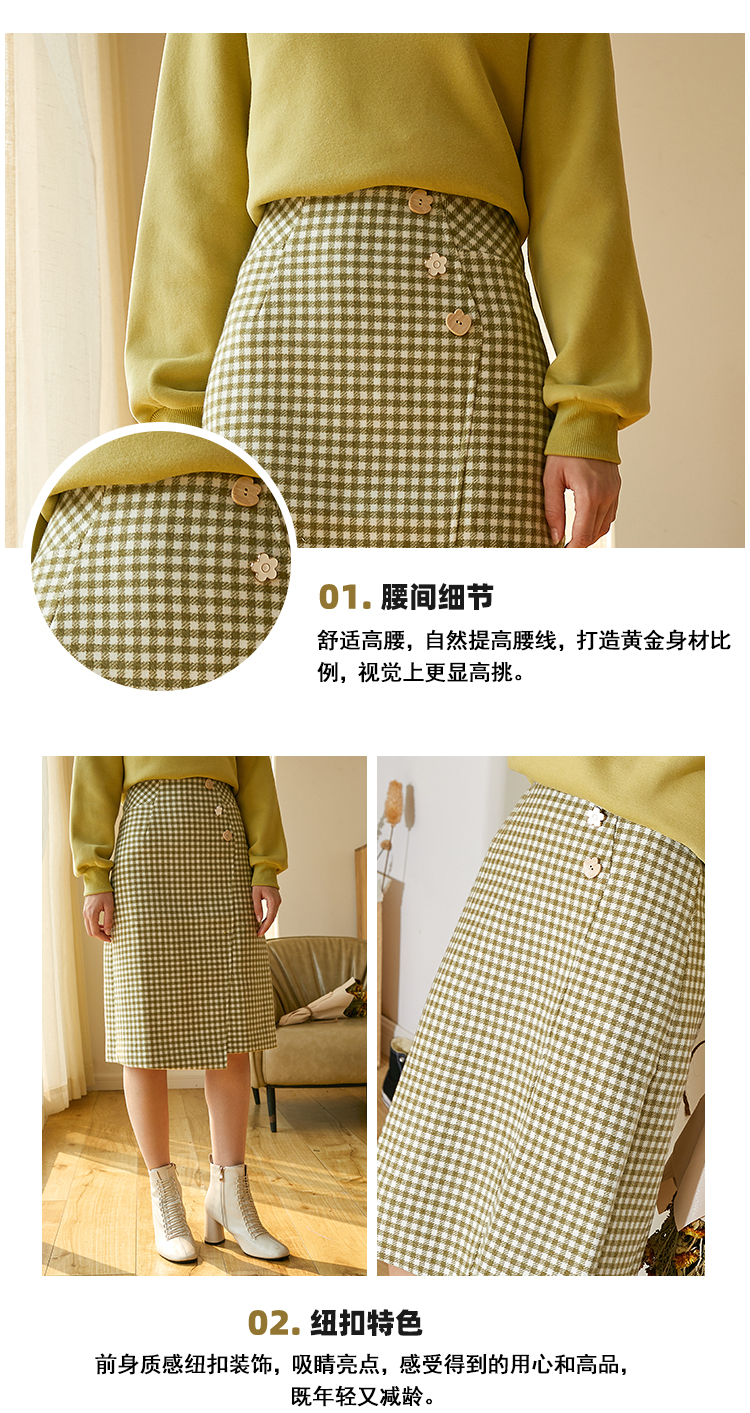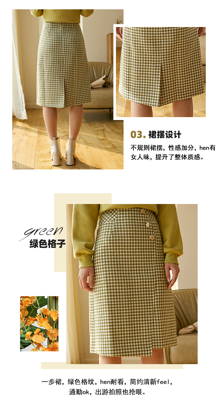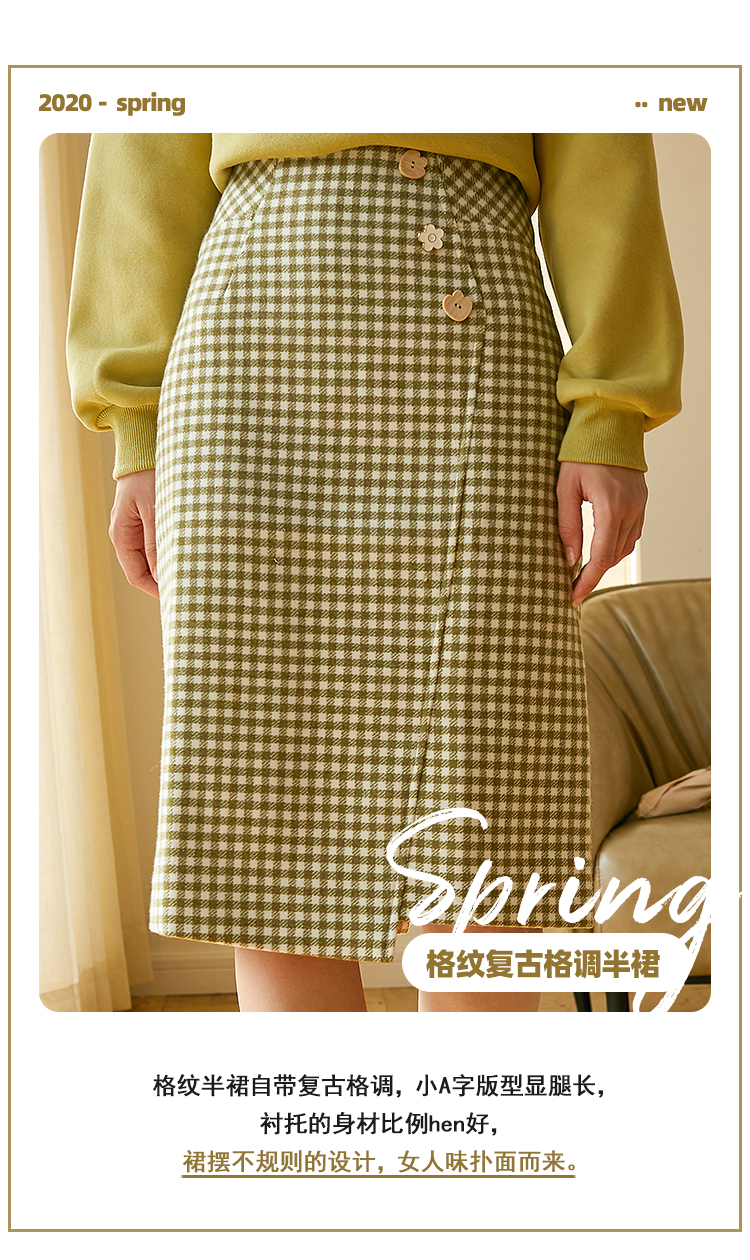 欧芮儿春新款高腰显瘦格子半身裙女中长款复古不规则包臀裙