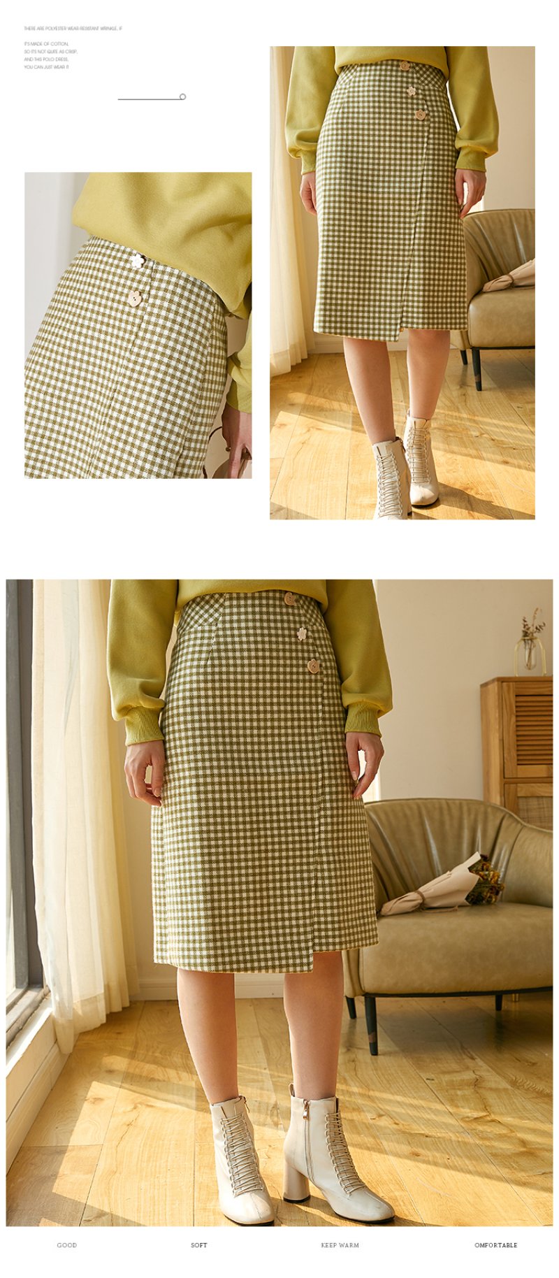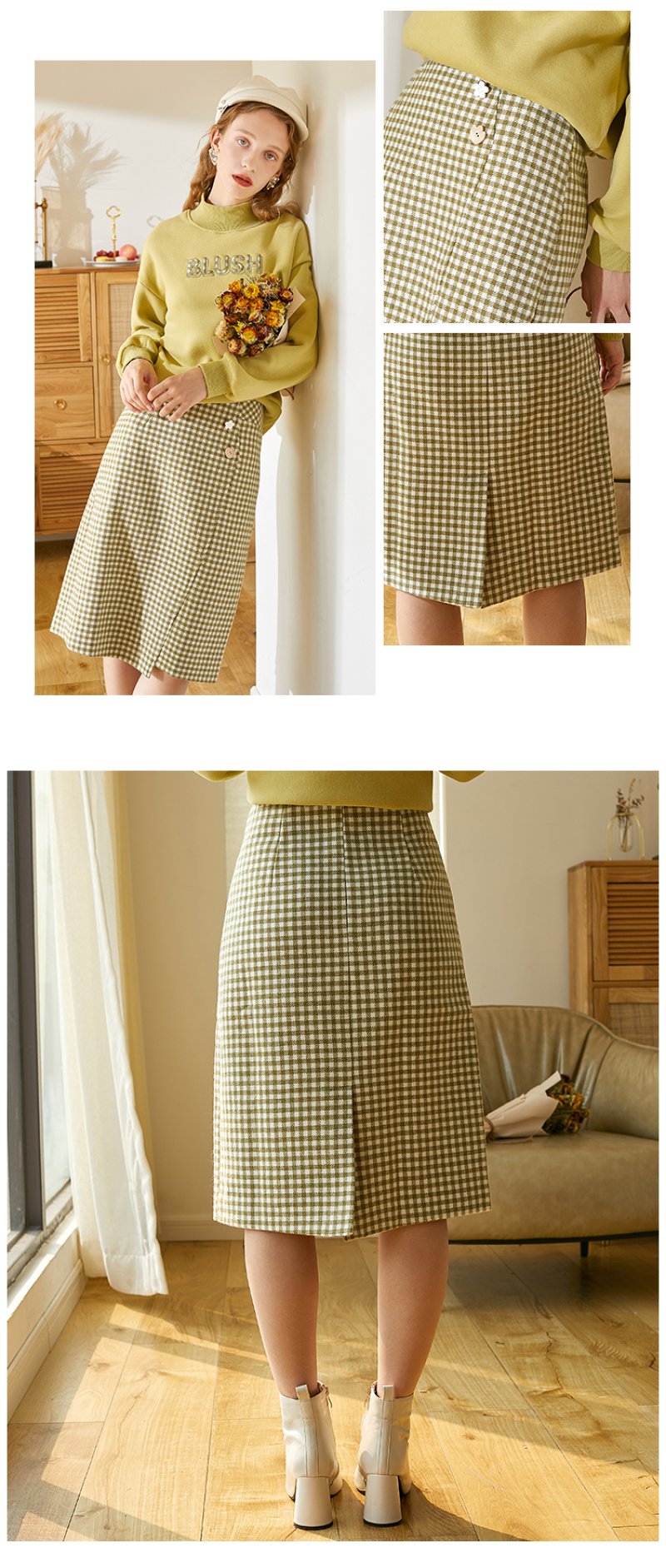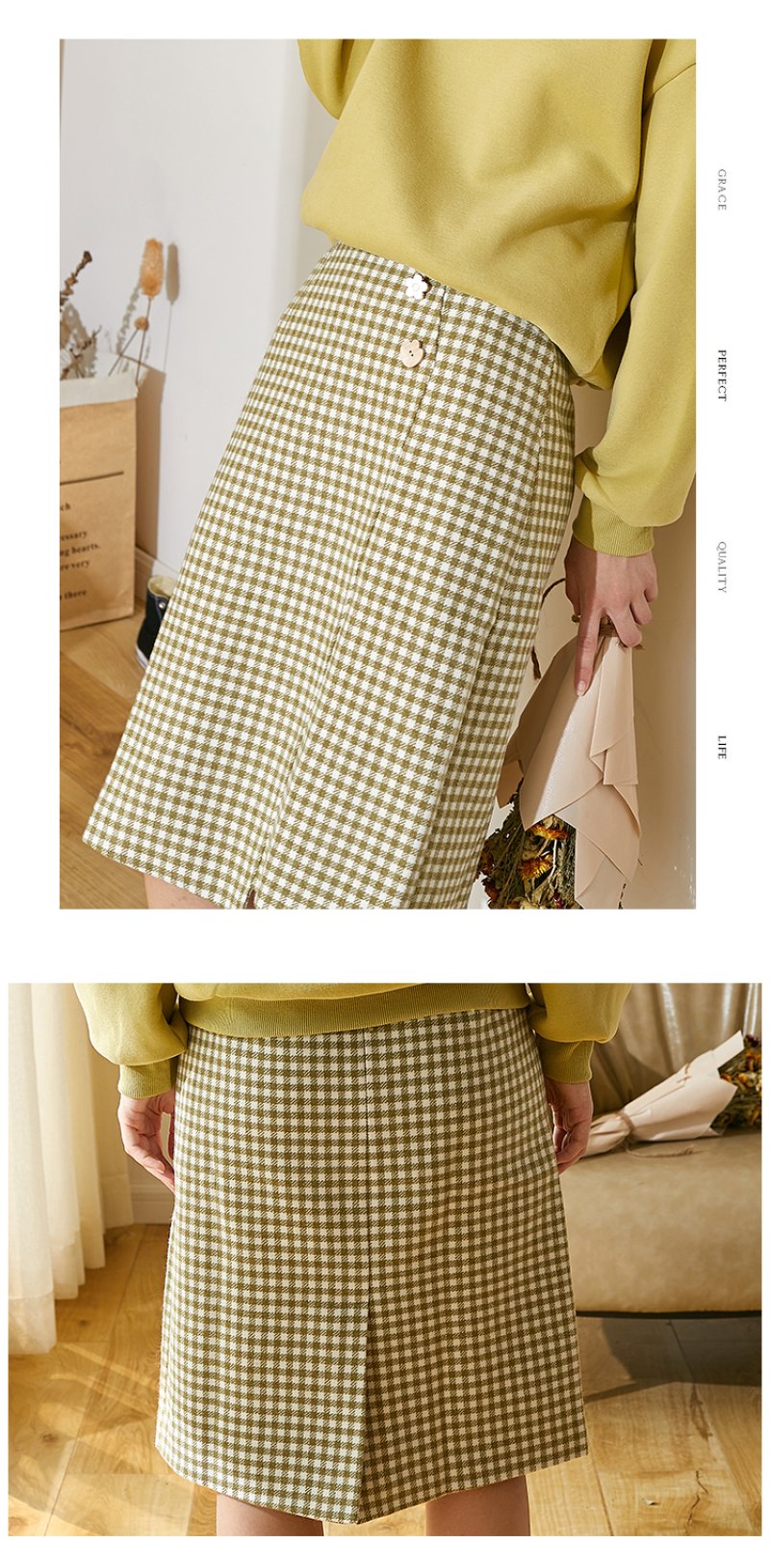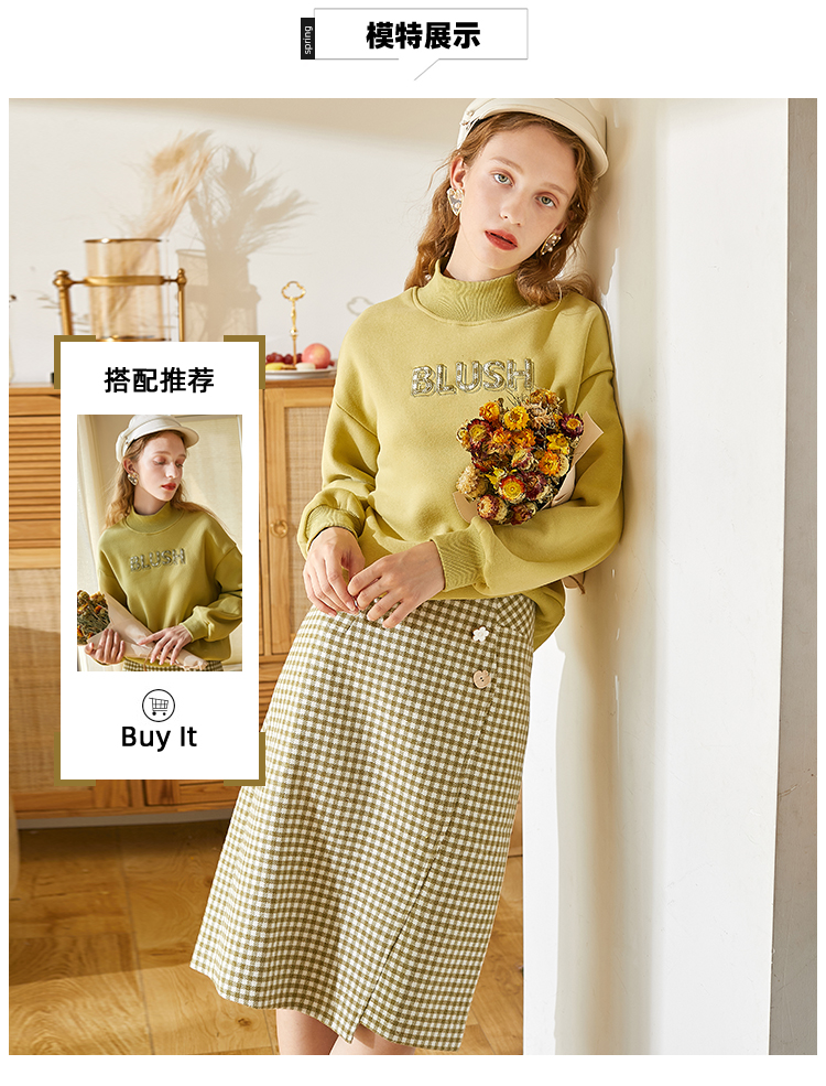 欧芮儿春新款高腰显瘦格子半身裙女中长款复古不规则包臀裙