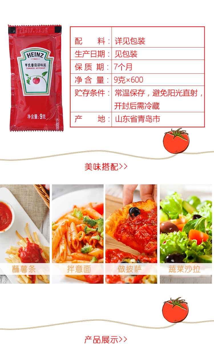 【整箱】9g*600小包 亨氏番茄酱 番茄沙司小茄包薯条手抓饼