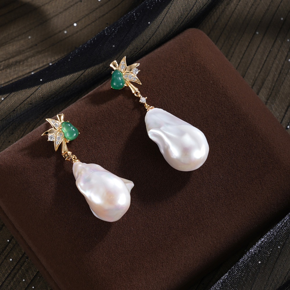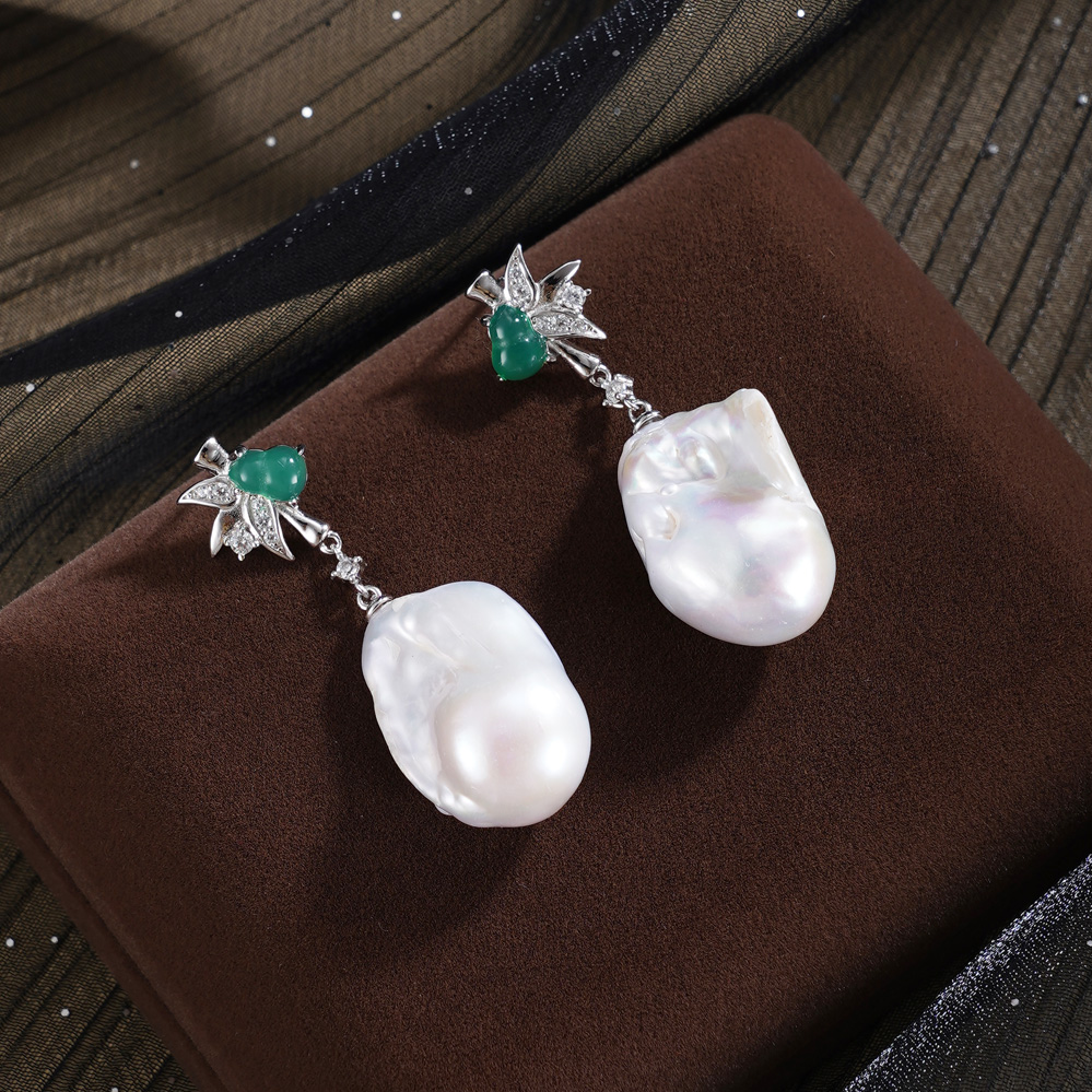 子佩集【福竹缱绻】银S925珍珠惜王妃耳钉【W7448-1】双色巴洛克2602